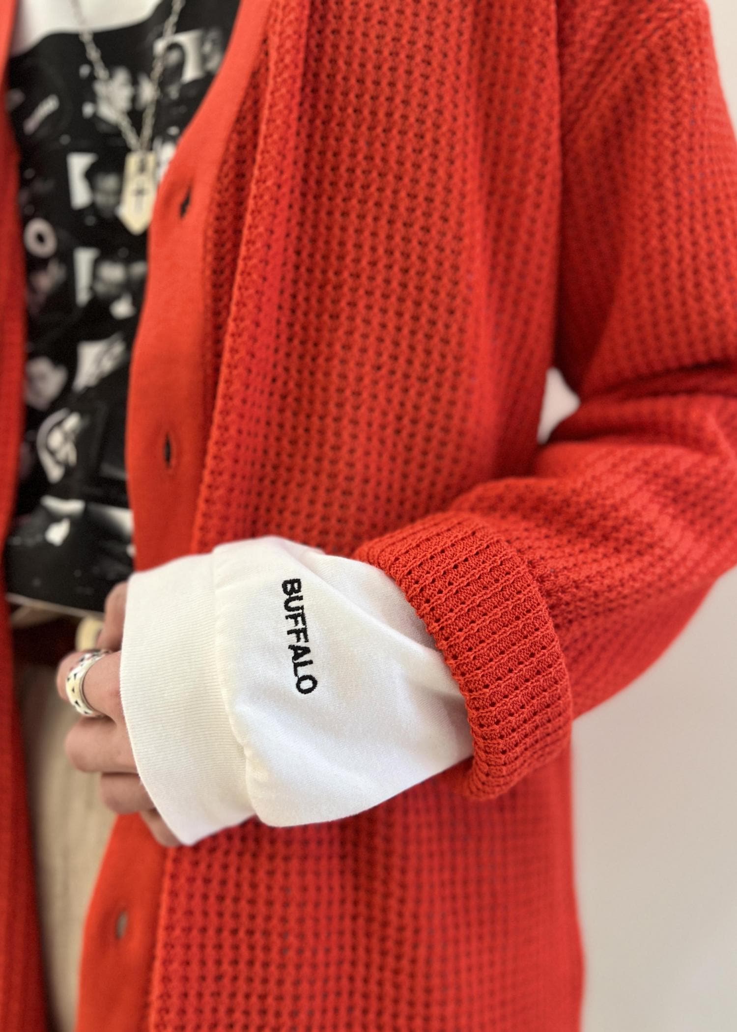 ADAM ET ROPÉ HOMME【別注】《BATONER / バトナー》GIMA STRAW YARN MESH CARDHIGAN / UNISEXレッド / 2¥13,200レビュー【サイズ感】