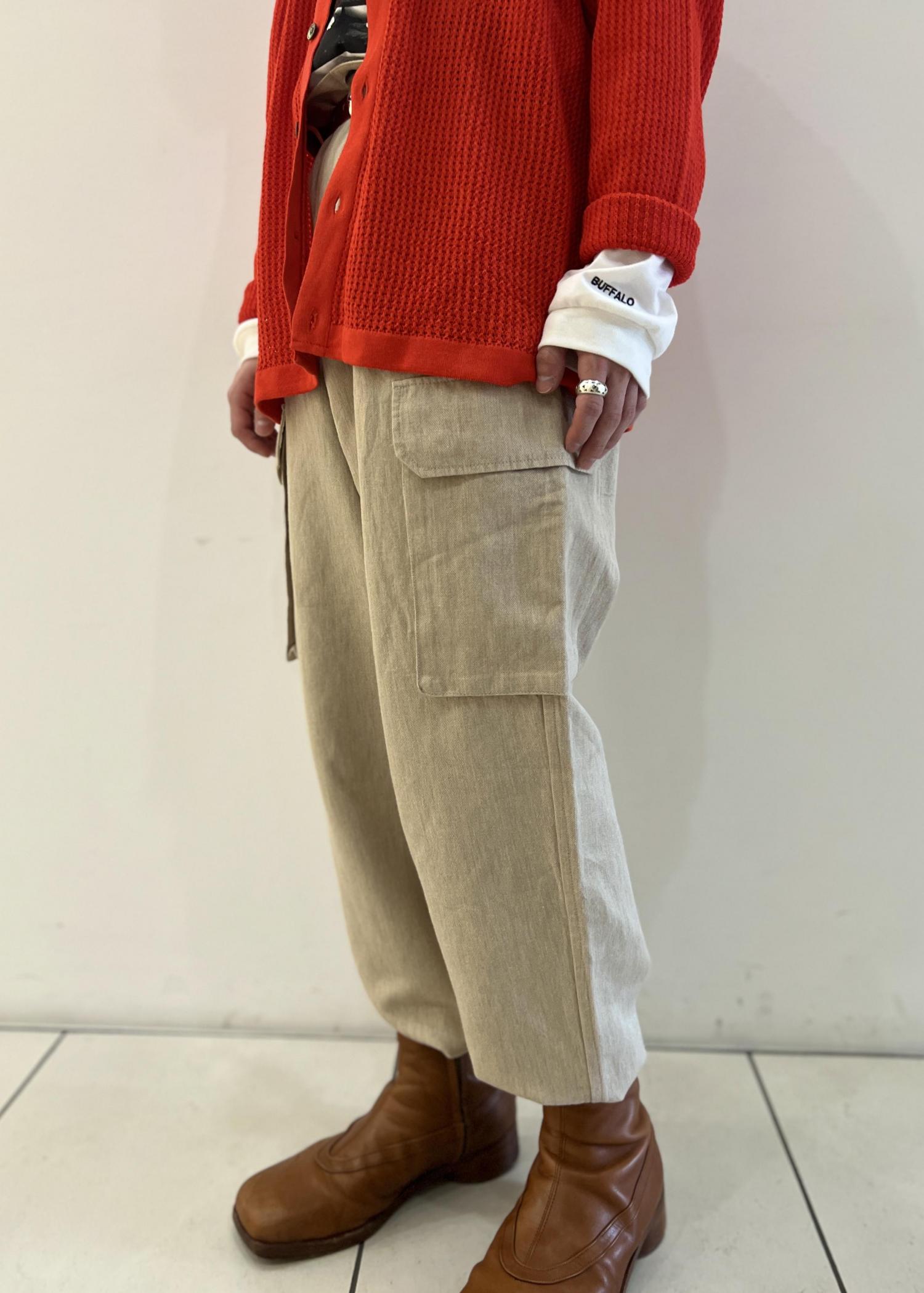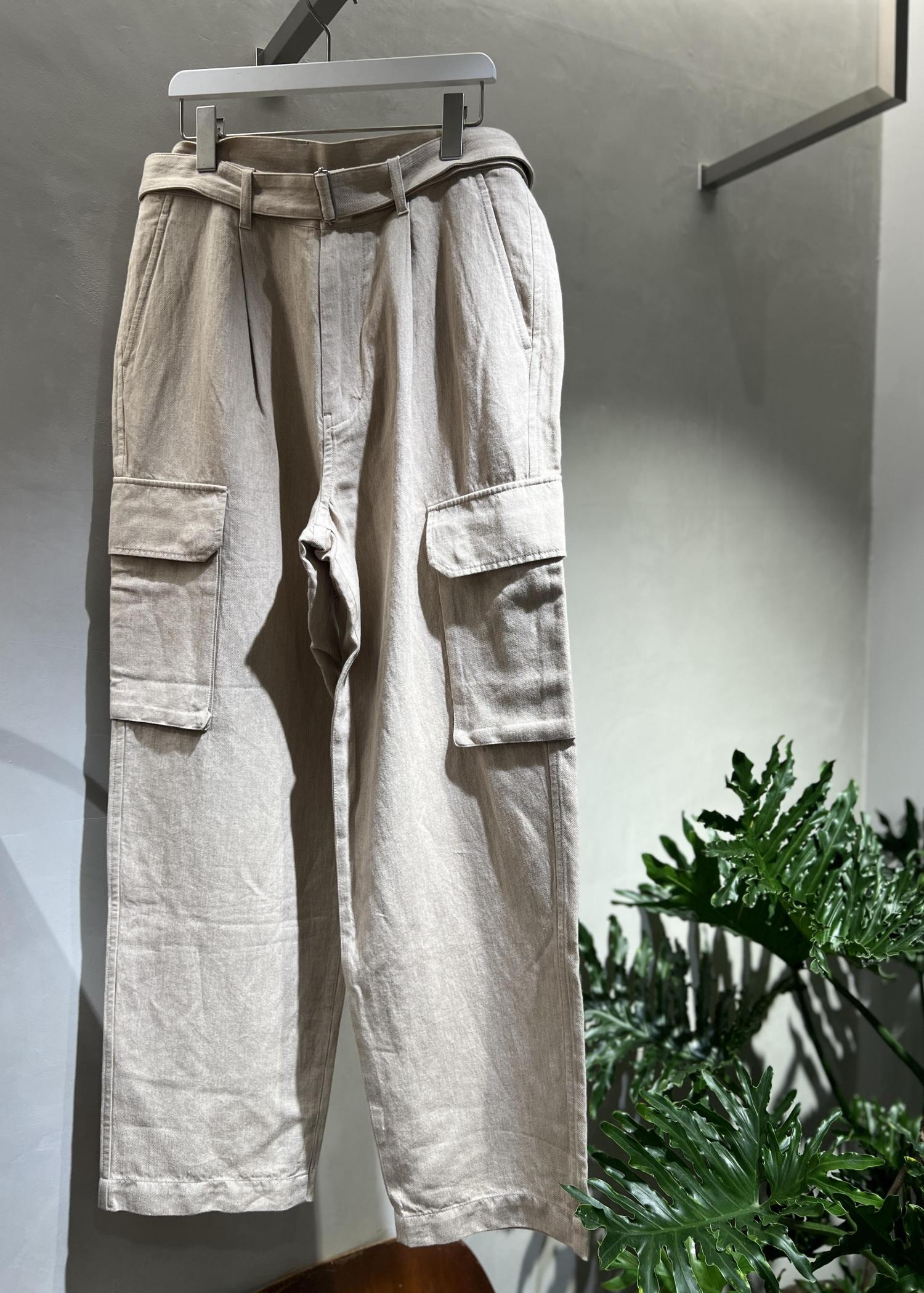 ・パンツはコットンリネンのベルテッドカーゴパンツです。