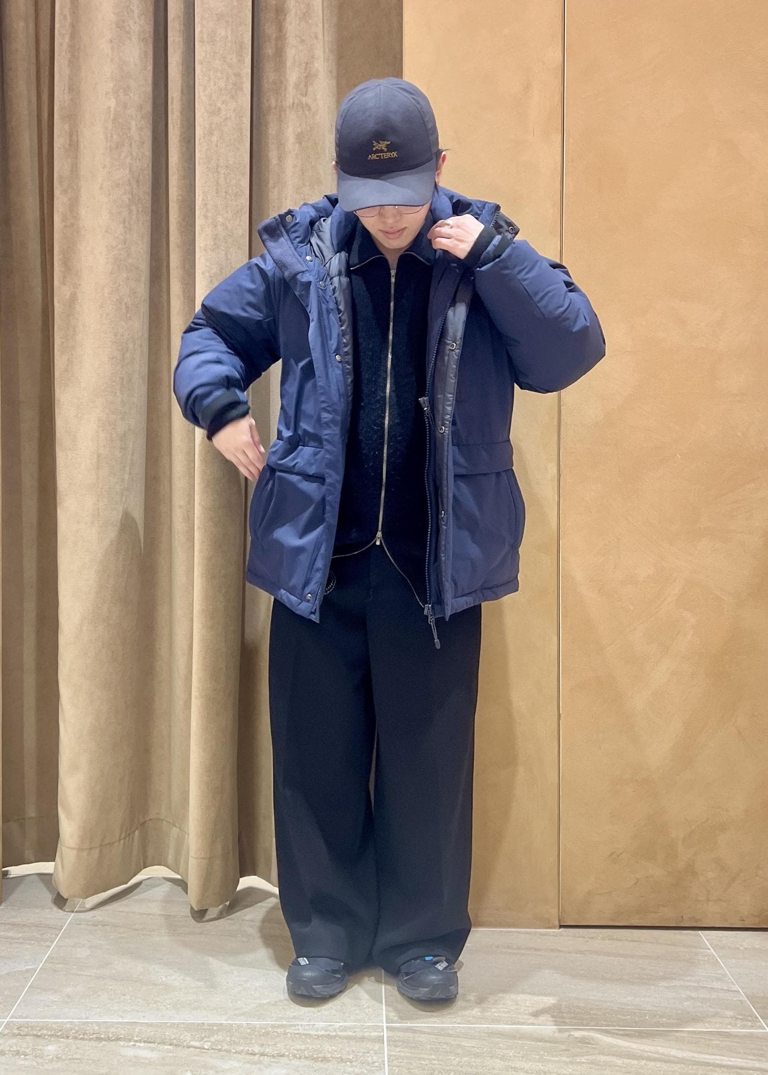 ポリエステルの軽い素材でゆとりがあるシルエットなのでインナー次第でシーズ幅広く活躍します。