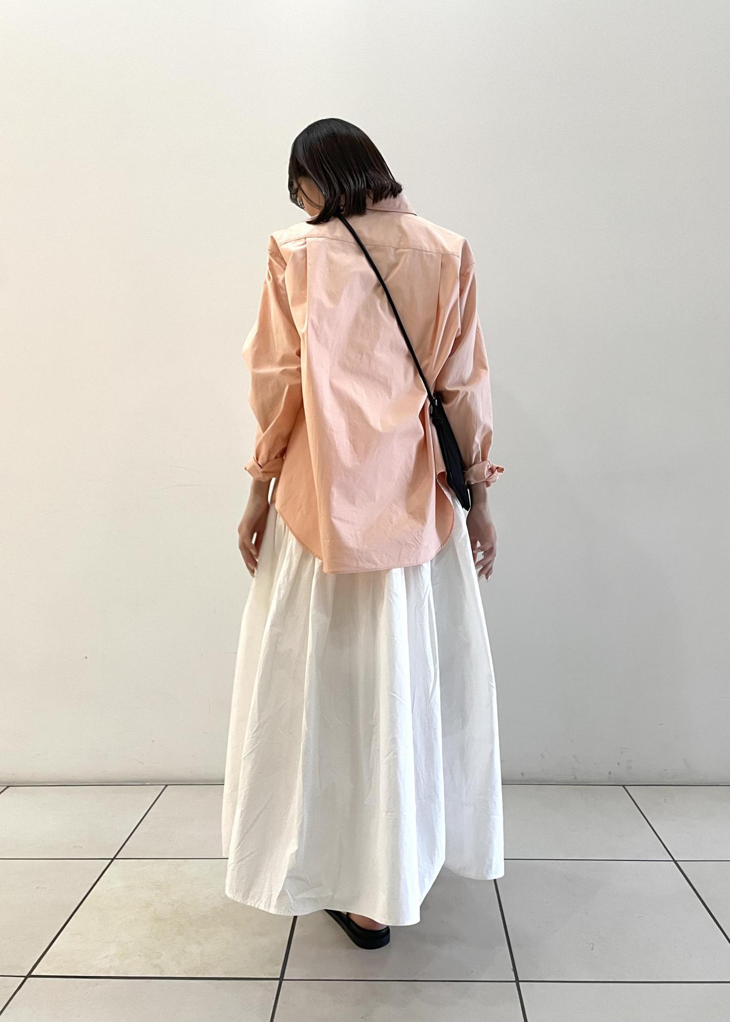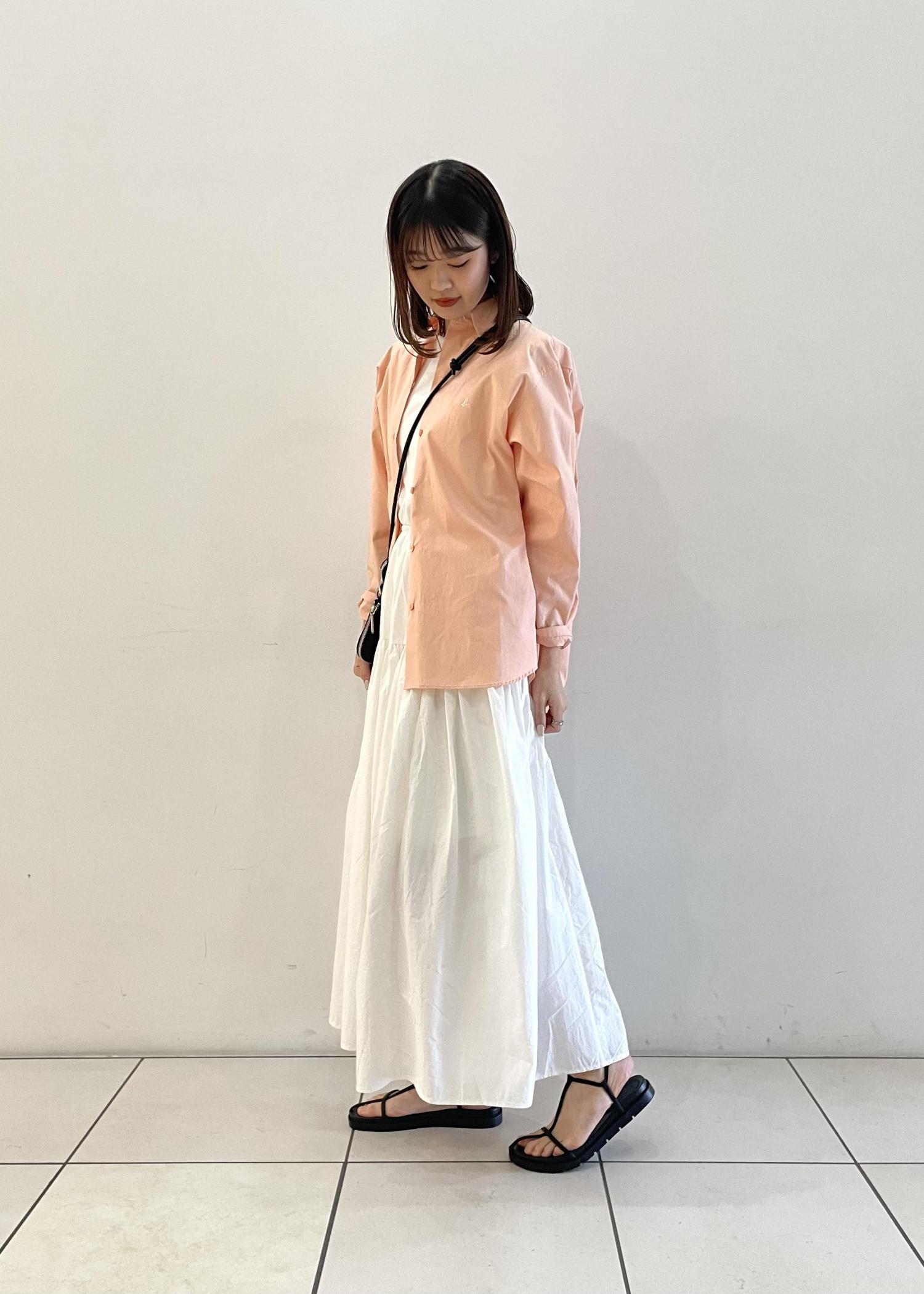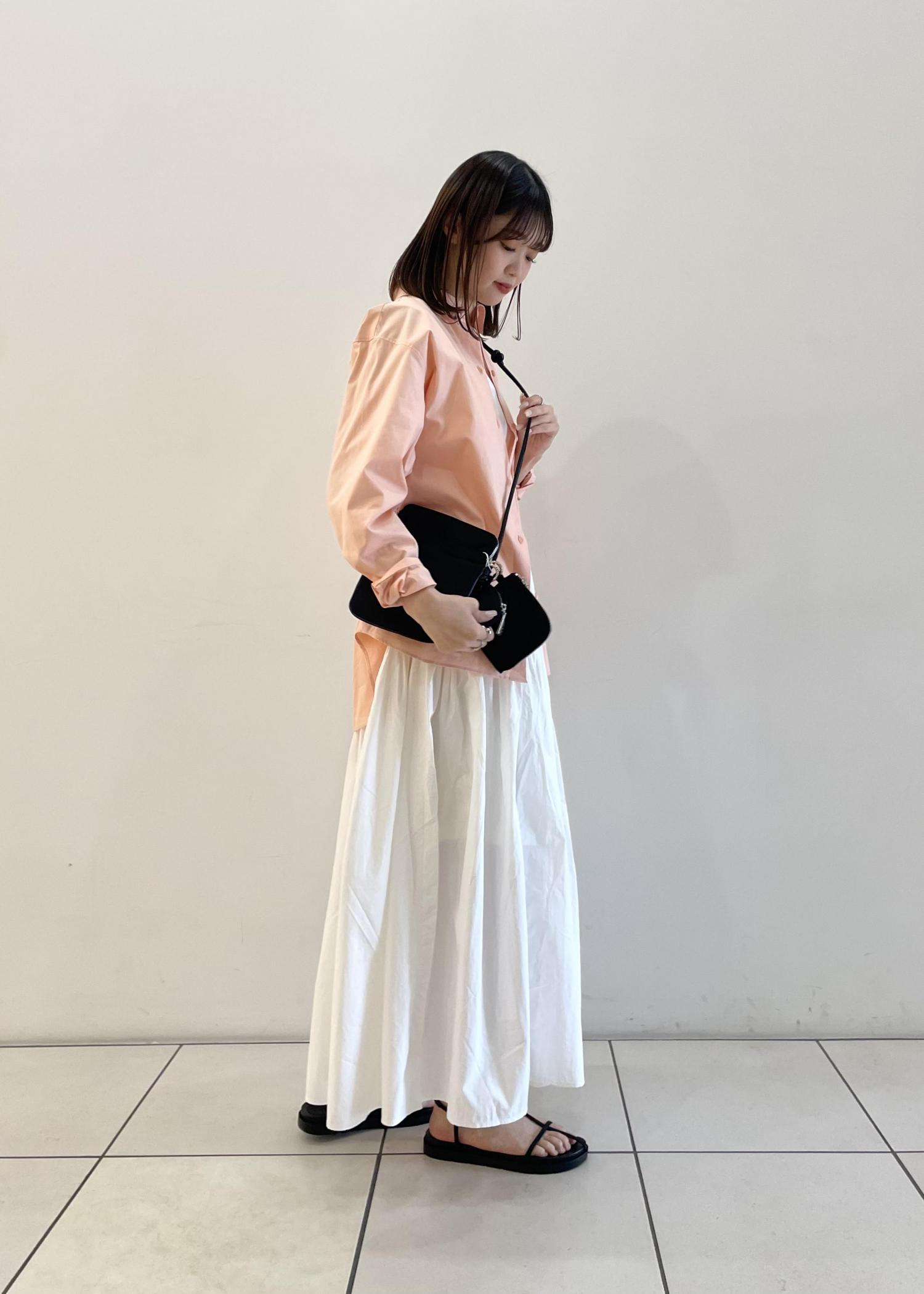 今回のスタイリングでは、春夏っぽいカラーで、爽やかさを意識したので、アニエスべーのうすいピンクのシャツを羽織ってみました!白とピンクの合わせが可愛いですよね☺︎