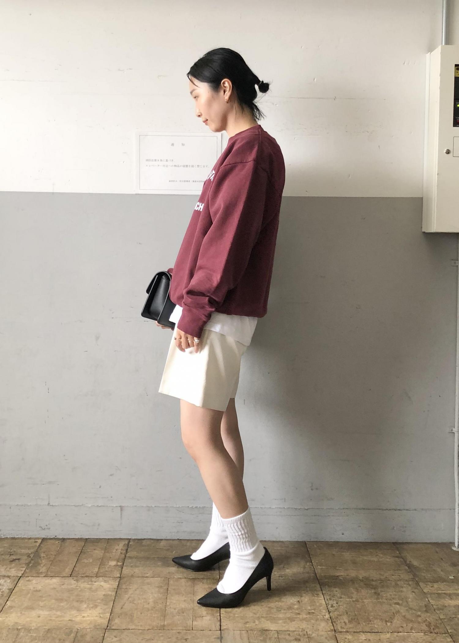 こちらのスウェットはSで少しゆるっと着れる、オーバーサイズになりすぎない良いサイズ感です。