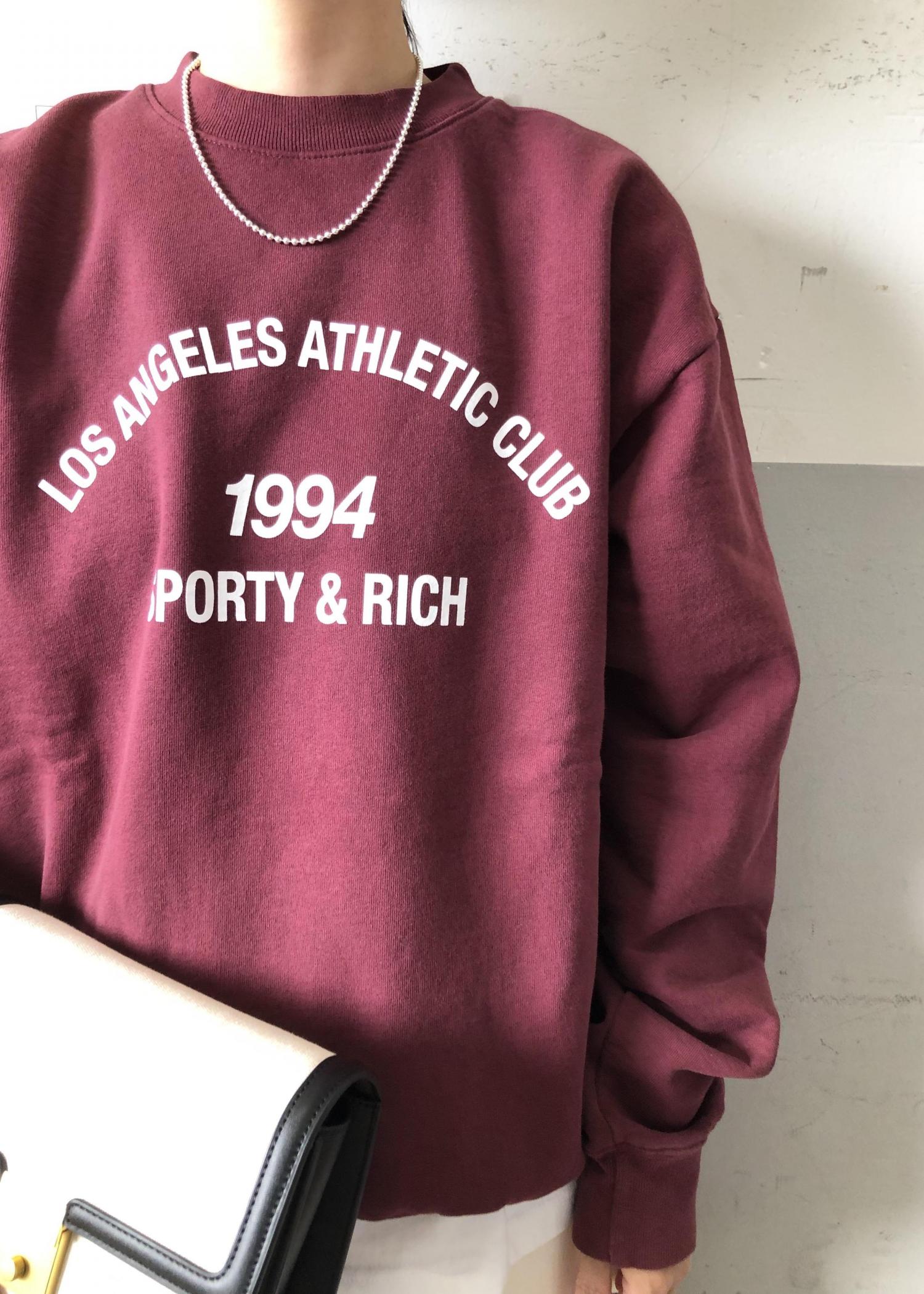 アウトレットADAM ET ROPÉ FEMME【SPORTY&RICH】LA ATHLETIC CLUB CREWNECKワイン系 / S¥8,800レビュー【素材感・着心地】