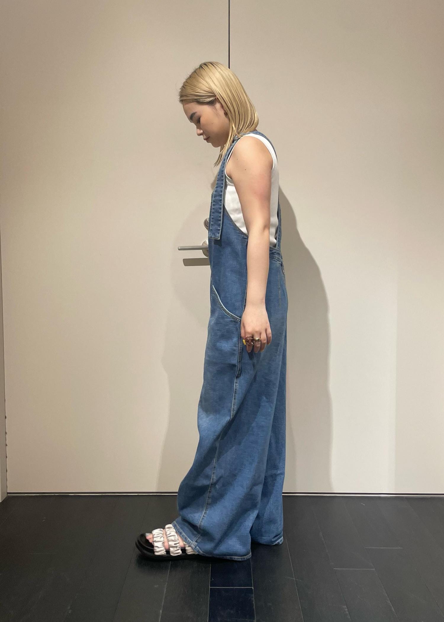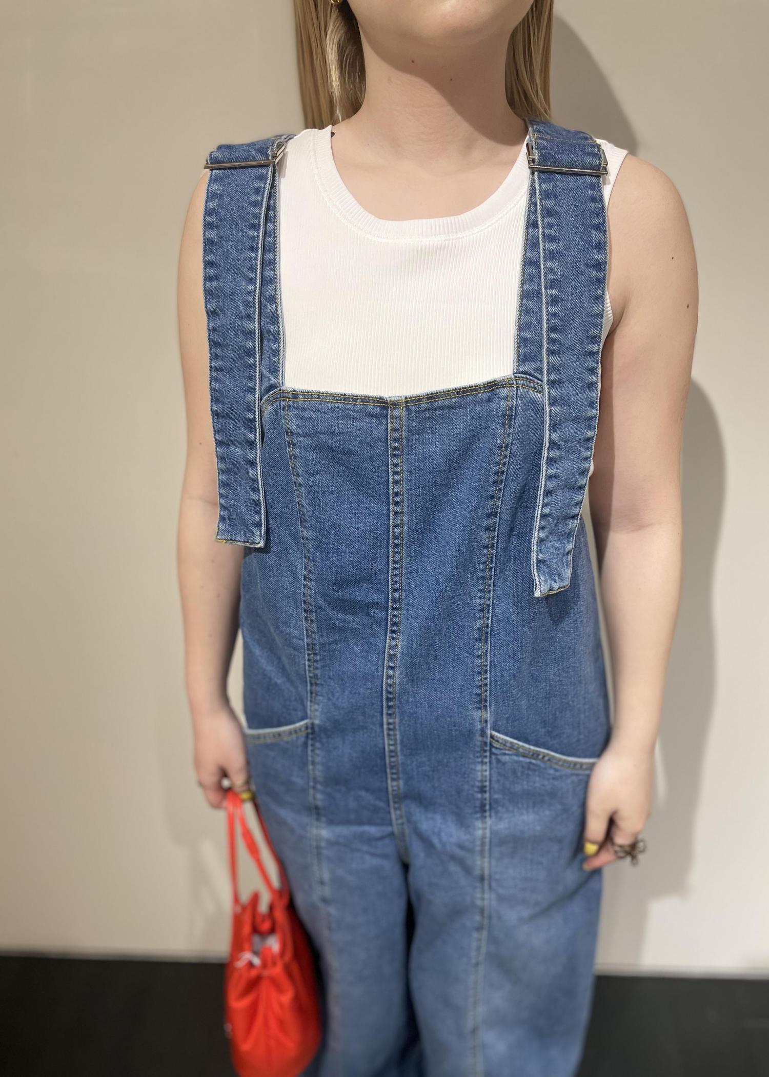 デニムのサロペットは、子供っぽく見えがちなアイテムですが、シルエットやデザインがカジュアルになりすぎず、女性らしさのある綺麗めに着ることのできるアイテムです。