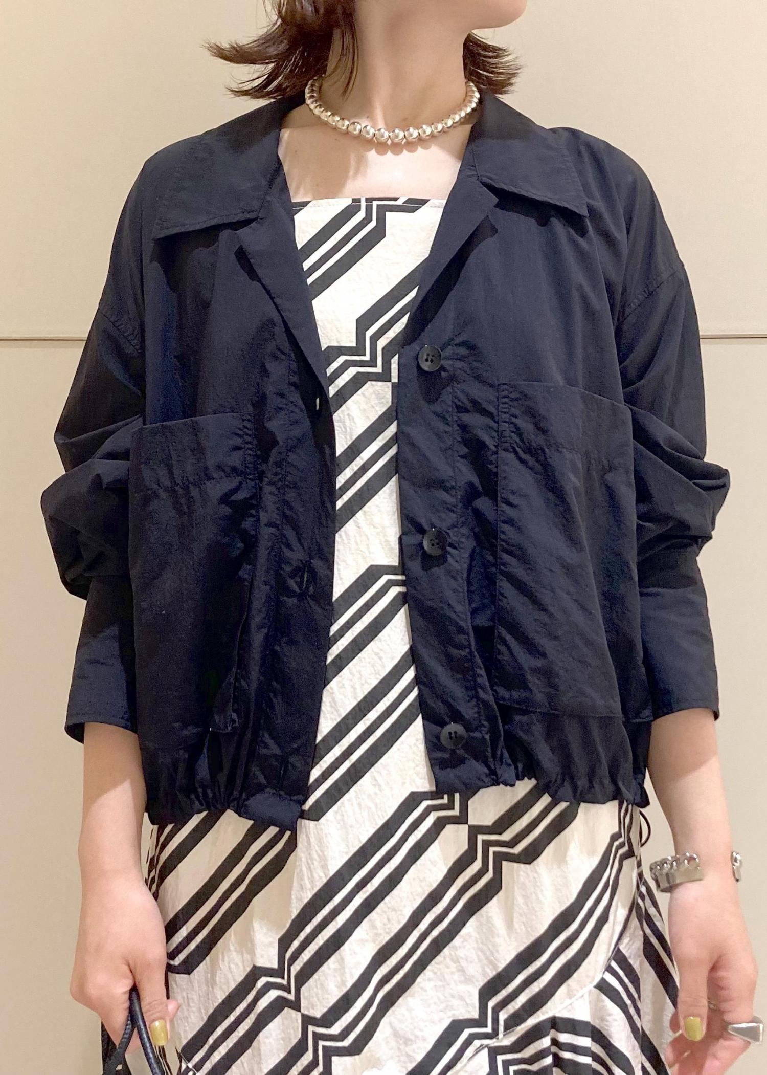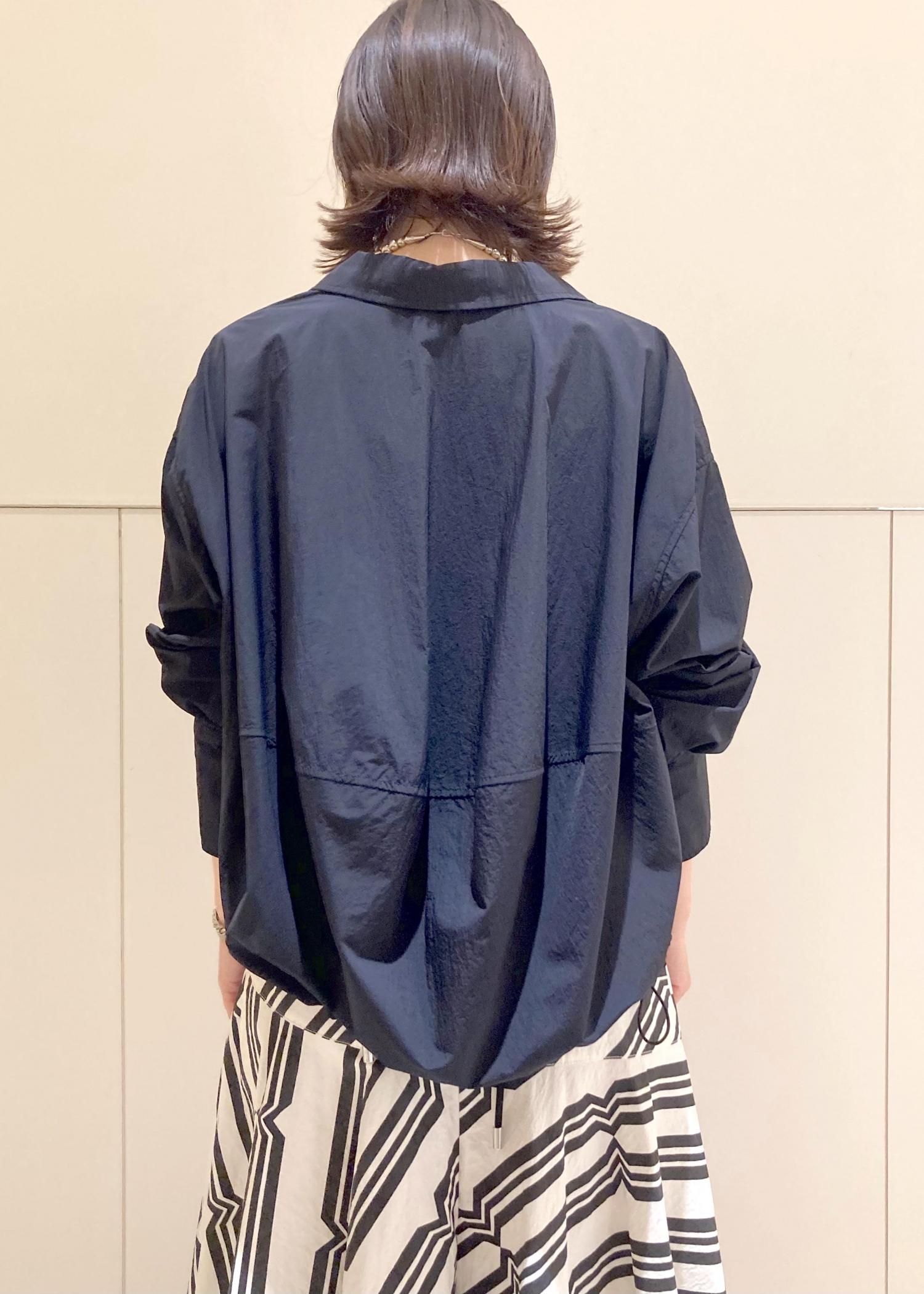 これはシャツ素材だけど、襟もついていて羽織りものとしても着やすい。柔らかい質感がハリのあるワンピースにはピッタリです。