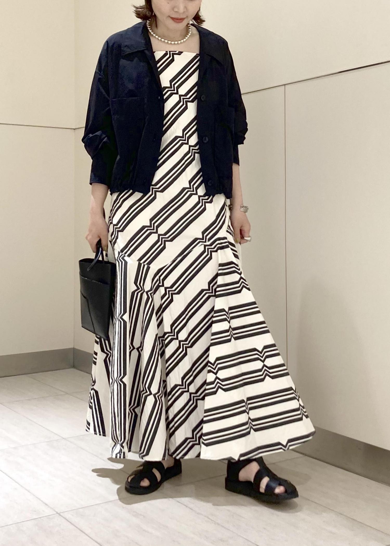 でもワンピースの華奢な良さは見せたい。という複雑な気持ちの時は、羽織りものでスタイリングしてみてはいかがでしょうか。
