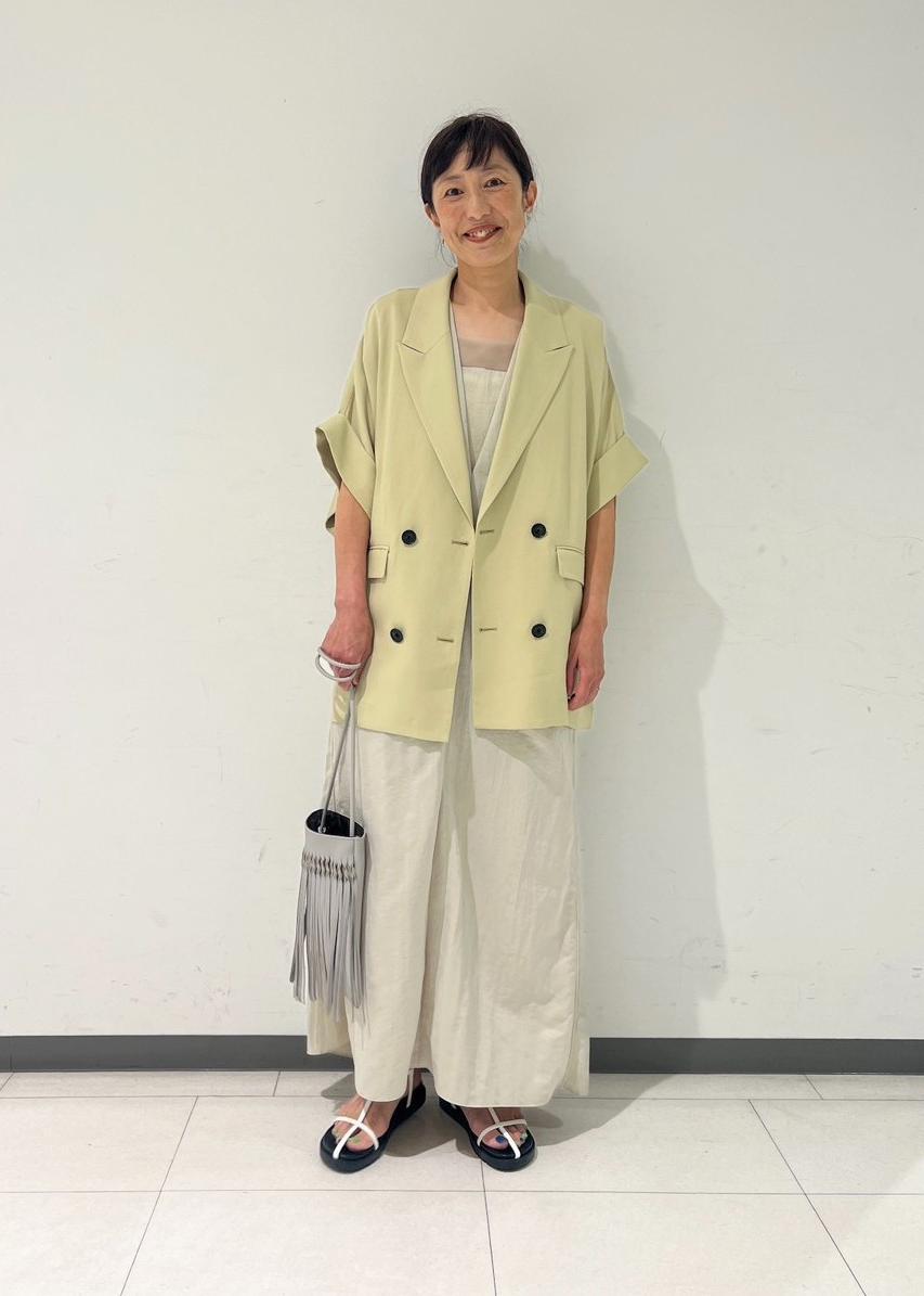 今回はショートスリーブジャケットを羽織って、ワントーンでまとめてみました。
