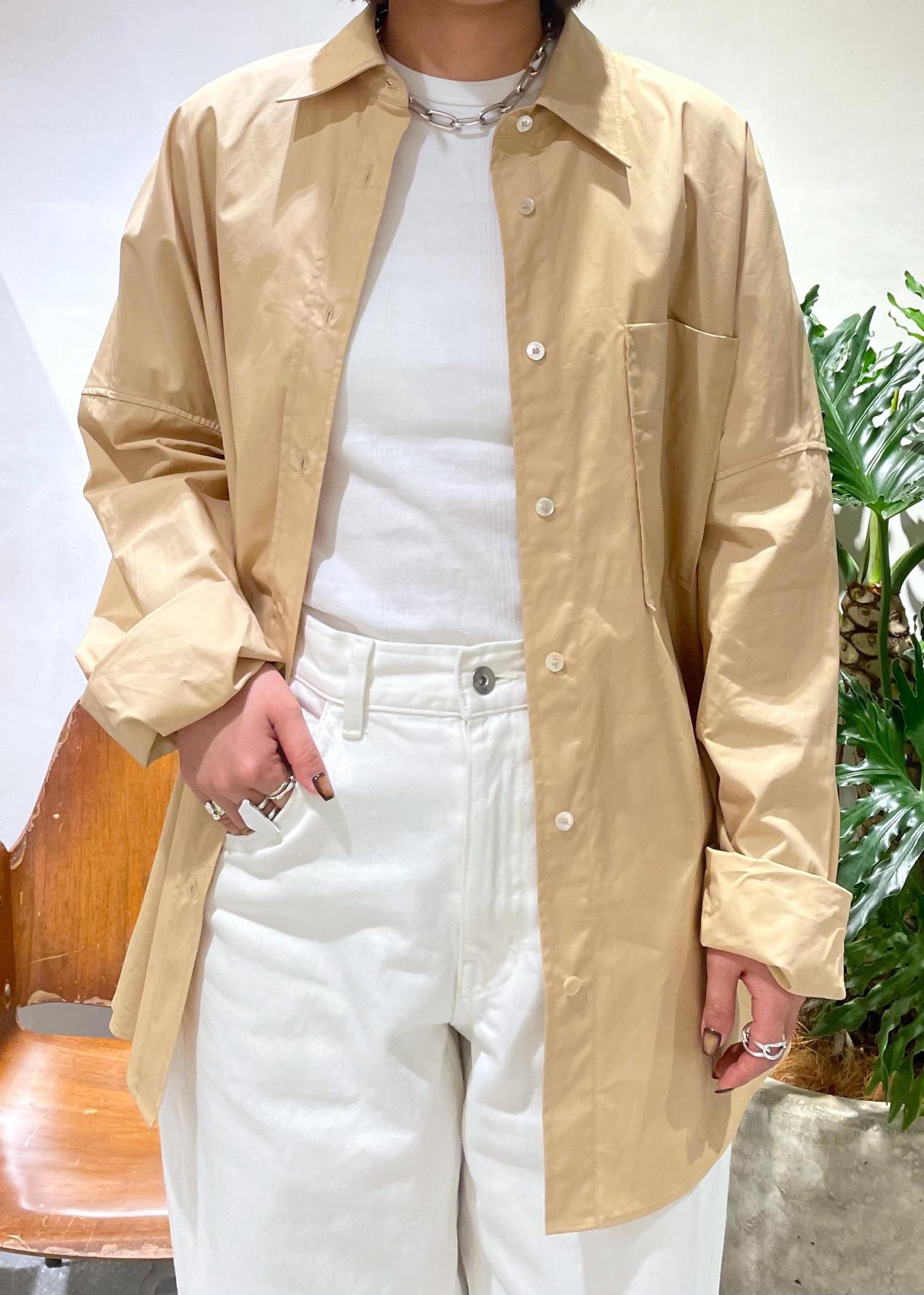 夏の羽織りにおすすめのバックコクーンオーバーシャツをご紹介致します。