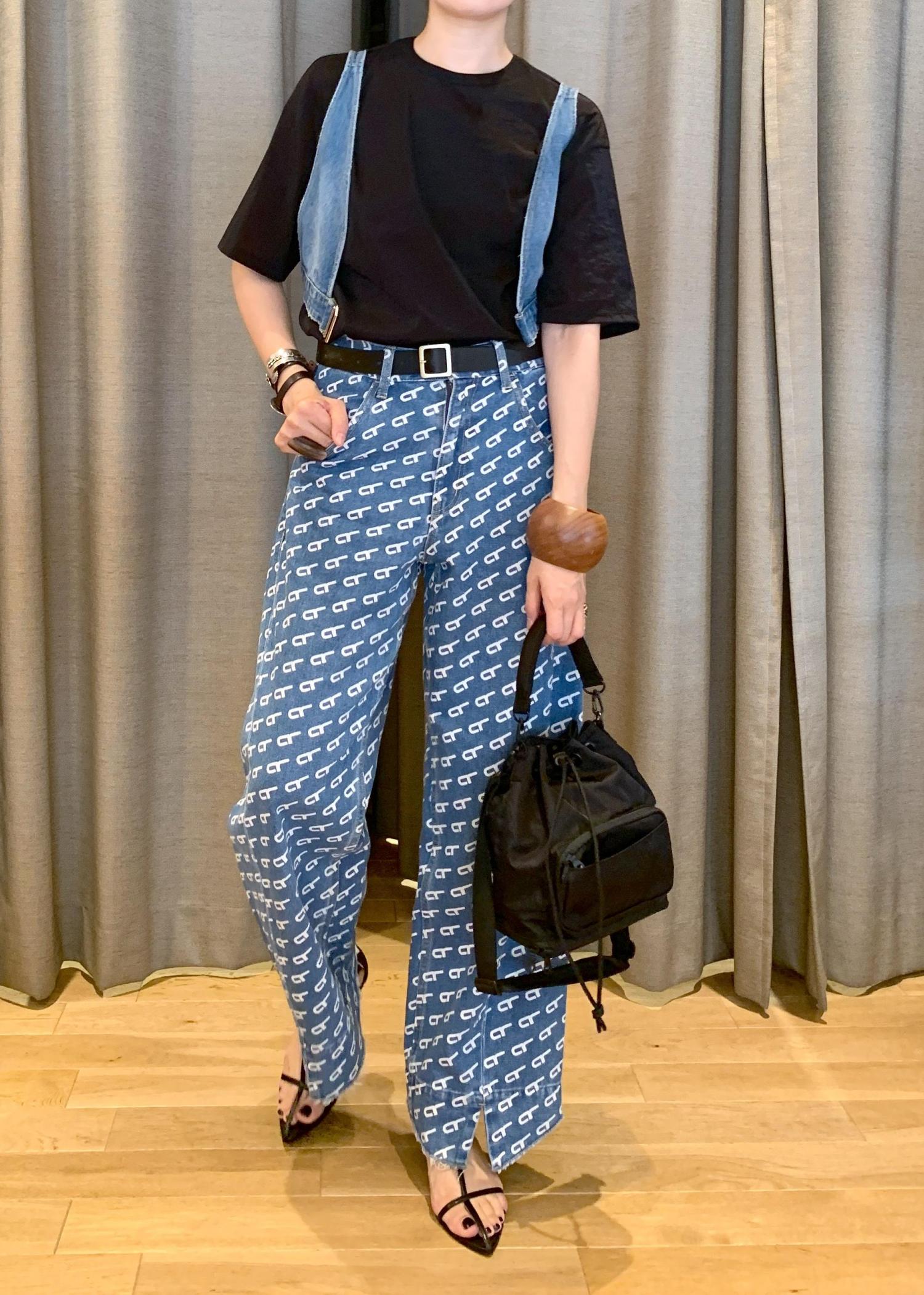 ボトムのデニムは柄パンツな感覚で合わせると良いですよ。