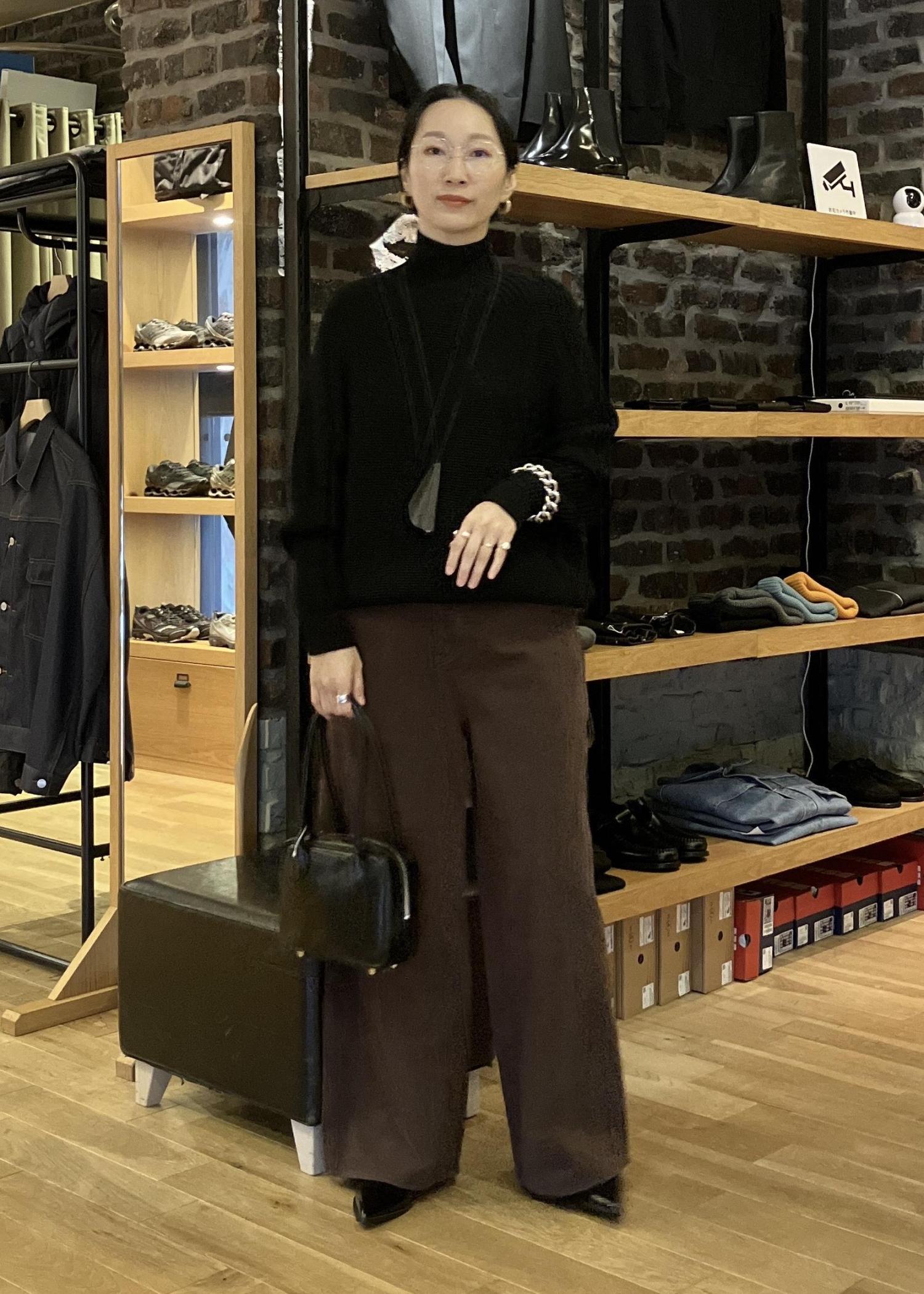 前をキュッと高い位置で結ぶとユルめシルエットのボトムスとも好相性です。