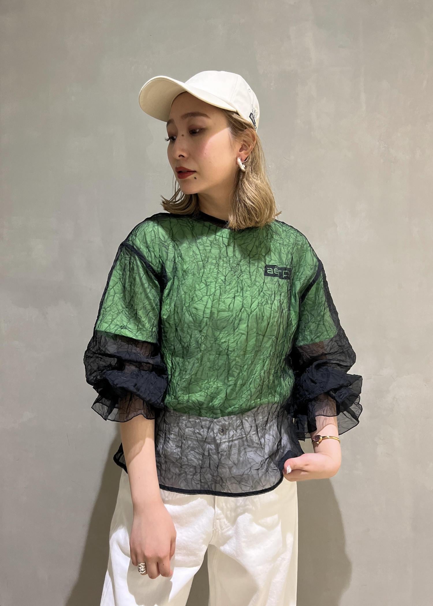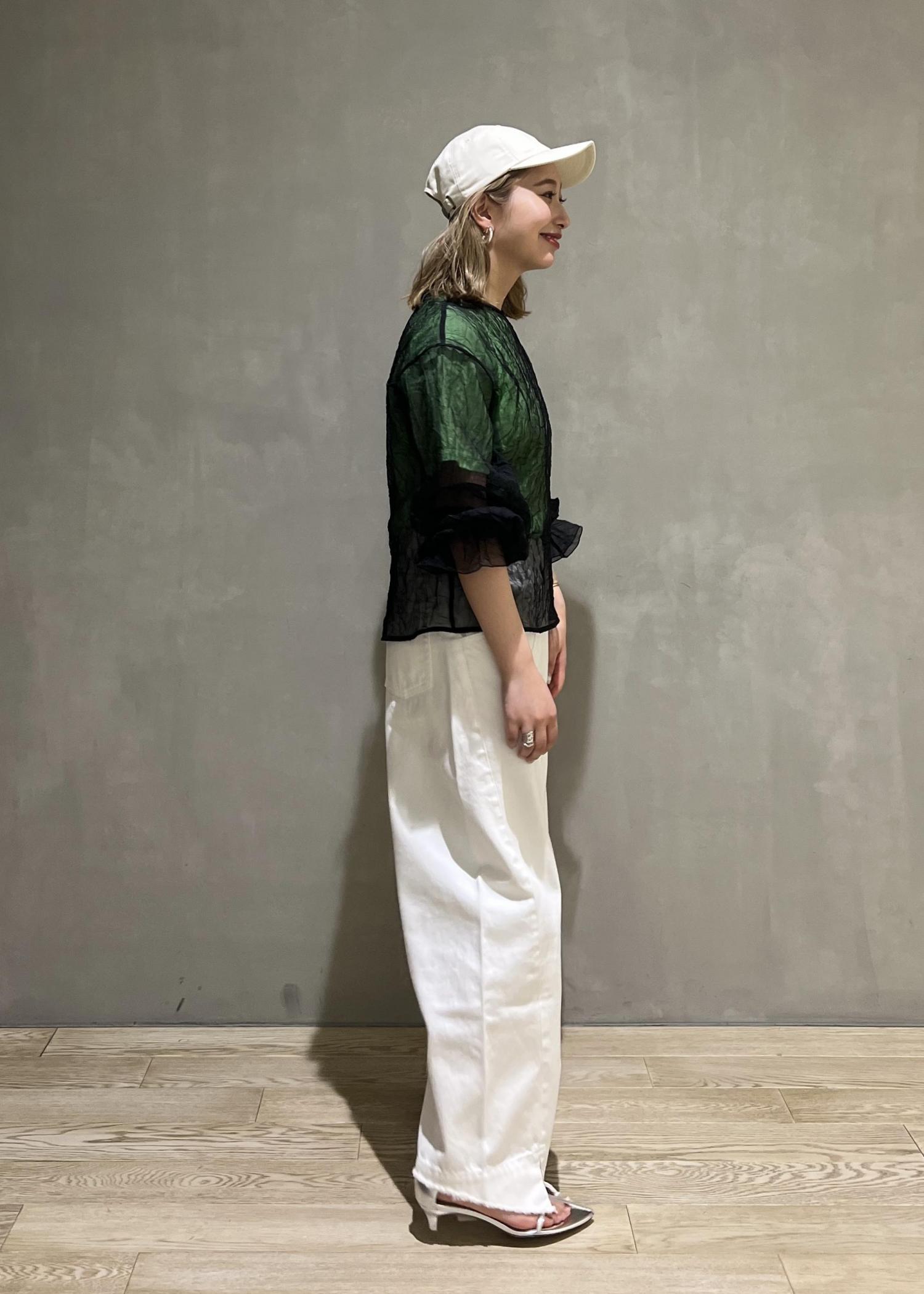 【サステナブル】2WAYシュリンクブラウスを着用した着回しコーデのご紹介です!