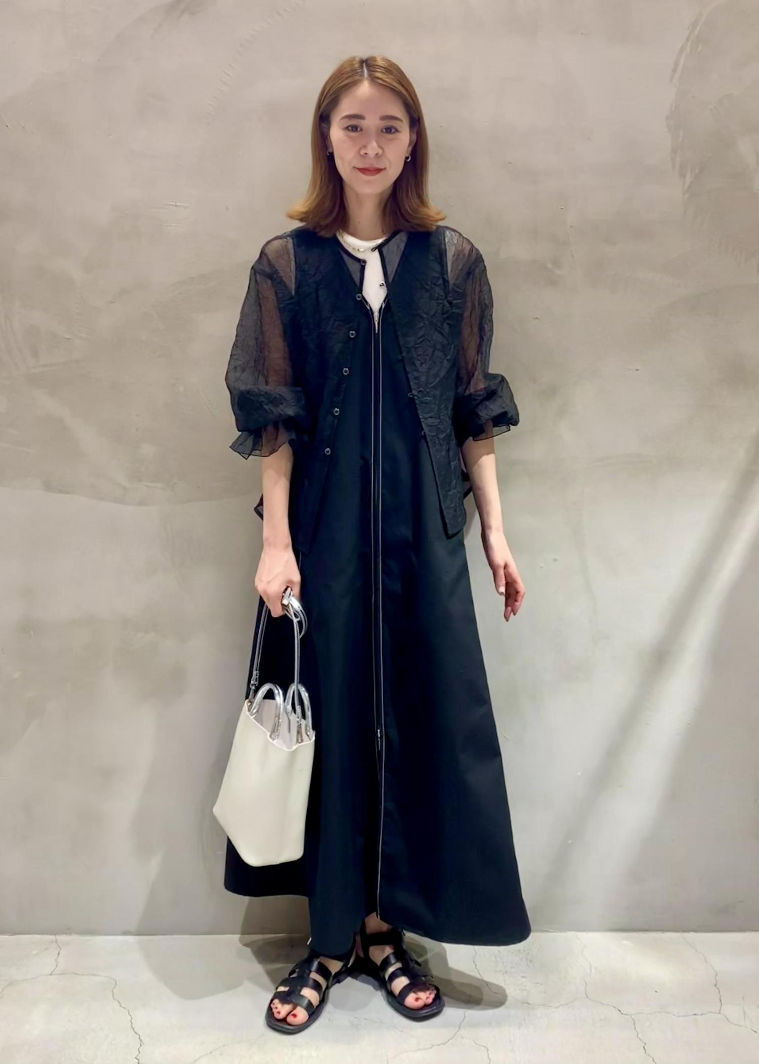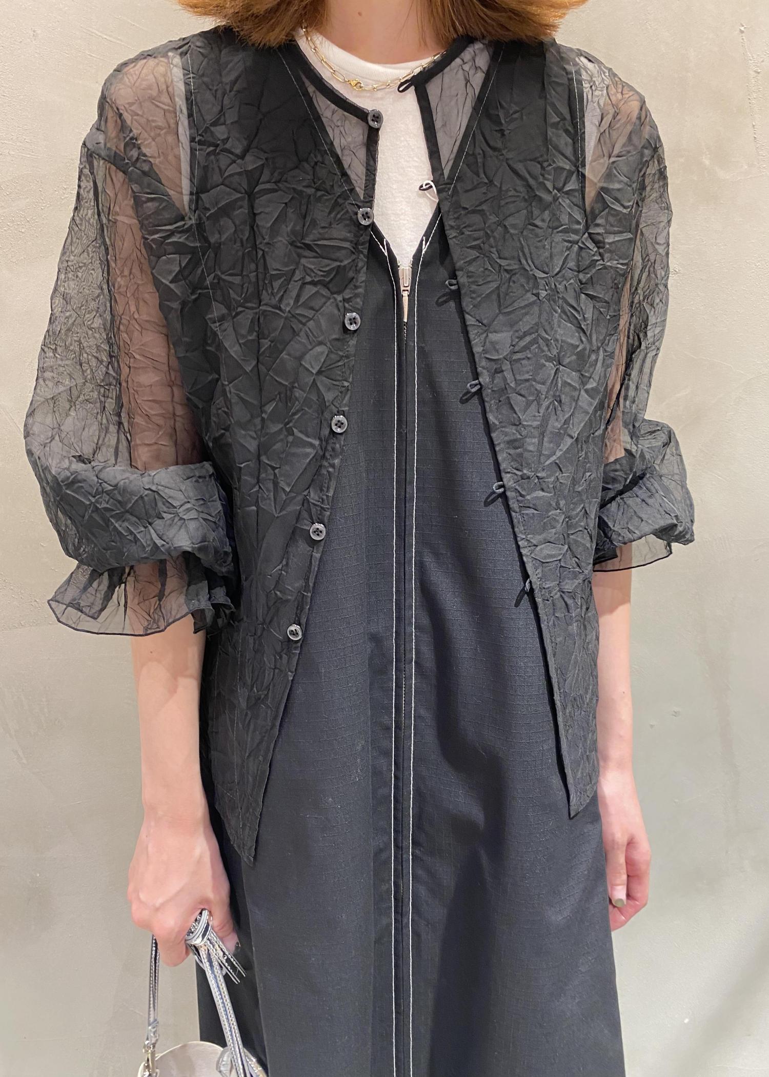 前後着用できてコーディネートの幅も広がる、涼しげなシアーブラウスとなっております!