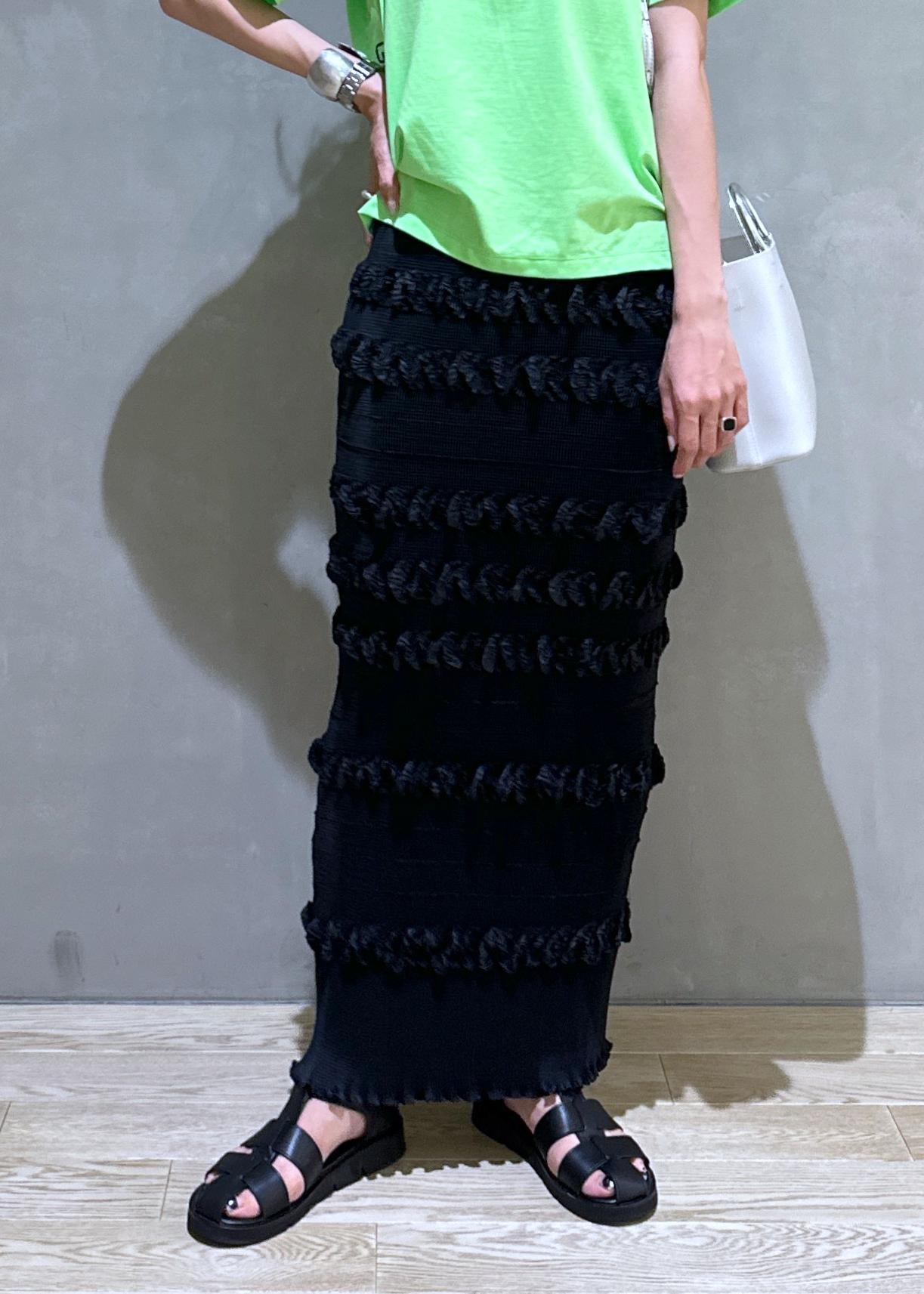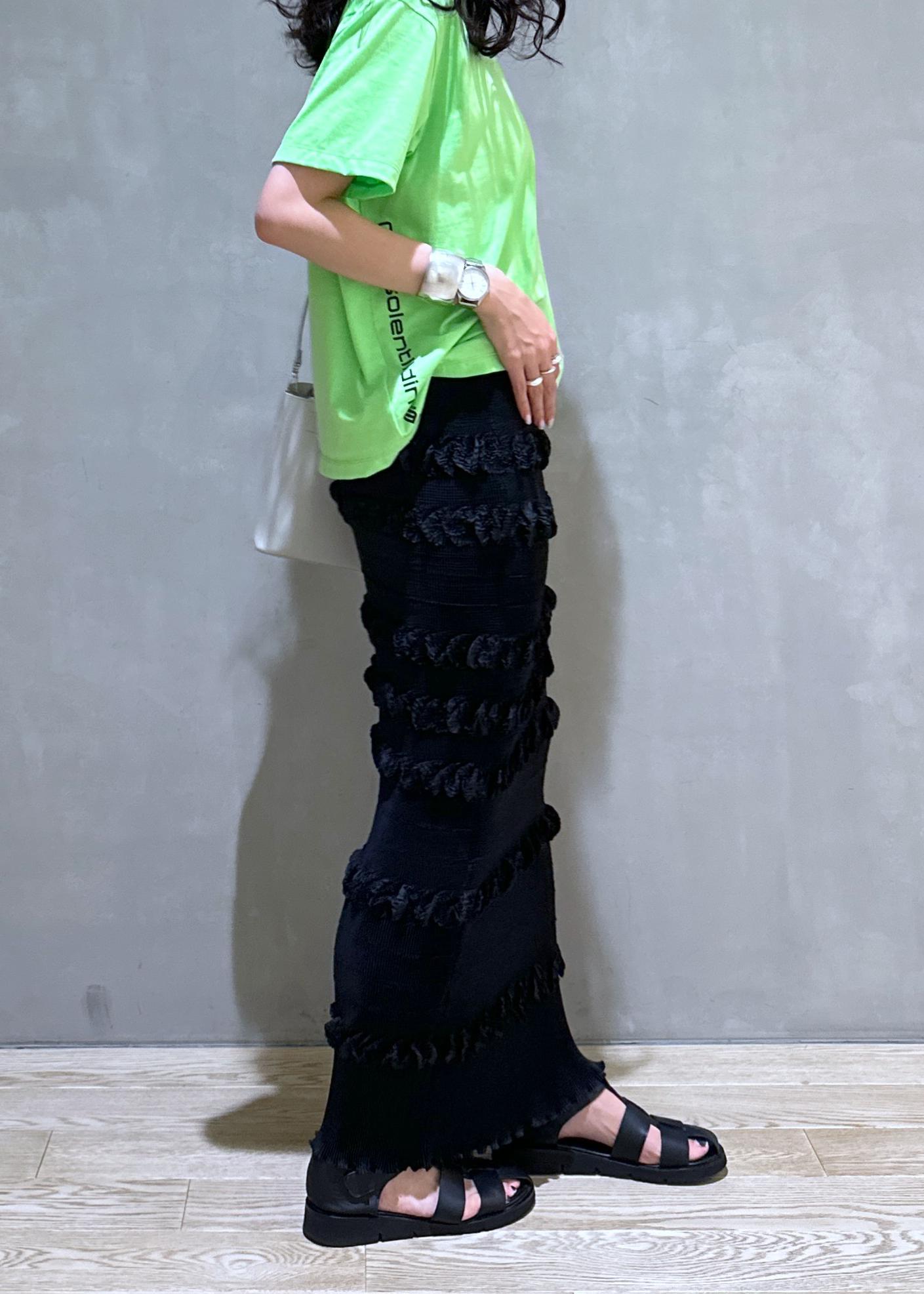 大人気のマドレーヌプリーツは、トップスとセットアップで購入しました!ドライタッチ且つ、何処までも伸びてくれて着心地抜群です◎