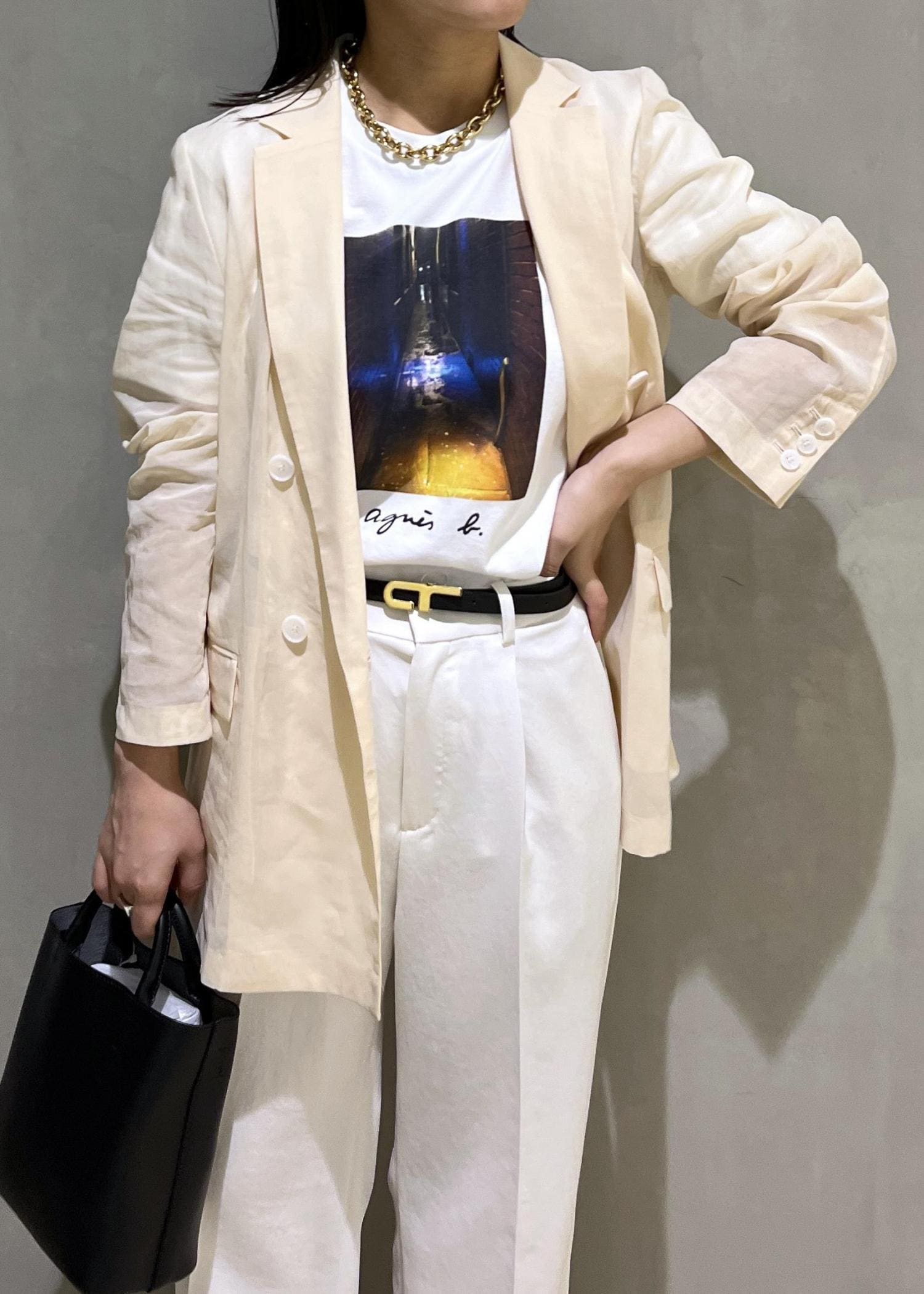今回はアニエスベー別注フォトTと合わせて、ワントーンで清潔感のあるスタイリングに◎