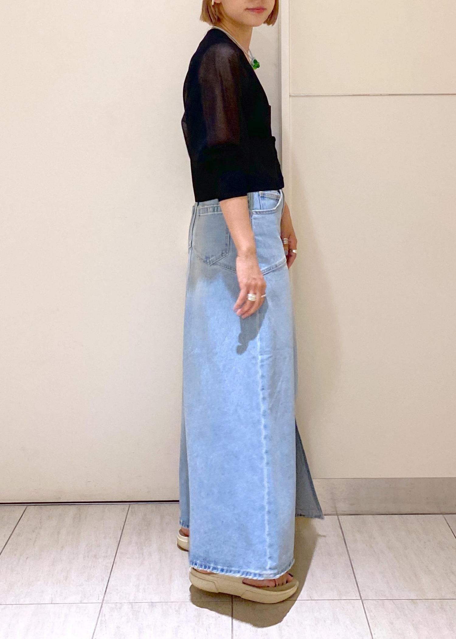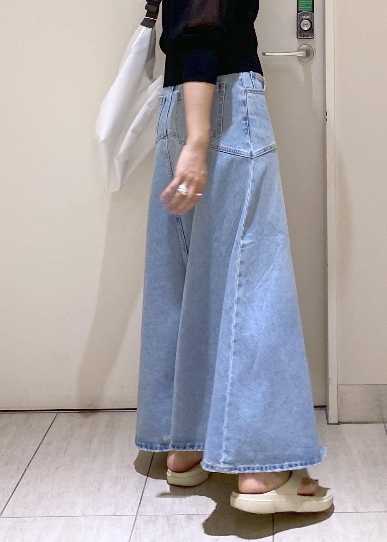 以前ご紹介させていただいた、デニムカーゴパンツと同素材のデニムスカートです。