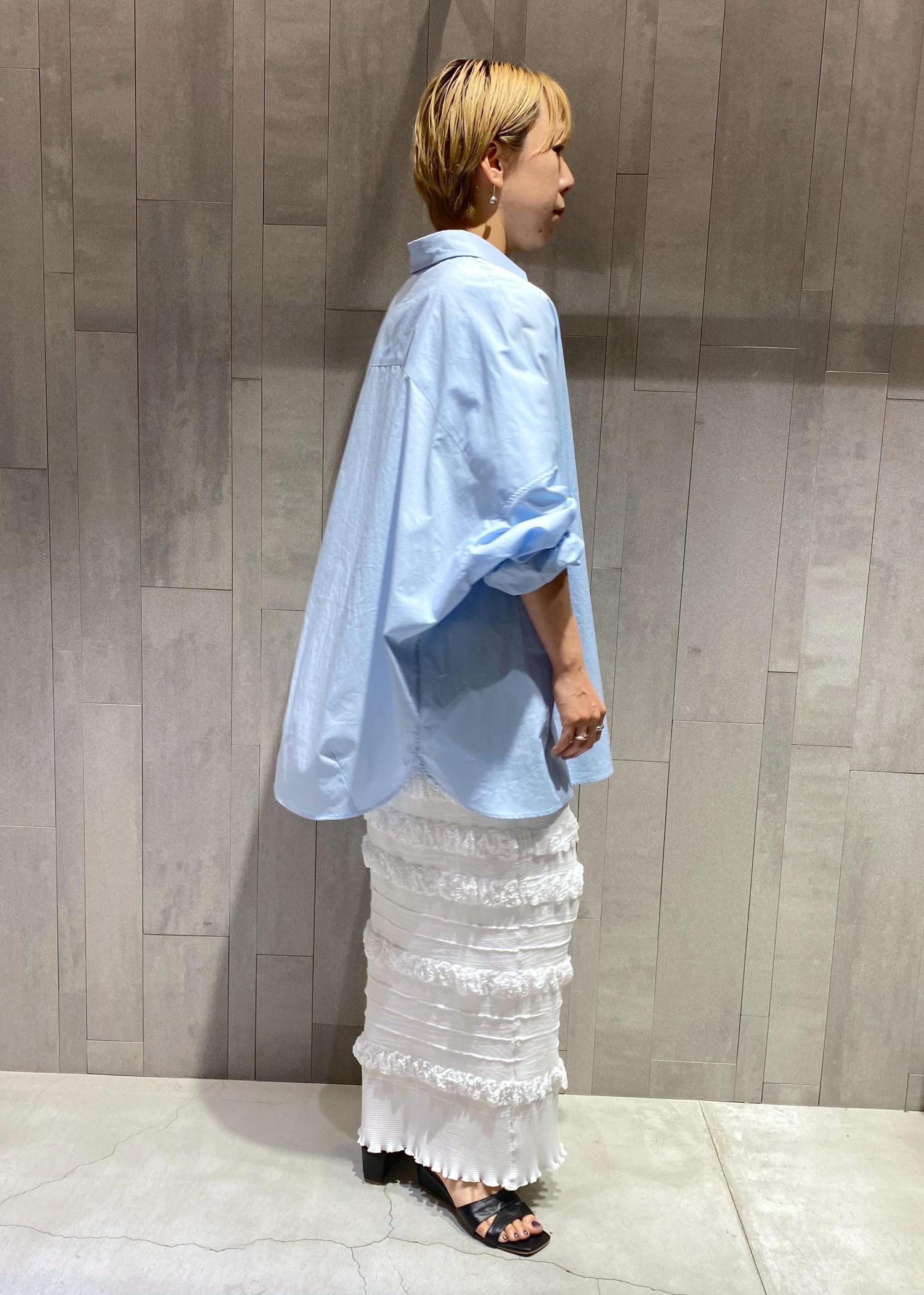 メンズのシャツを着ているようなシルエットはそこから覗く首回りや手首を華奢に魅せてくれます