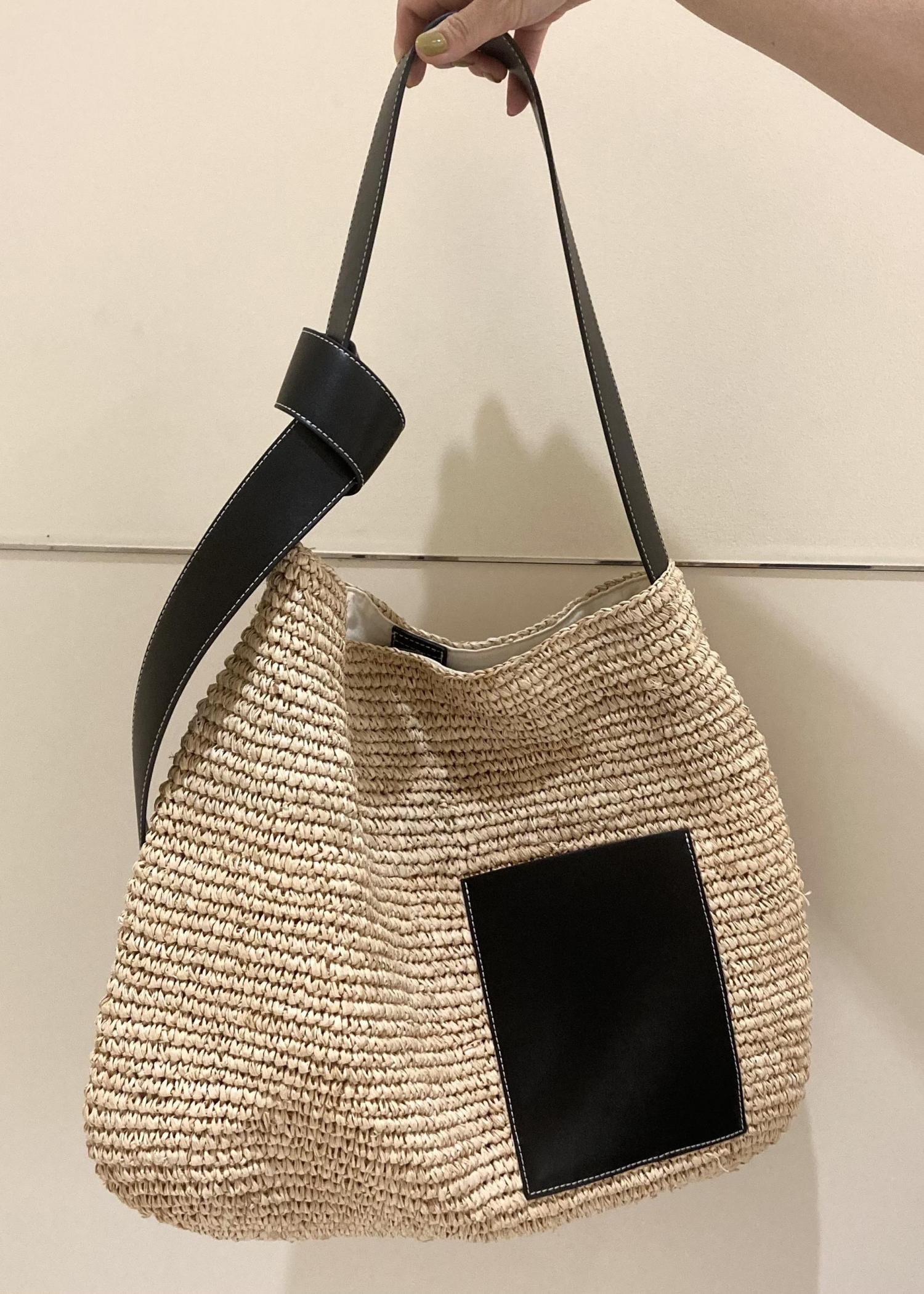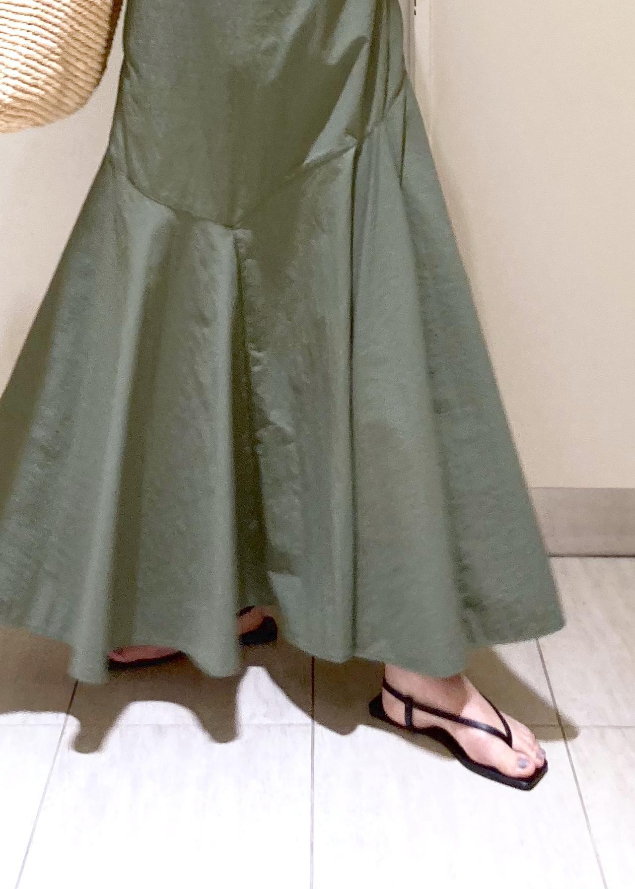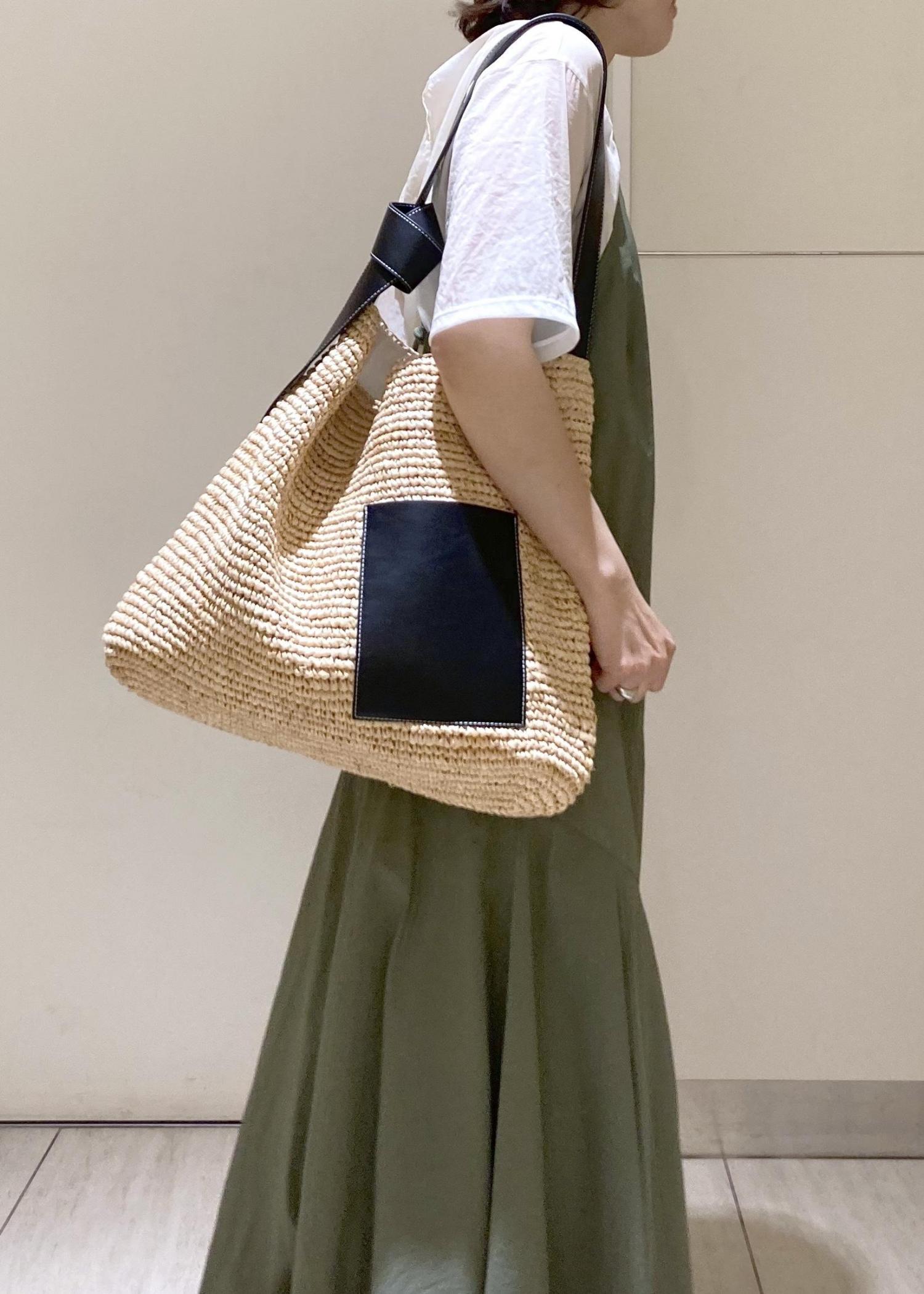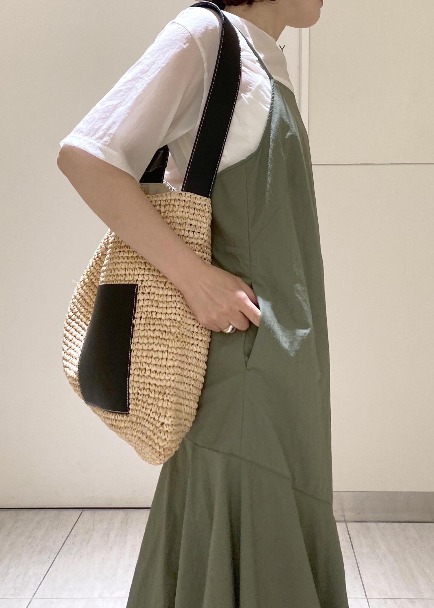 斜めの切り替えがどこかエレガントでカジュアルになり過ぎず、フェミニン度も抑えめです。