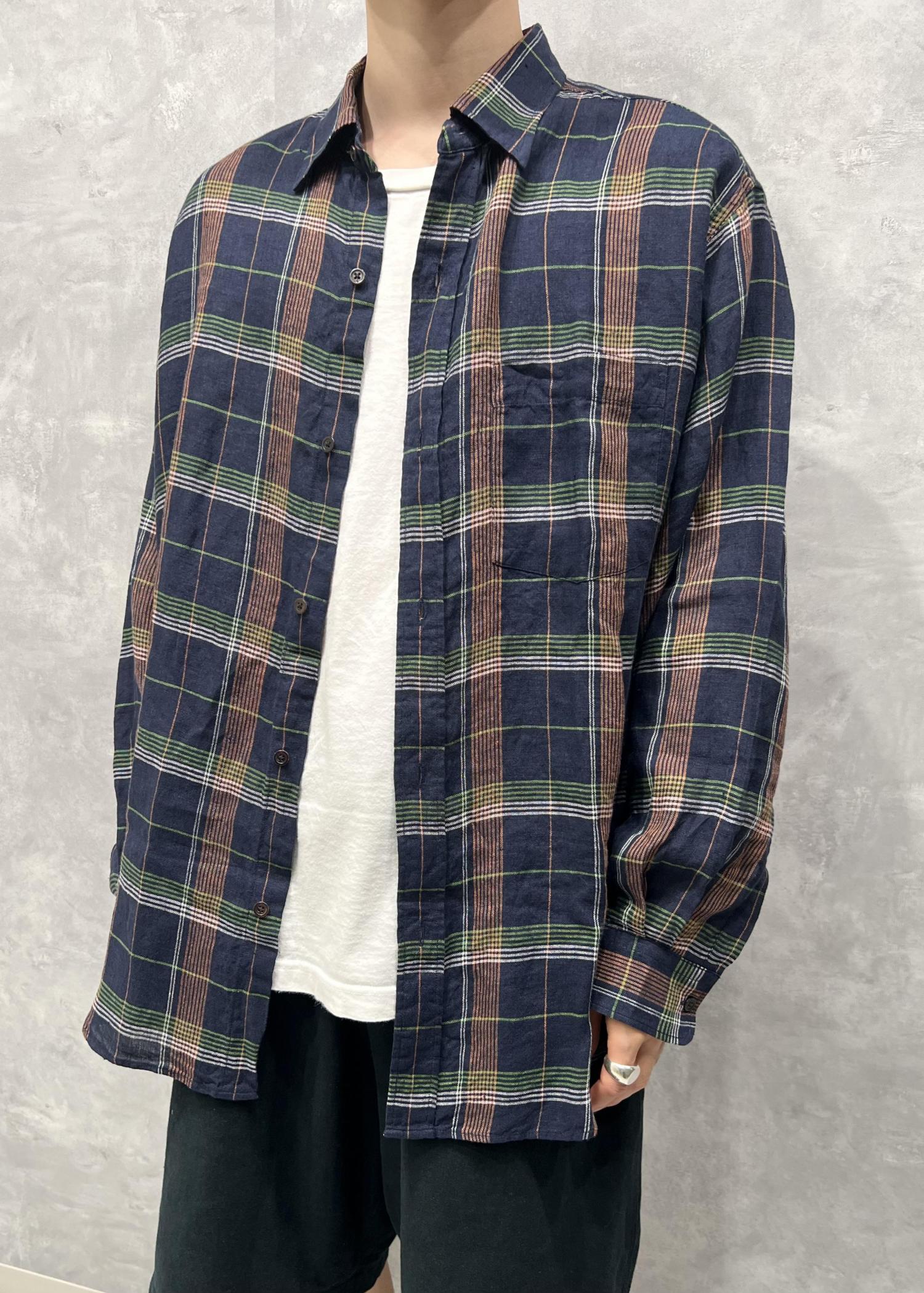 気取らない、涼しげなリネン100%のチェックシャツ。
