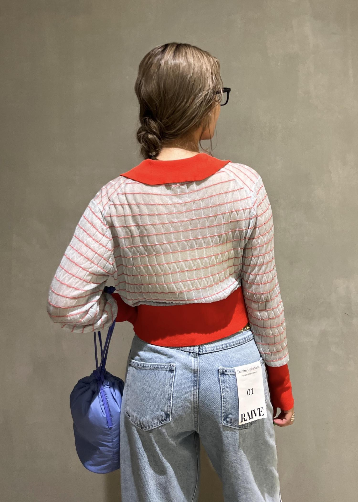 パキッとした原色のお色味に淡い色のデニムがピッタリです!