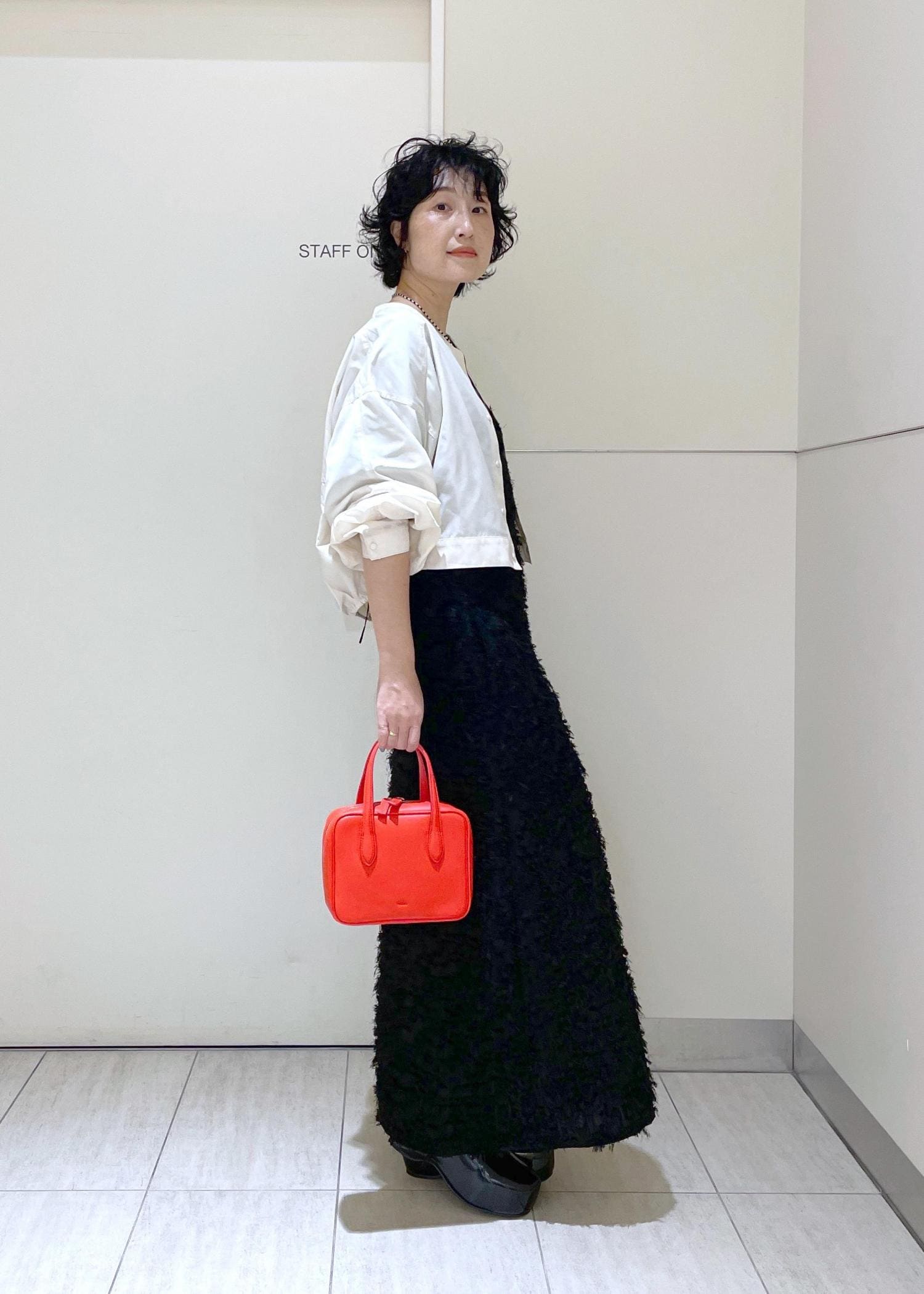 ワードローブには圧倒的に黒が多いのですが、この秋はブラウンを基調にしたスタイリングも気分なので、甘すぎないオフホワイトの羽織りは使えそうだなぁ〜、、
