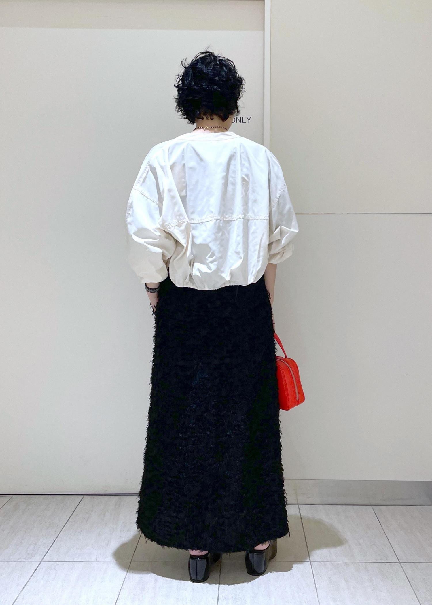 タフタ素材のブルゾンライクなブラウスは、秋1番の羽織りとしてもぴったりです◎