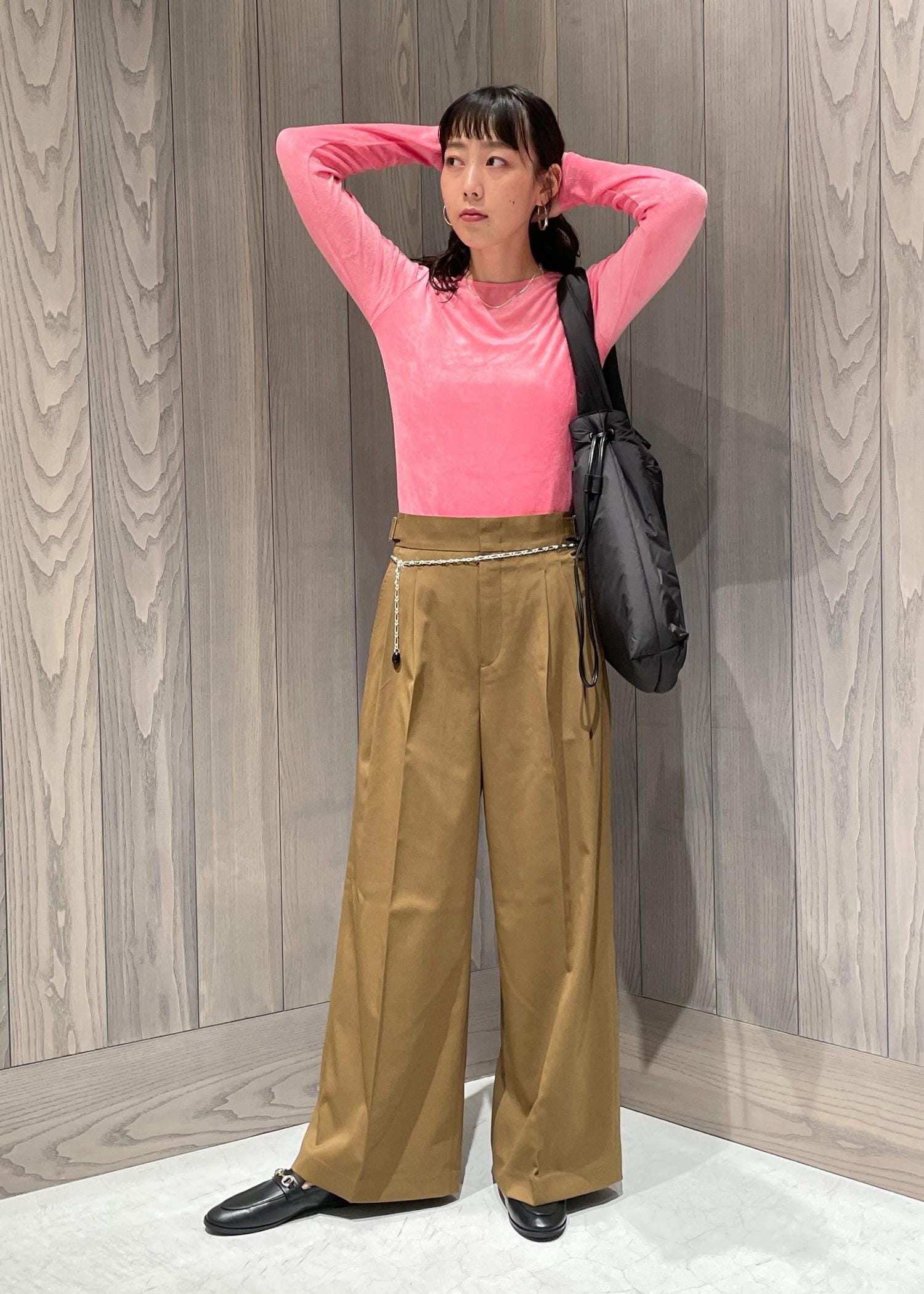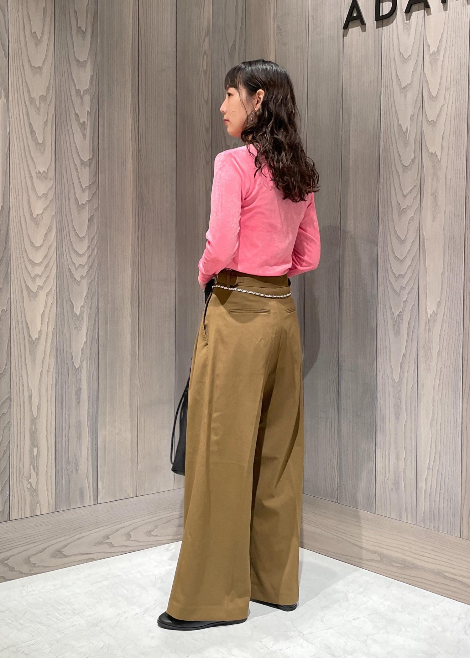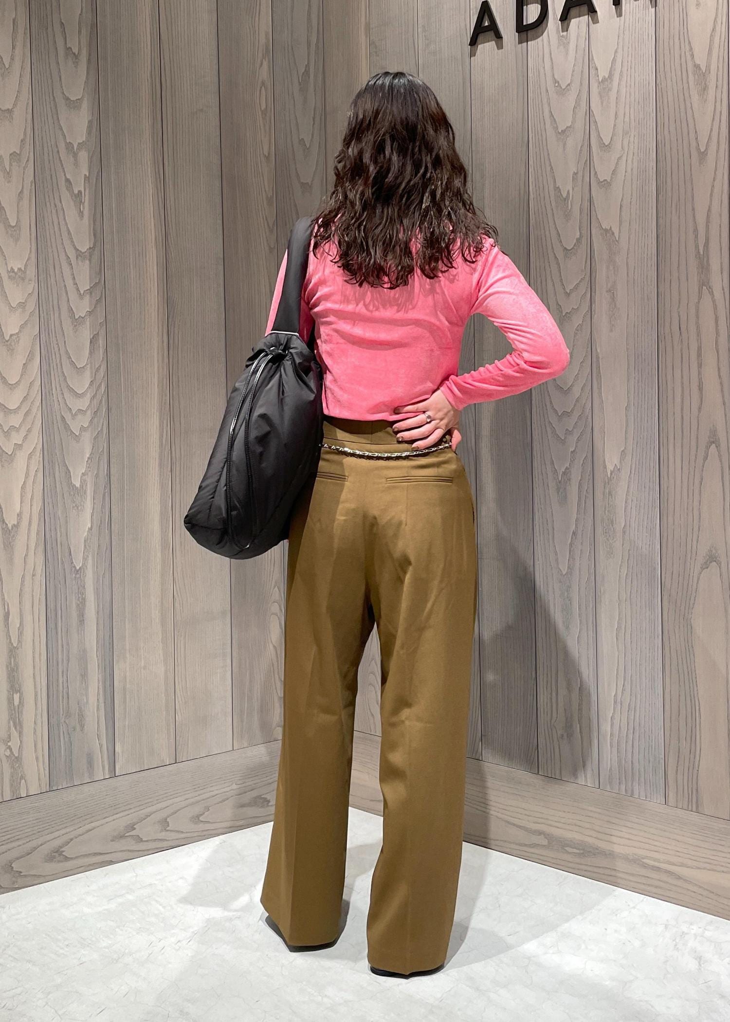 綺麗なピンクを活かしたかったので、今シーズン気になっているブラウンのパンツとシンプルに合わせてみました。
