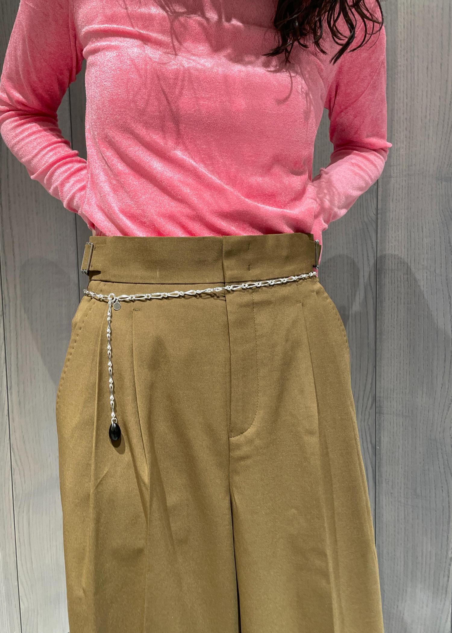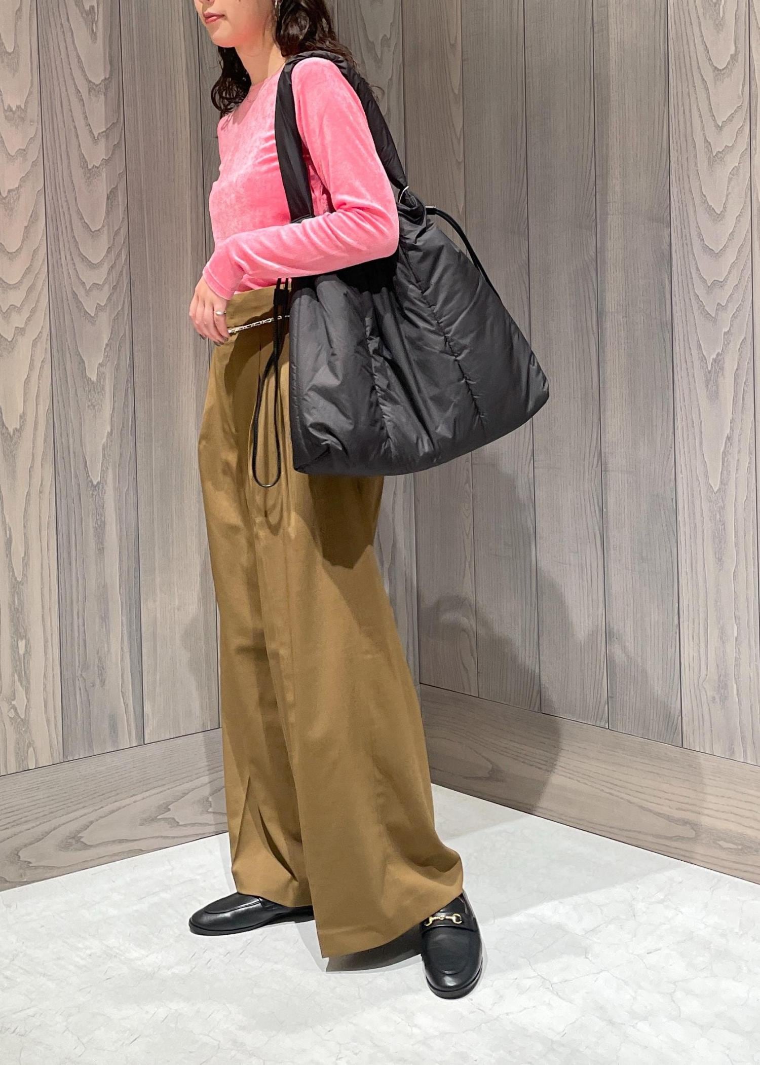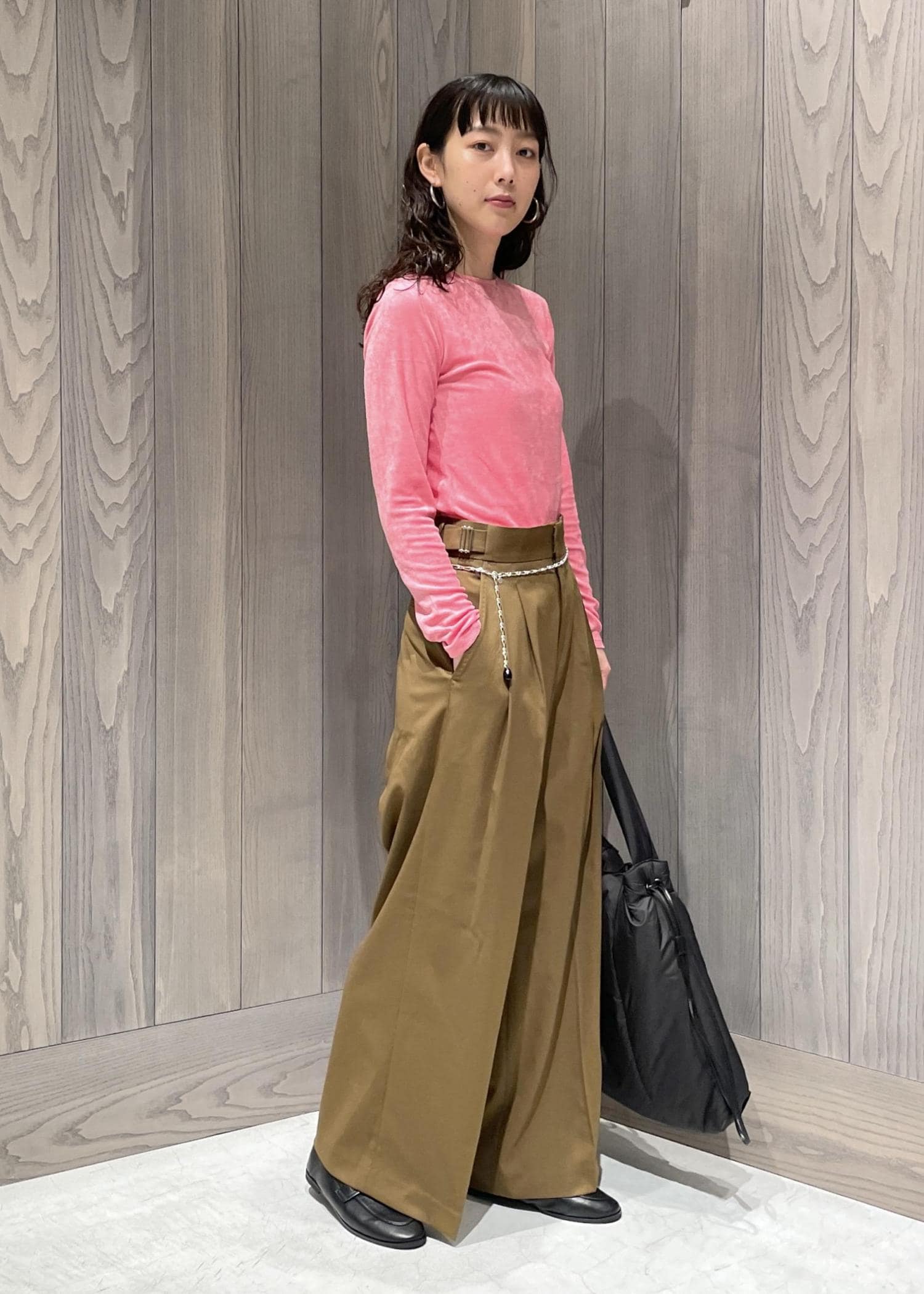 綺麗なピンクを活かしたかったので、今シーズン気になっているブラウンのパンツとシンプルに合わせてみました。
