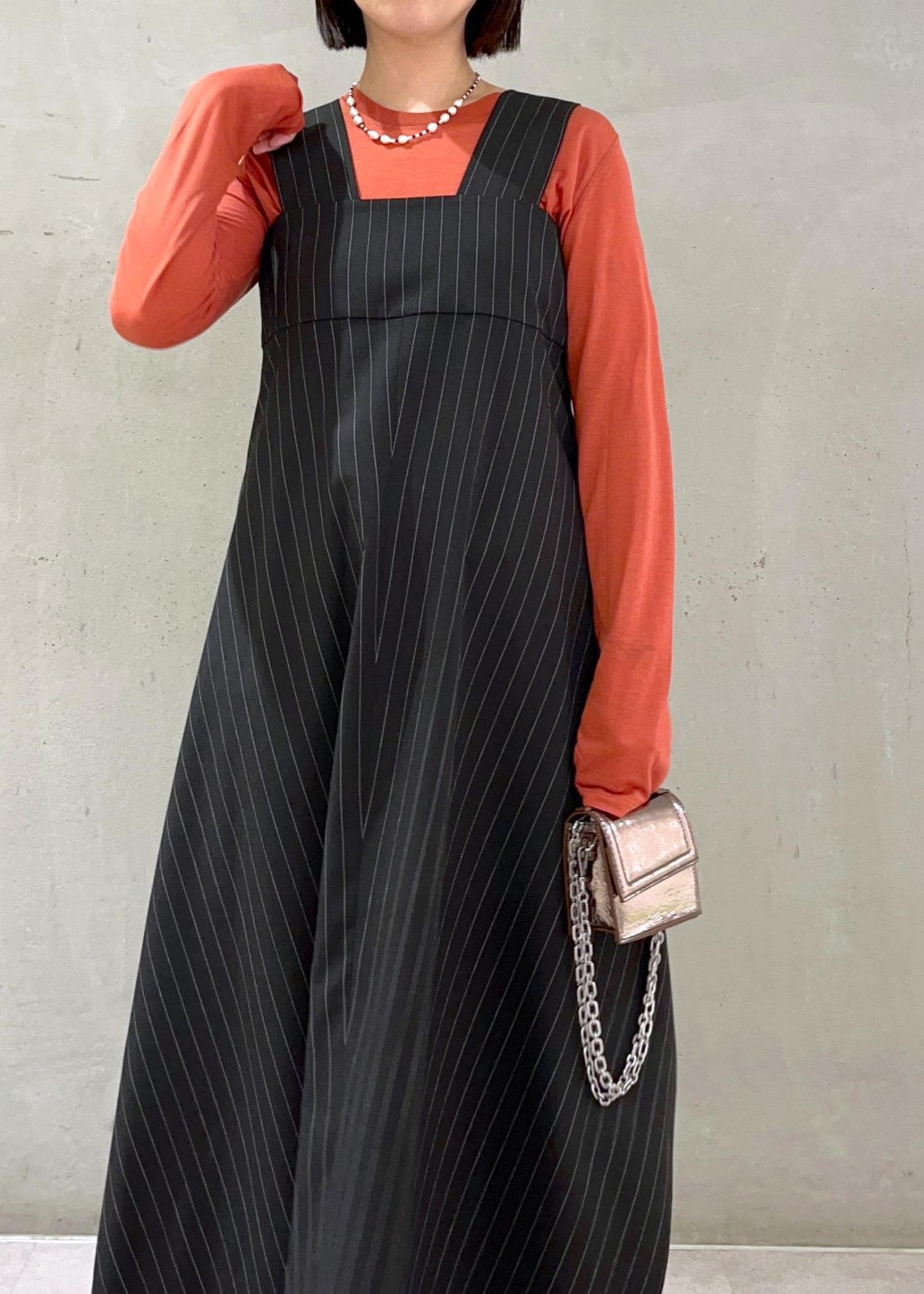 暑い今の時期はTシャツ合わせ、涼しくなってきたらタートルのニットと合わせて着ていただくのもおすすめです◎