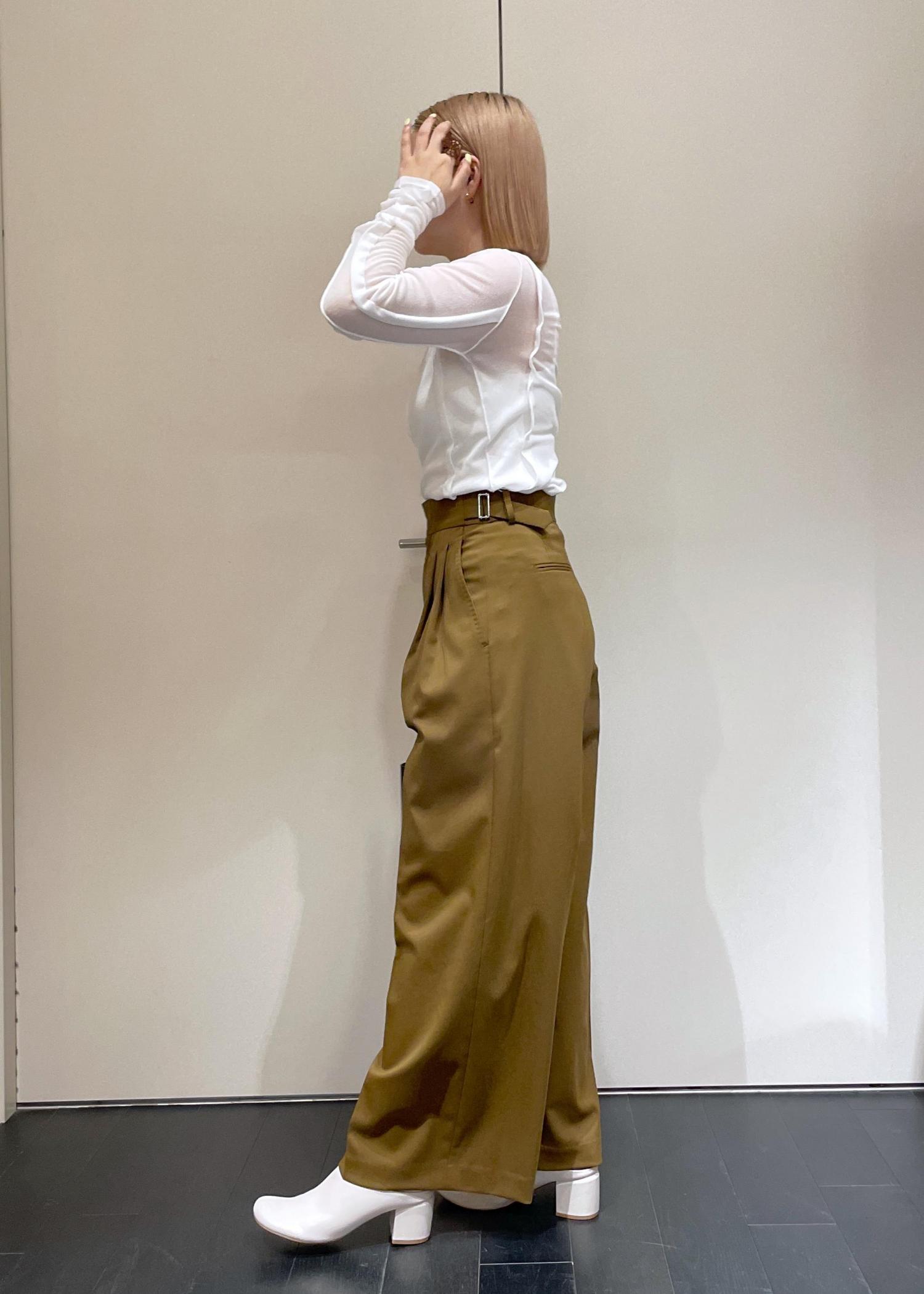 細身のシンプルなトップスに綺麗めスラックスパンツを合わせたコーディネートです。 シンプルですが、透け感のトレンド感のあるトップスにウエストサイドにポイントのあるパンツを合わせてシンプルで着やすくトレンド感もあるスタイリングにしてみました。 パンツもウエストのベルトで調節が可能でわたりも広く、とてもゆったりとした楽ちんなパンツです。 名古屋タカシマヤゲートタワーモール では通販も承っております。 お気軽にお電話くださいませ。 052-566-6415 LINEで名古屋タカシマヤゲートタワーモールスタッフに相談は【友達だち追加】をタップをして下さい