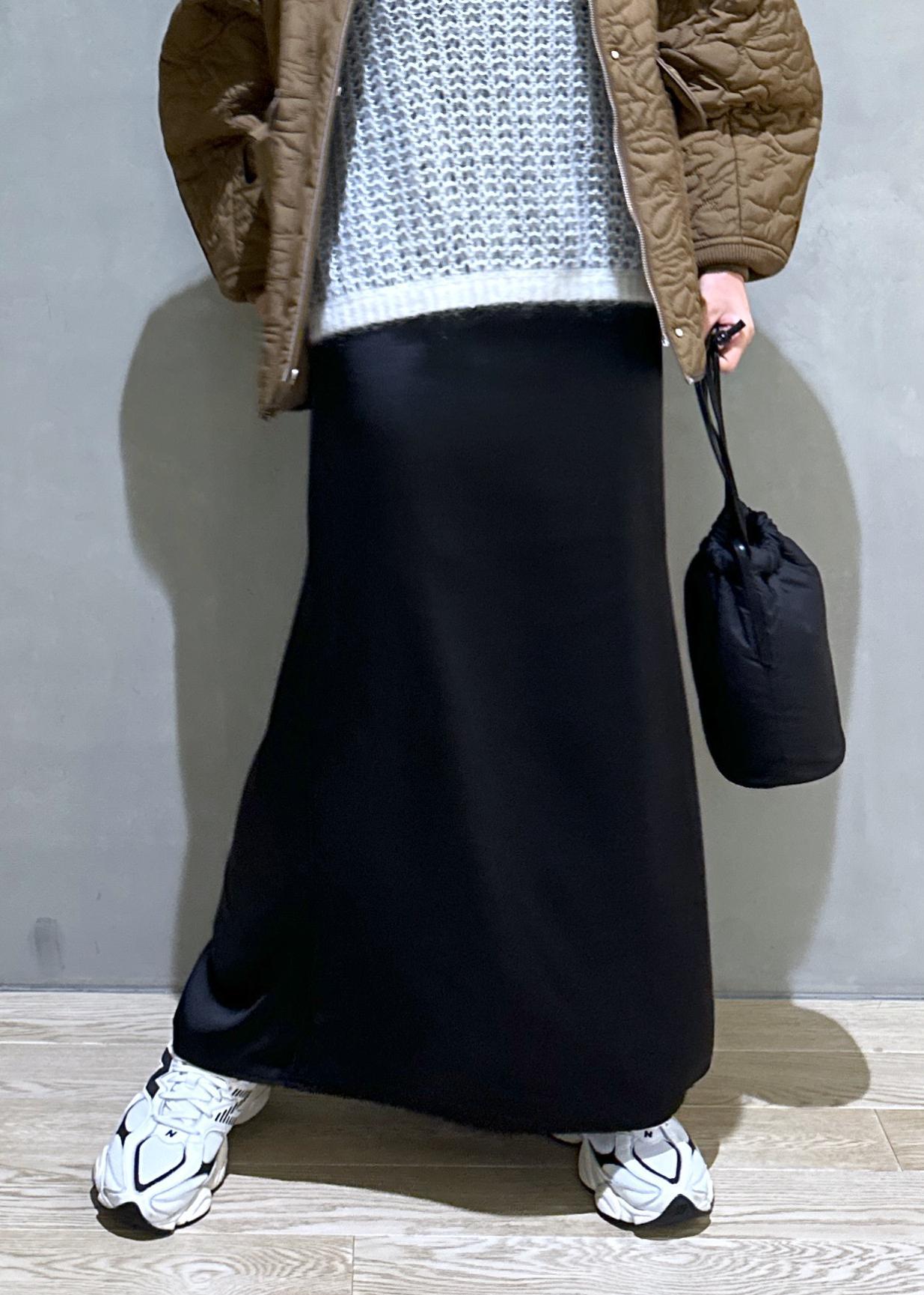 ADAM ET ROPÉ FEMMEスリットサテンマーメイドスカートブラック / 36¥17,600レビュー165cmで36を着用。ジャストウエスト〜ハイウエスト位置で履くことが出来、足首が隠れる長さでした。