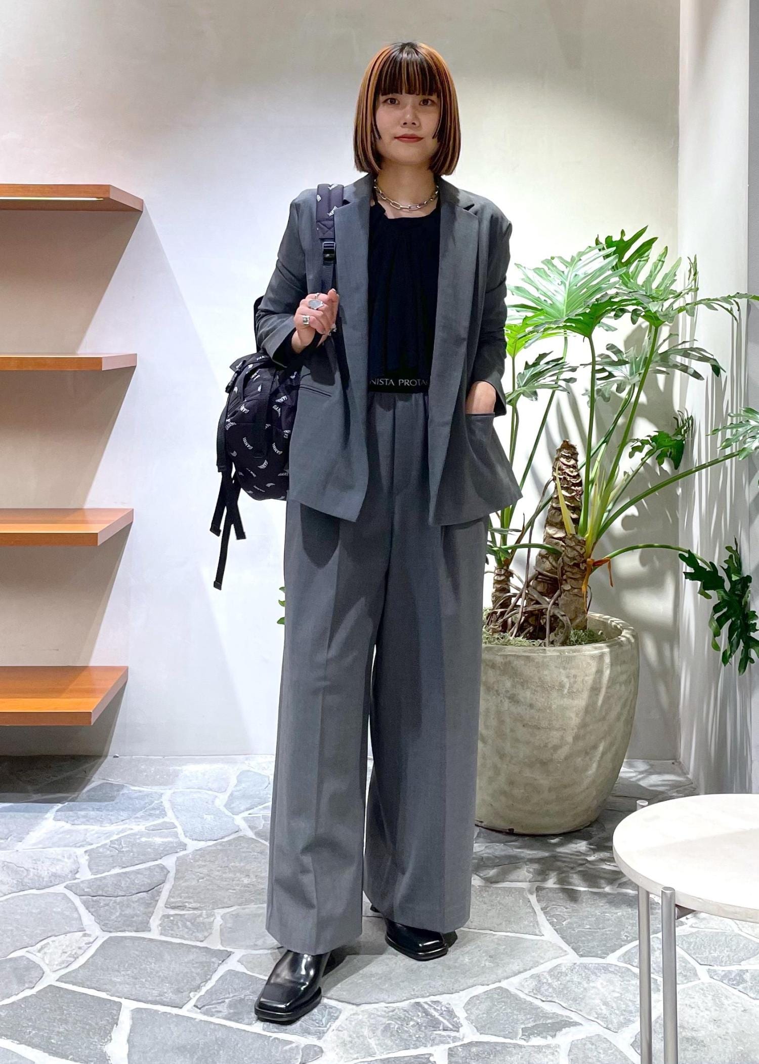 セットアップのブラウスはカーディガンとしてもお使い頂ける薄手素材なので、暑い日も涼しい日も、調節のしやすい1枚です!