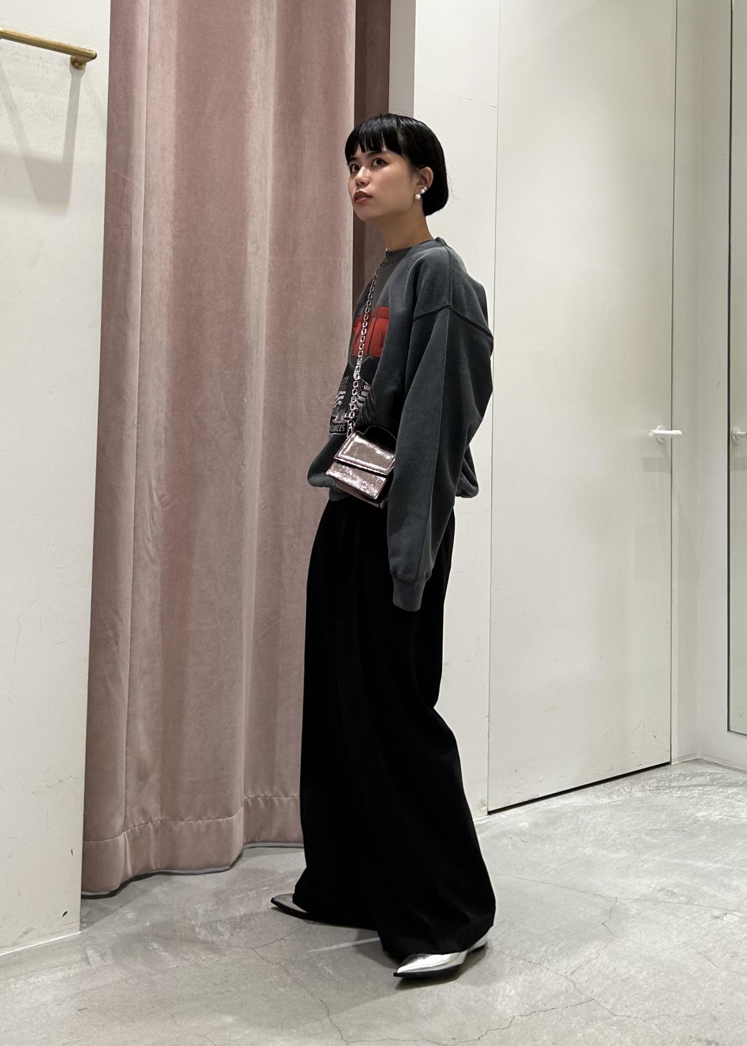 カジュアルなスウェットにはスラックスとパンプスのきれいめなアイテムでメリハリのあるコーディネートにしました。