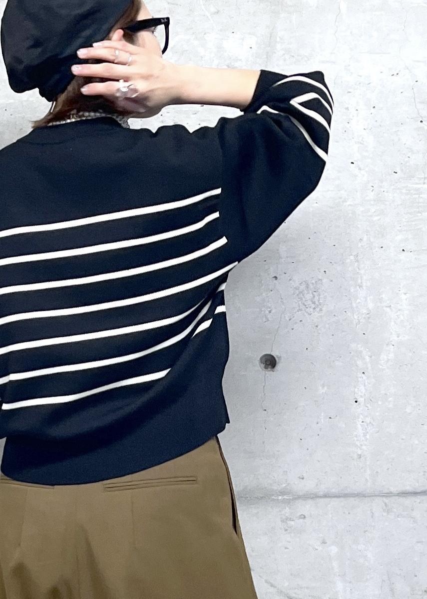 全体的に緩めなシルエットですが、クロップド丈&袖口のリブで袖丈の調節も可能。