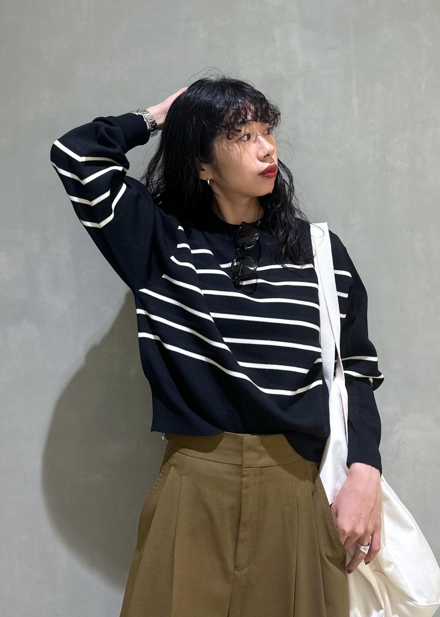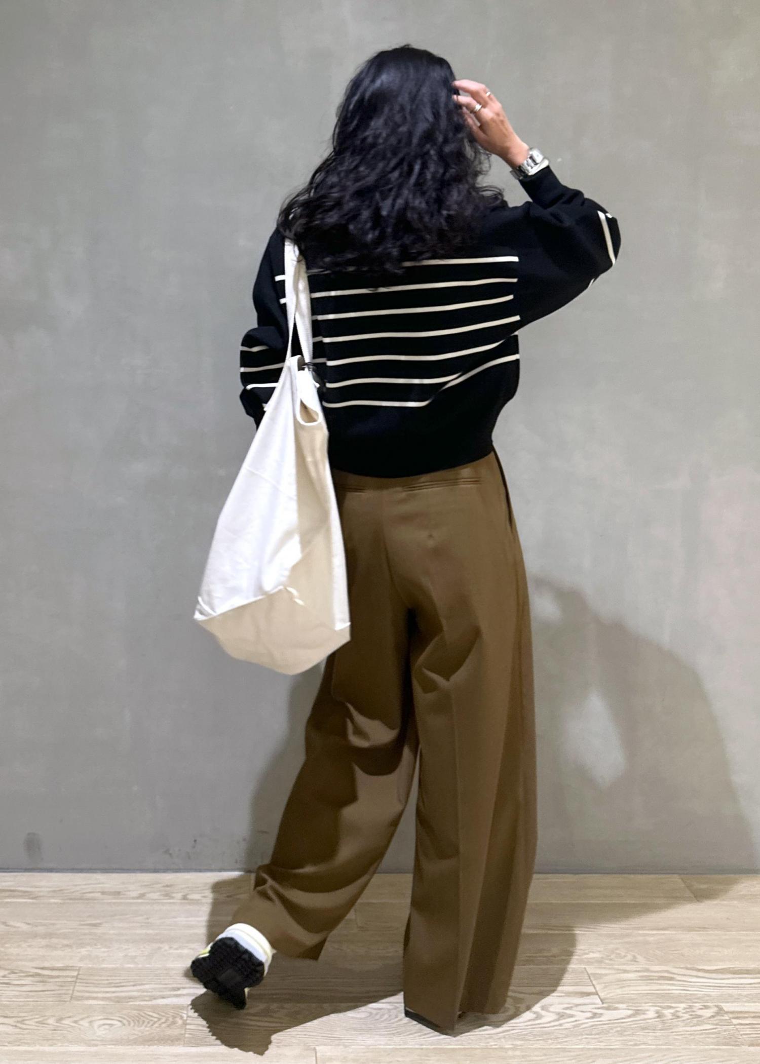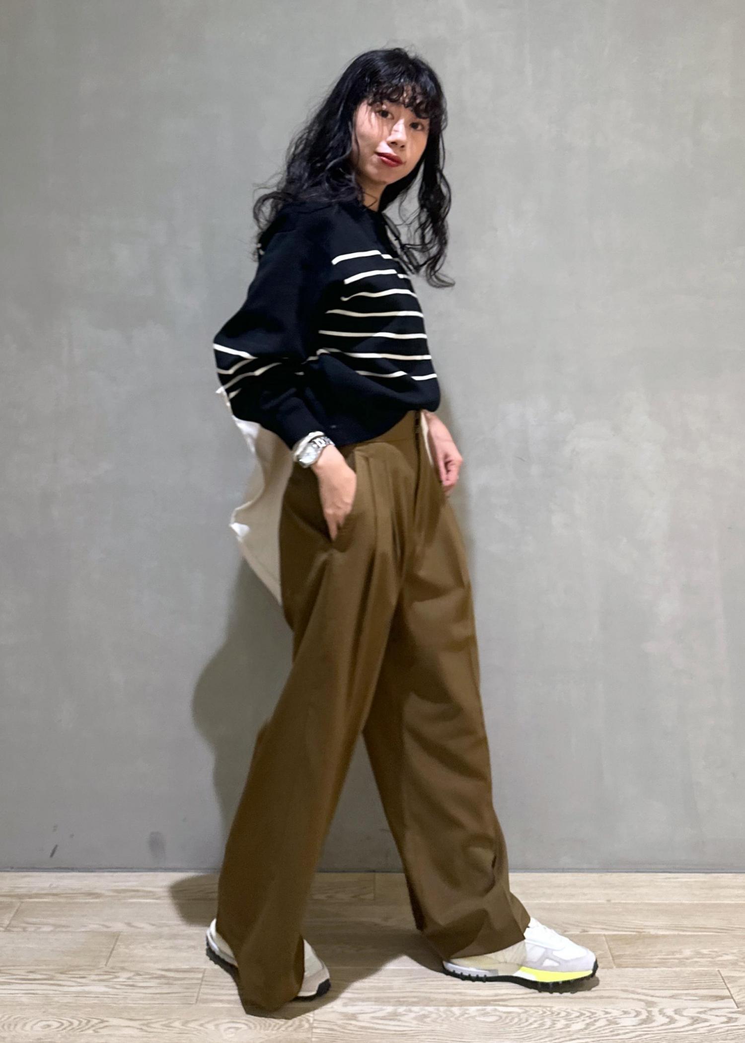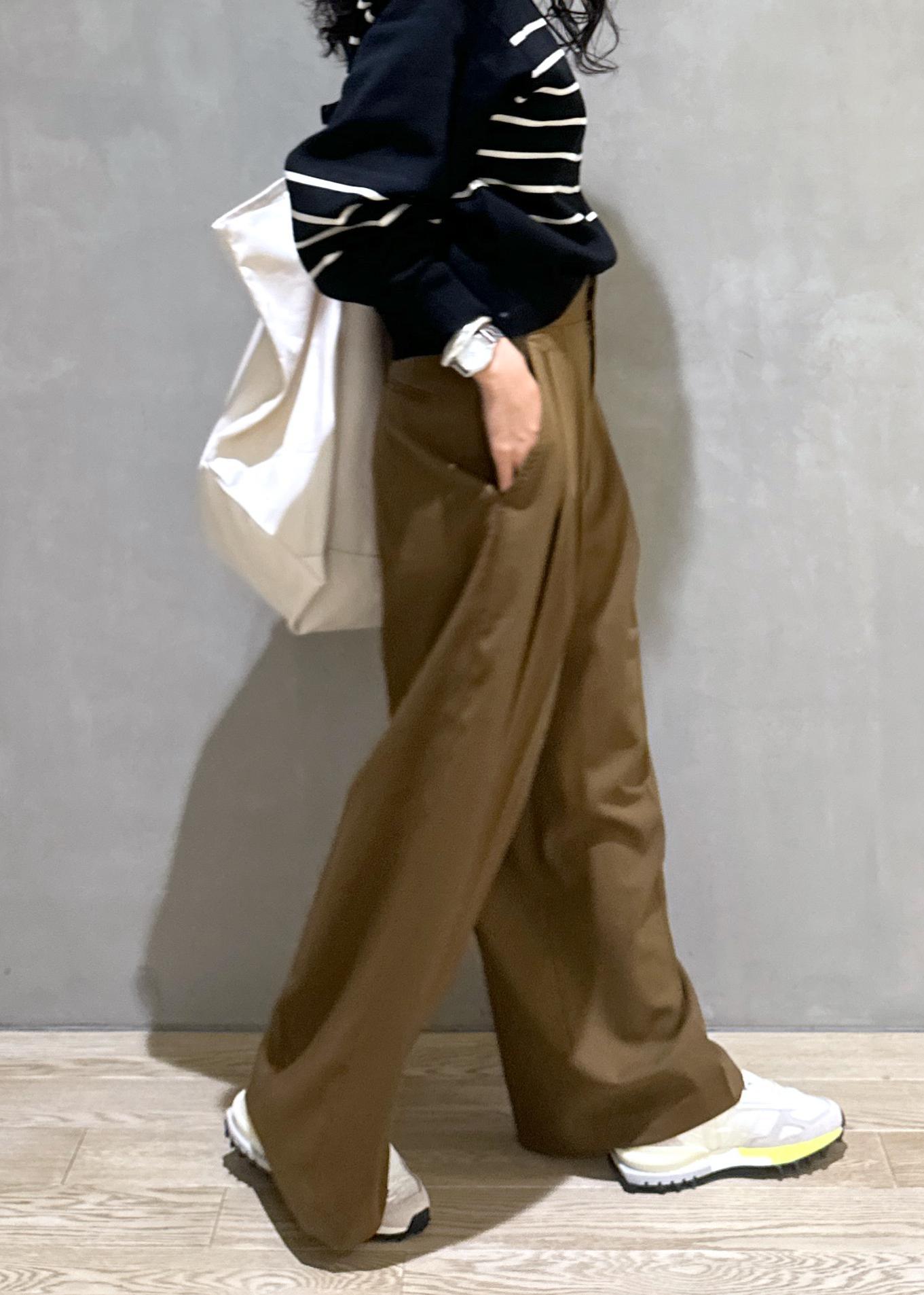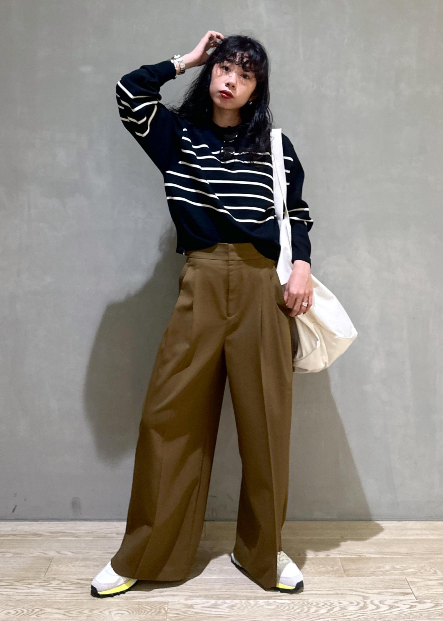 トップスはコンパクトなデザインでワイドパンツと相性が◎