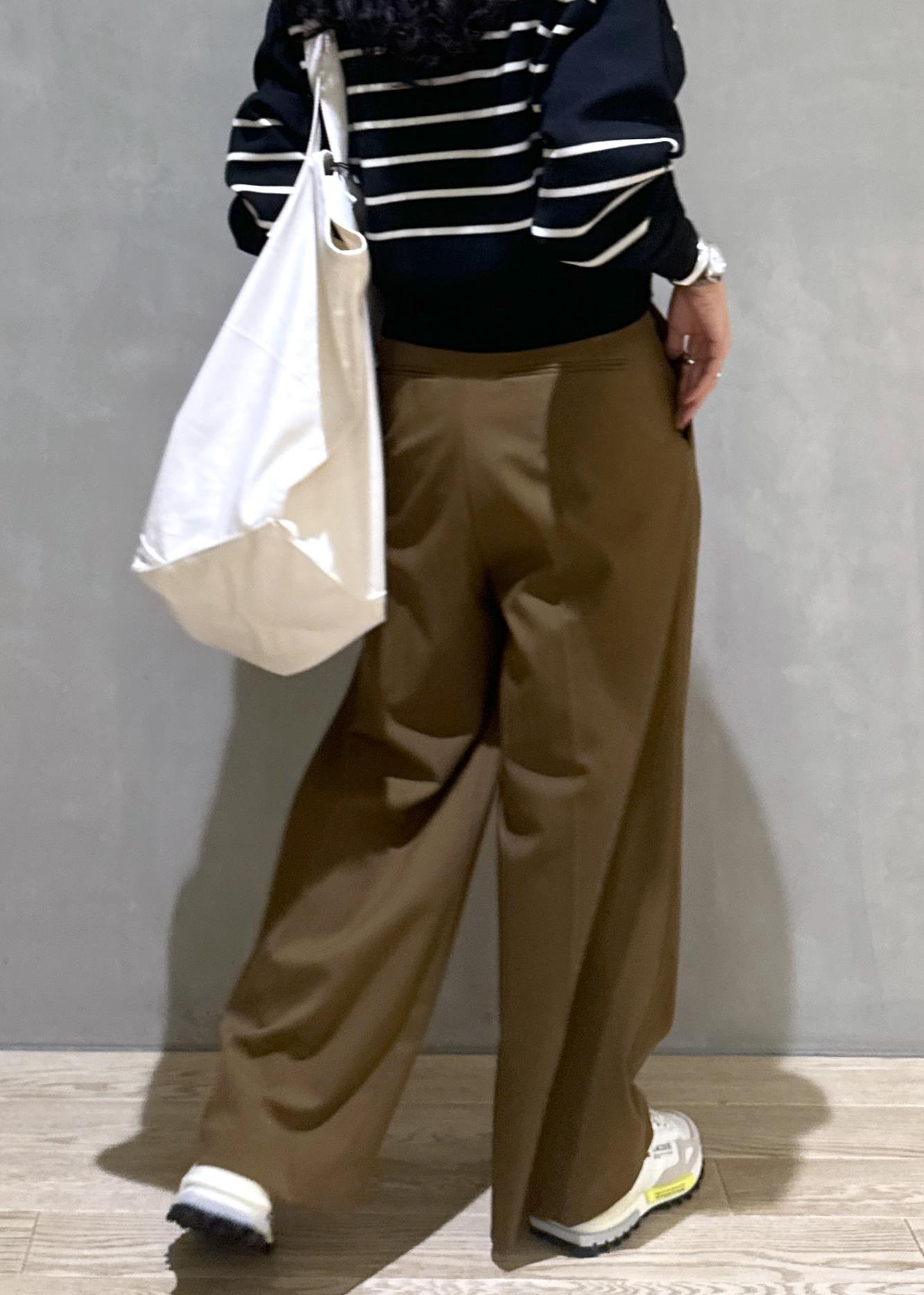 ADAM ET ROPÉ FEMME【サステナブル】2タックワイドスラックスブラウン / 38¥18,700レビュー丈とボリュームが欲しかったので38で着用しています。ウエストは大きいですが、サイドのベルトを使えばジャストサイズで着用できました!!