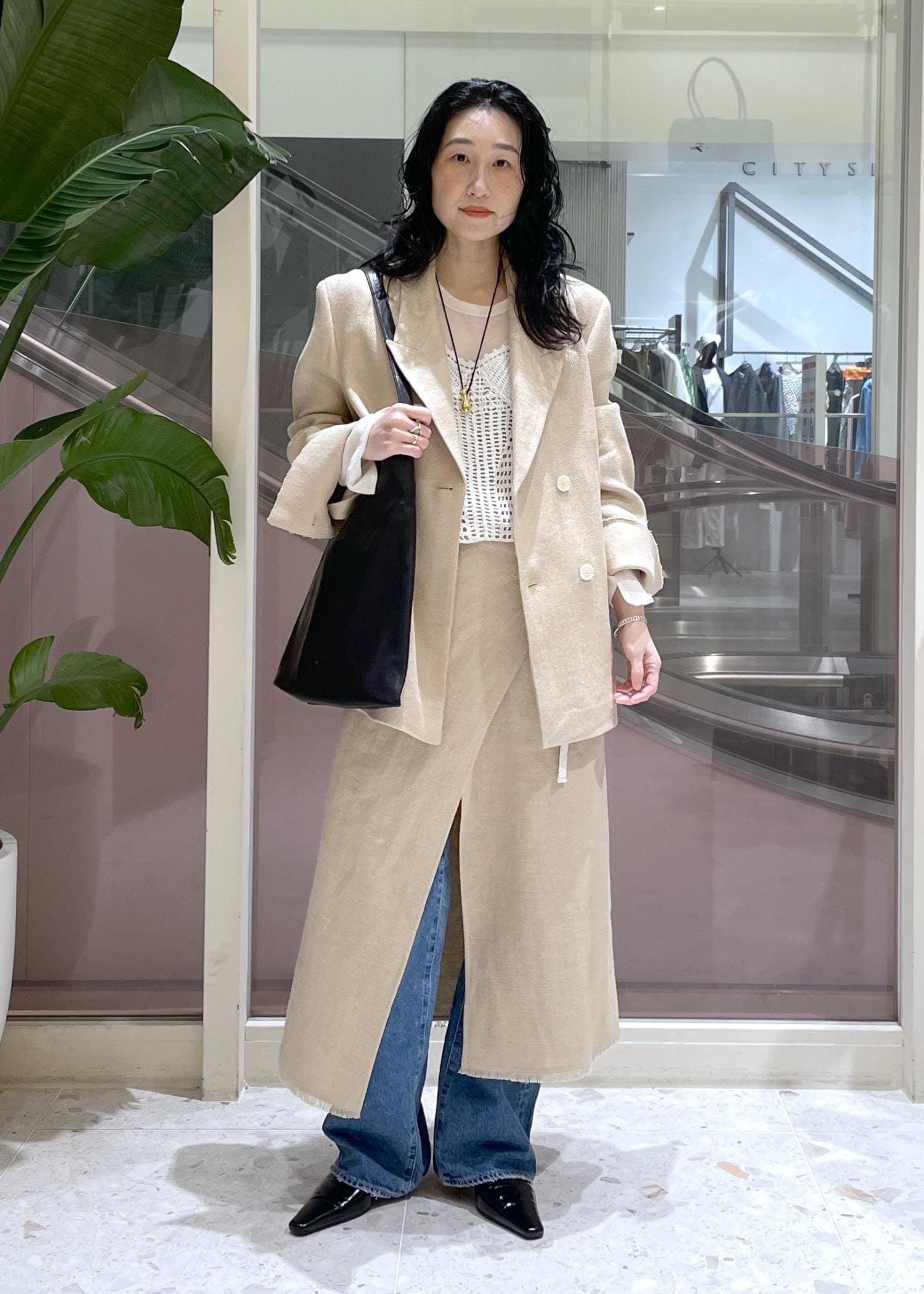 トップスに毛足の長いものや、フワッとした素材のものが多くなるので、パンツがつるっとした素材だとバランスがとりやすくコーディネートしやすいです!