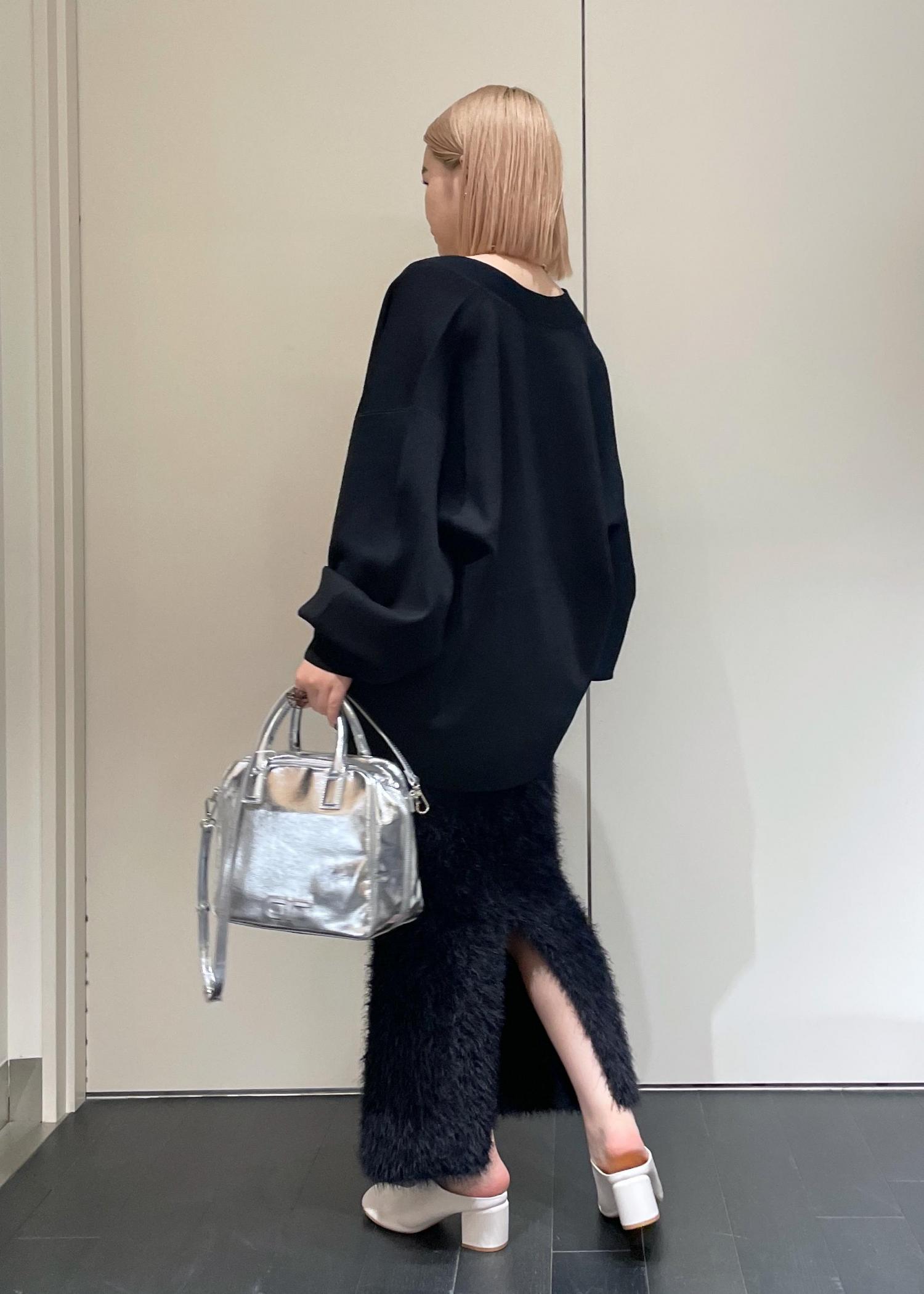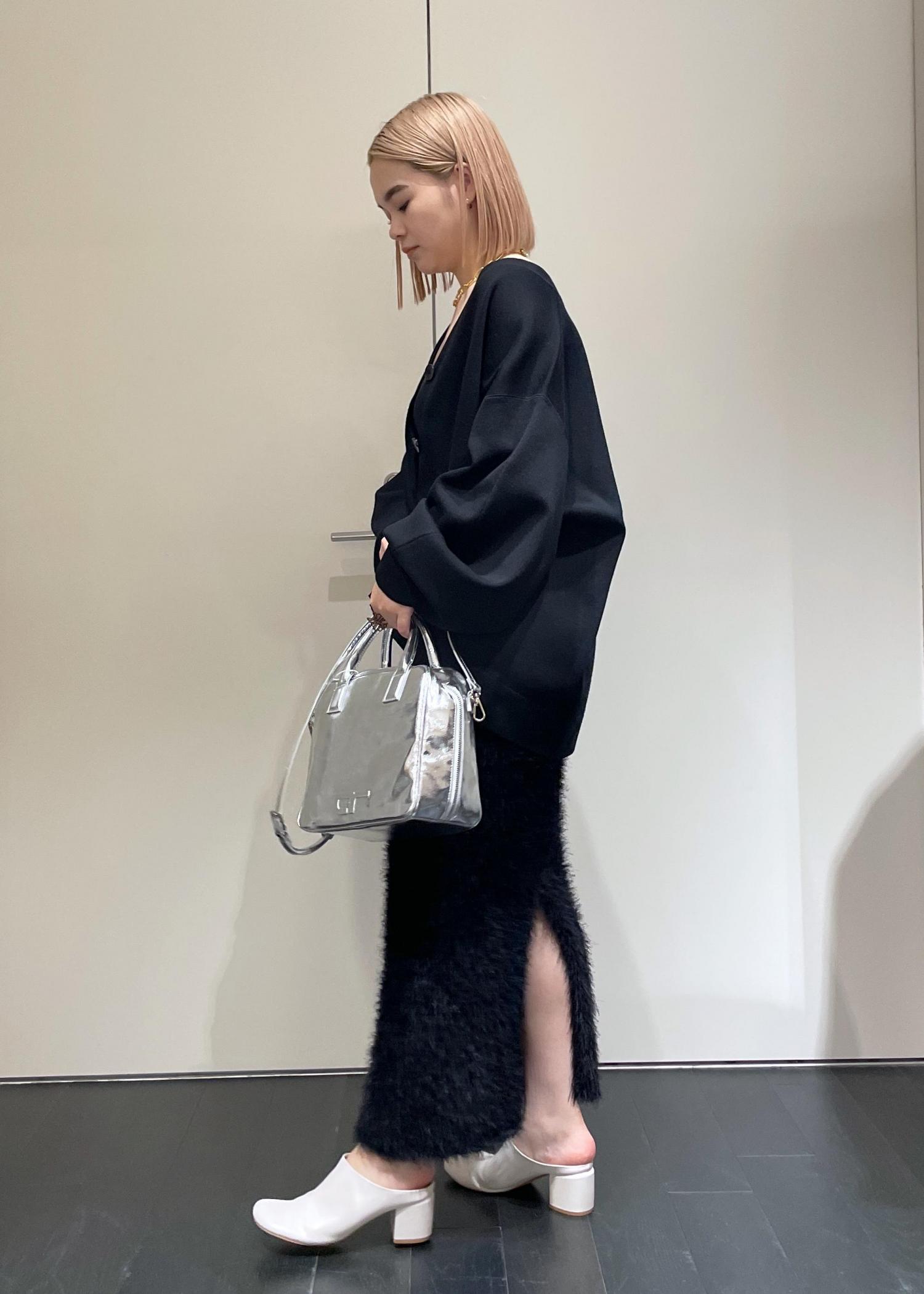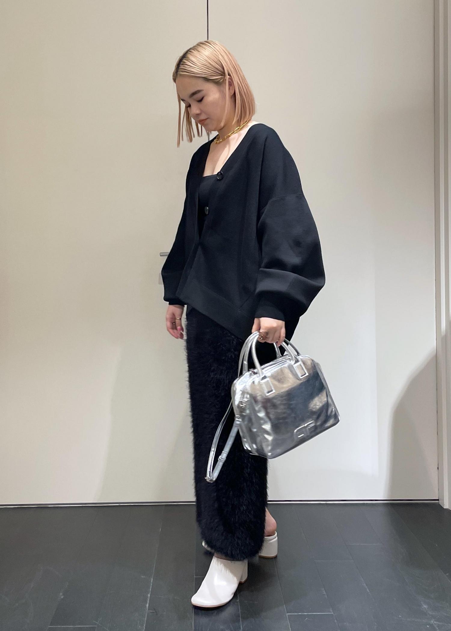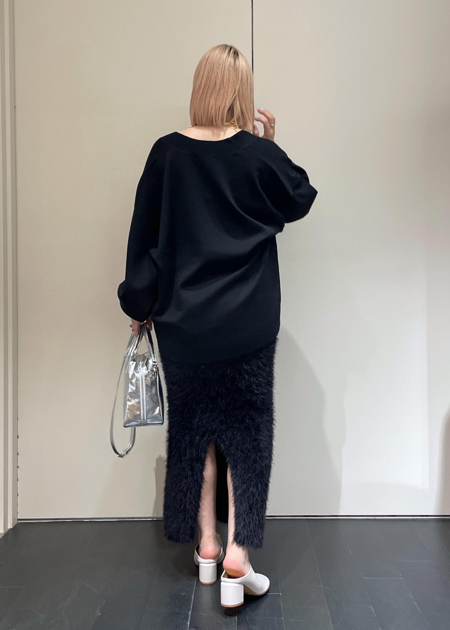 ざっくりめなしんぷるなカーディガンに女性らしさのあるファーニットのスカートを合わせました。