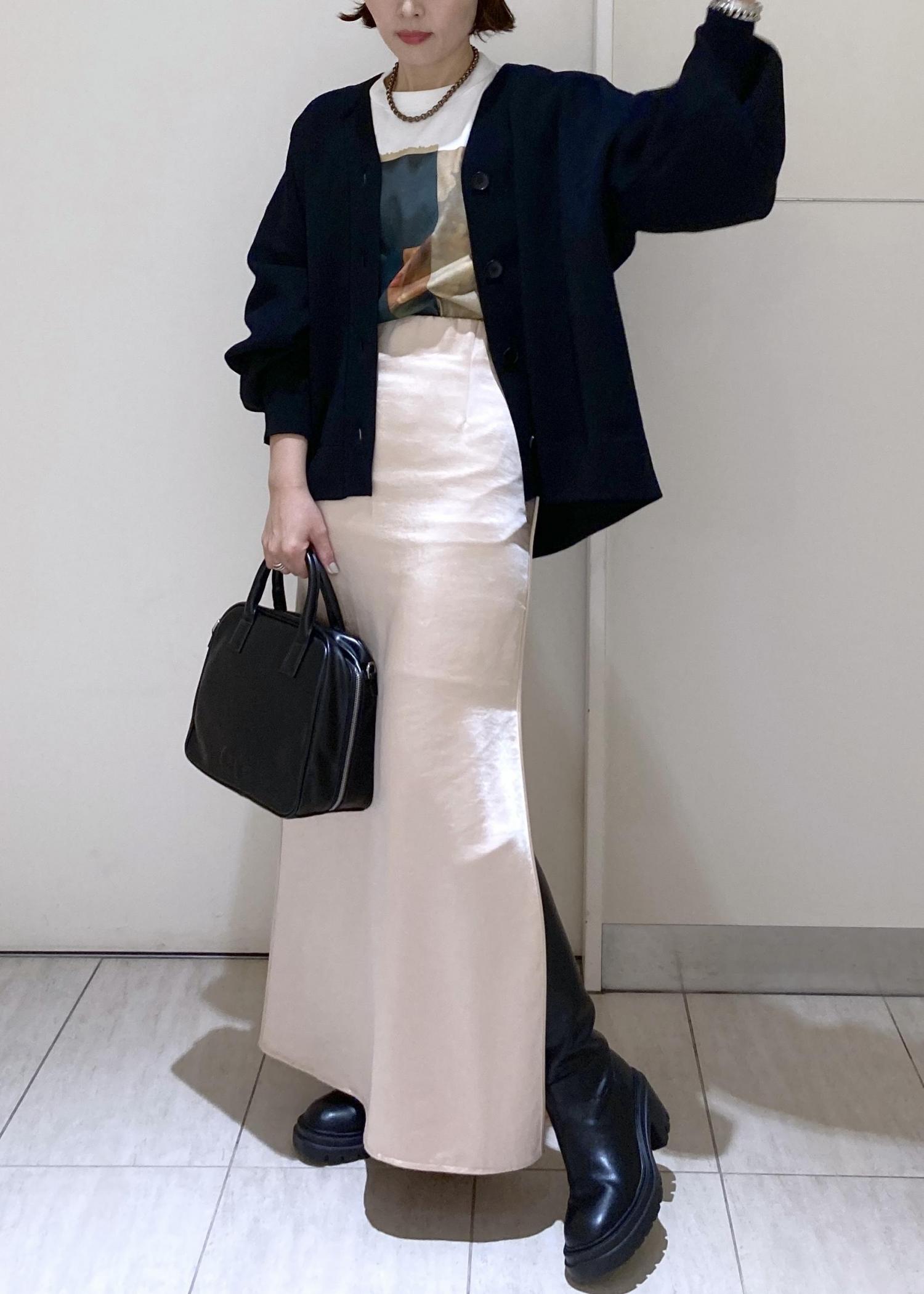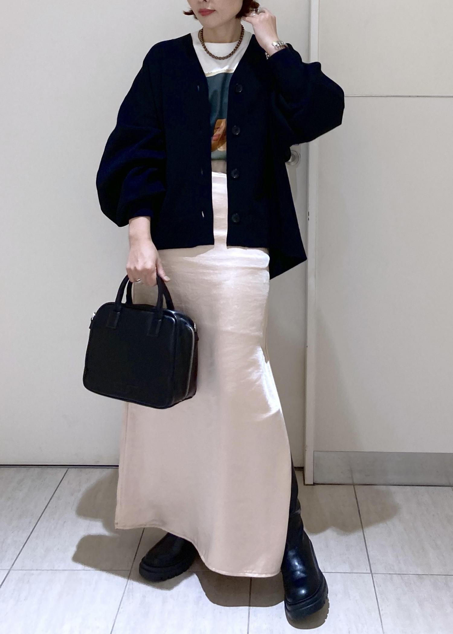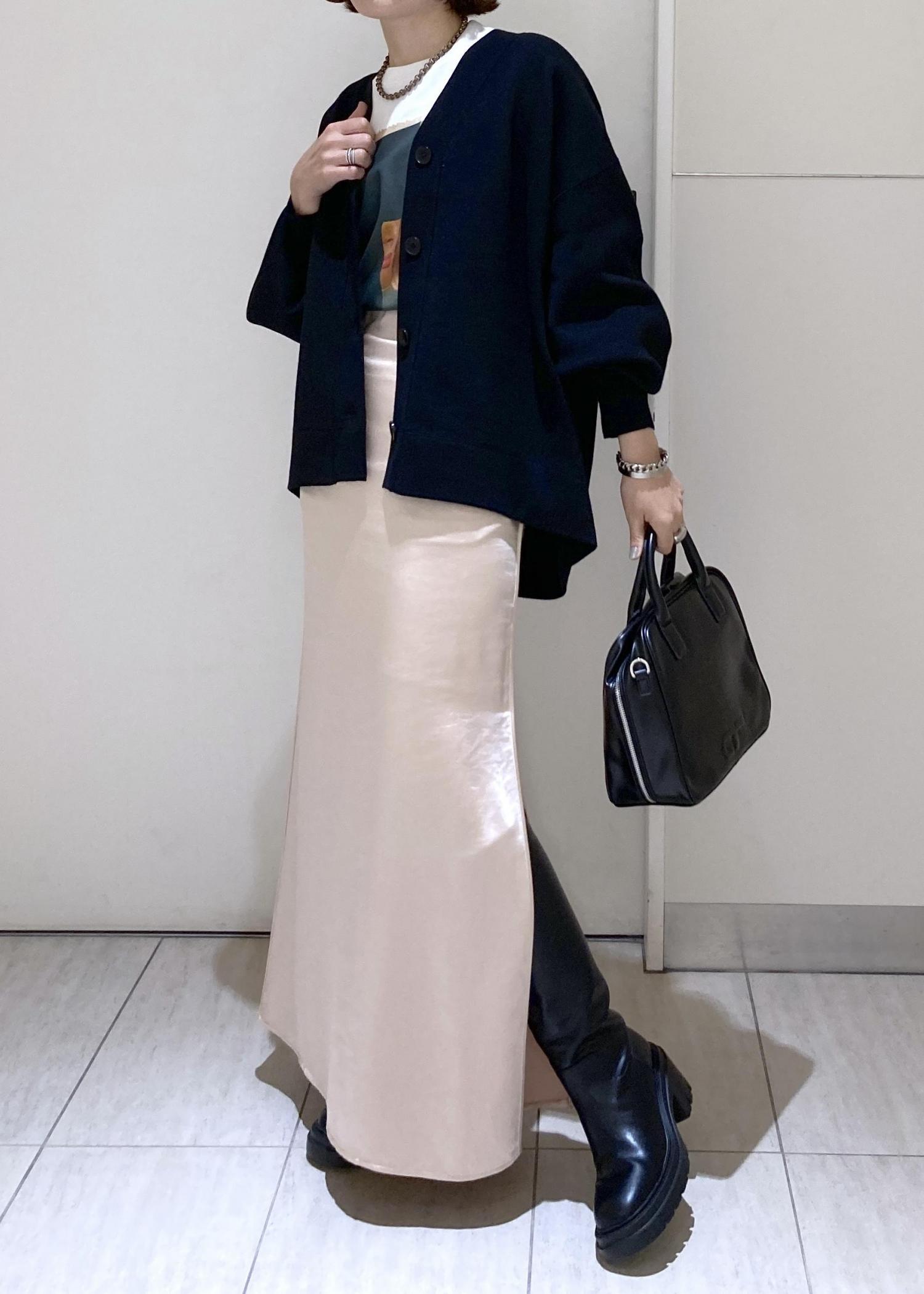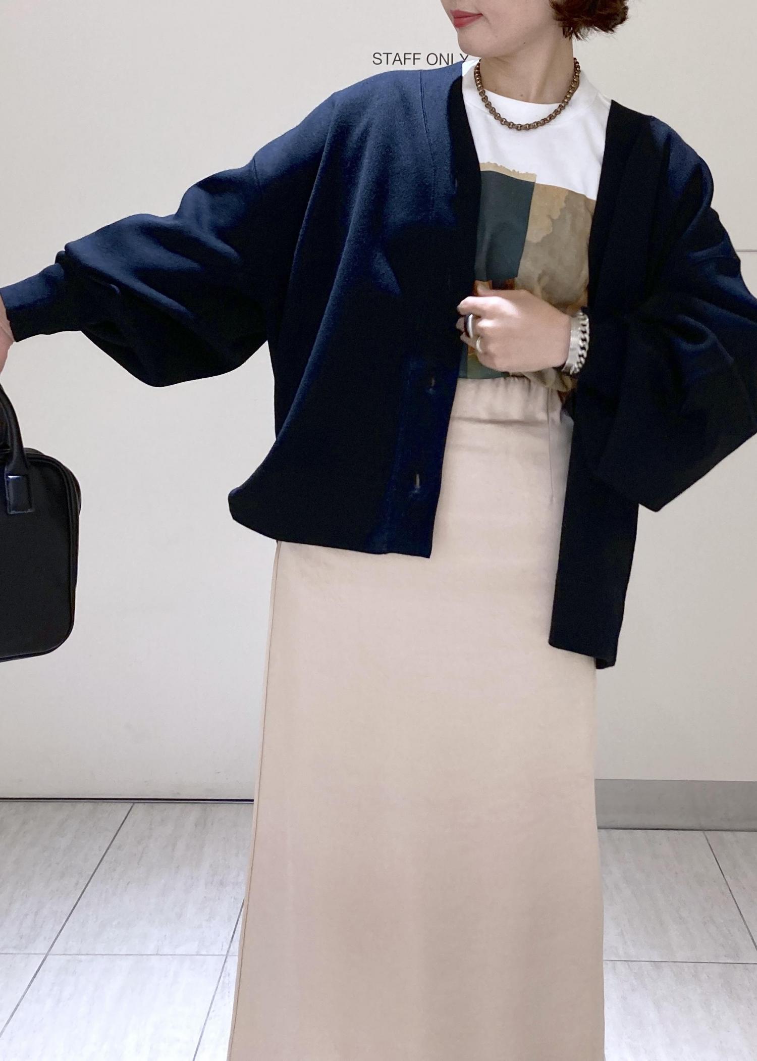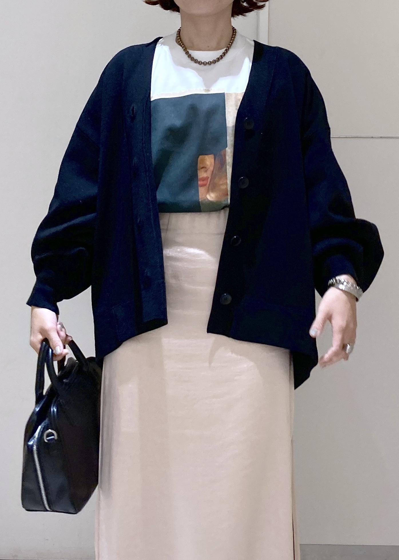 今日はオーバーサイズカーディガンを女性らしく着るご紹介です。