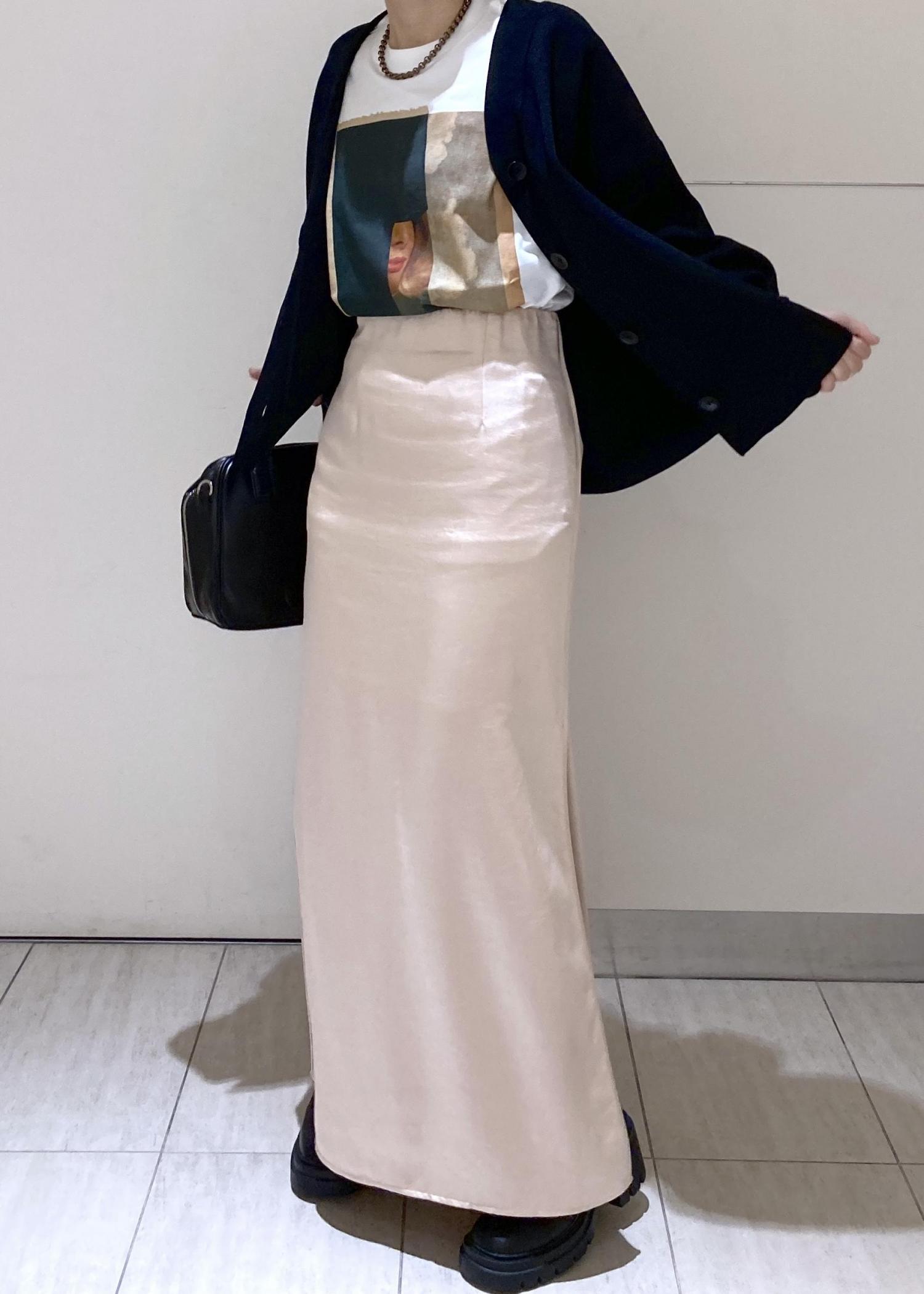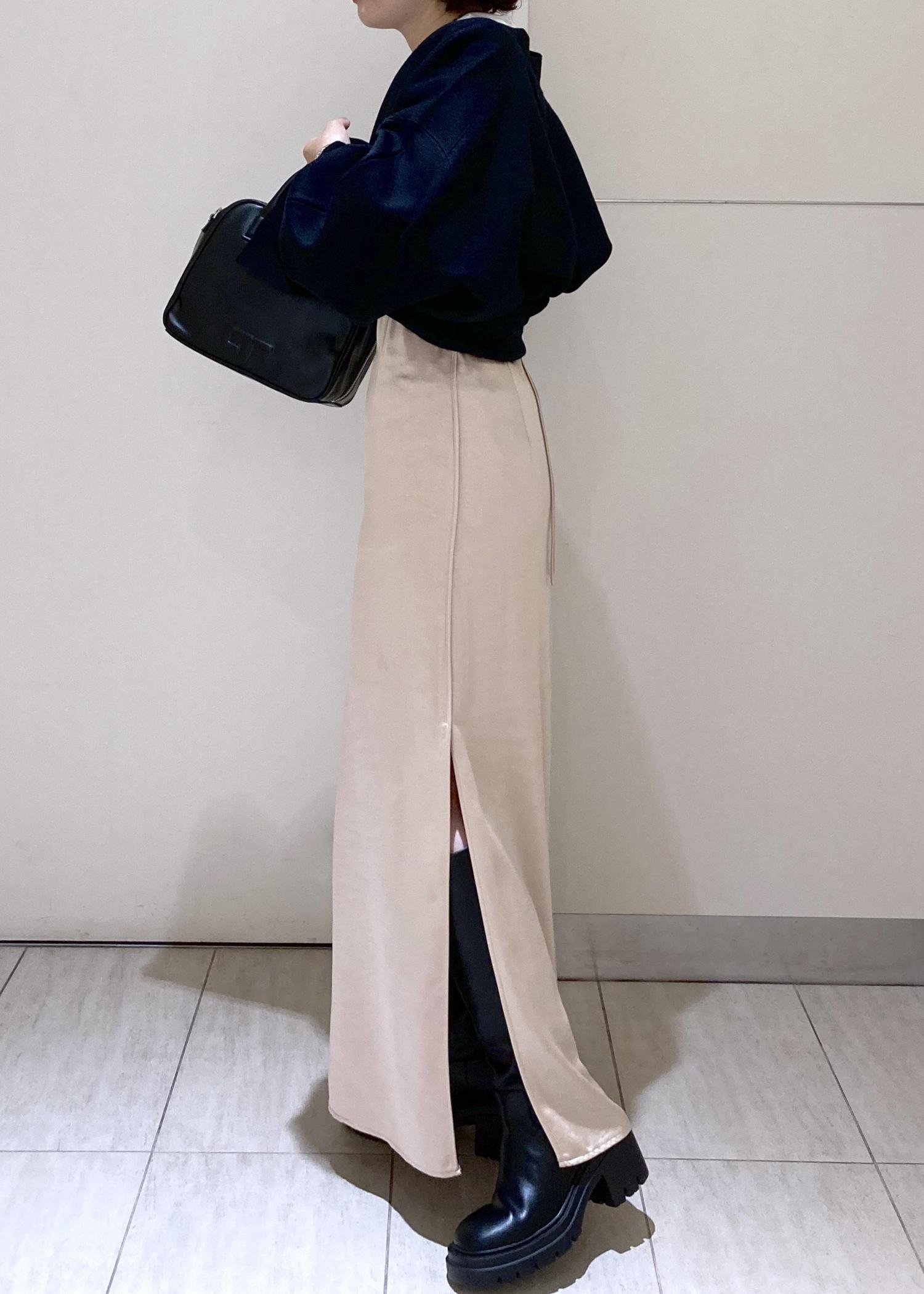 ADAM ET ROPÉ FEMMEスリットサテンマーメイドスカートゴールド / 38¥17,600レビュー腰回りがピタッとするサイズ感。サイドスリットは深く、膝くらいまであります。サテン素材は少し厚めでストレートラインが綺麗に見えます!