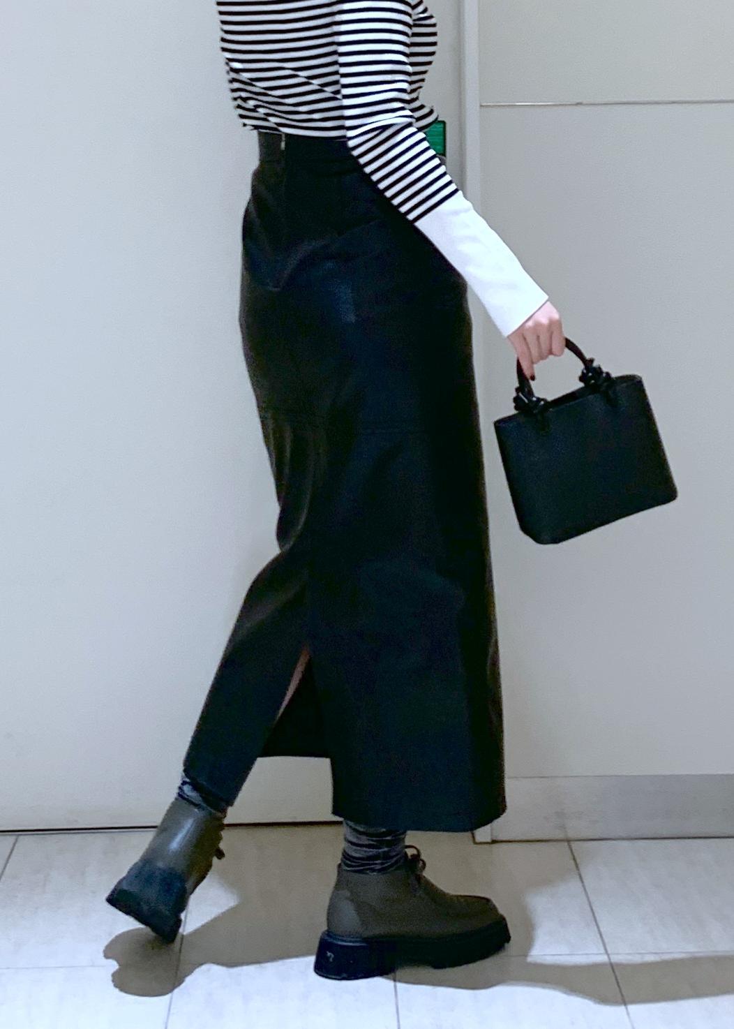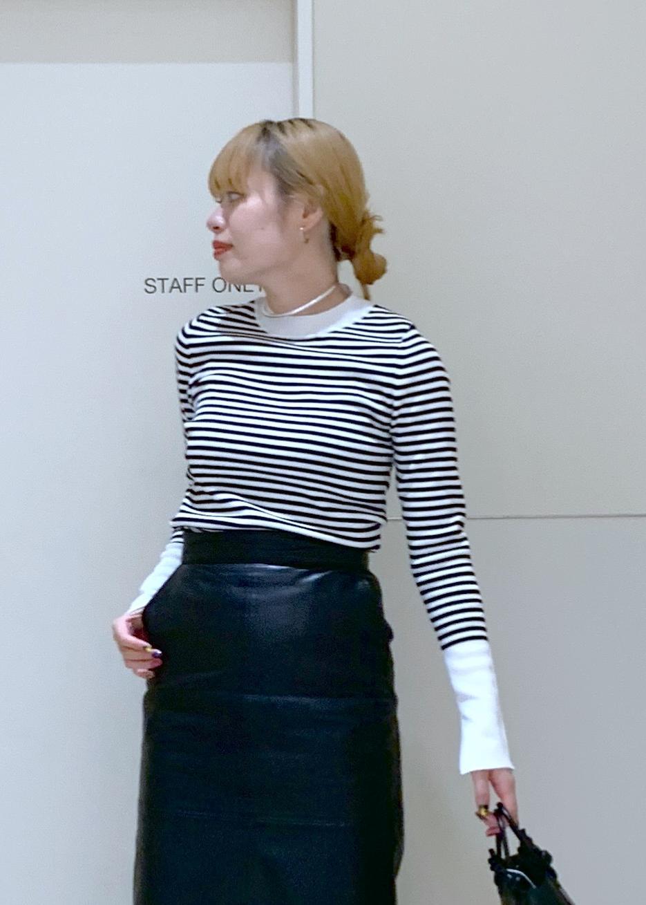 細めのボーダーは太って見えると避けがちだったのですが、こちらのトップスは体のラインに程よく沿うシルエットなのでボーダーでもすらっとした印象にみせてくれます◎