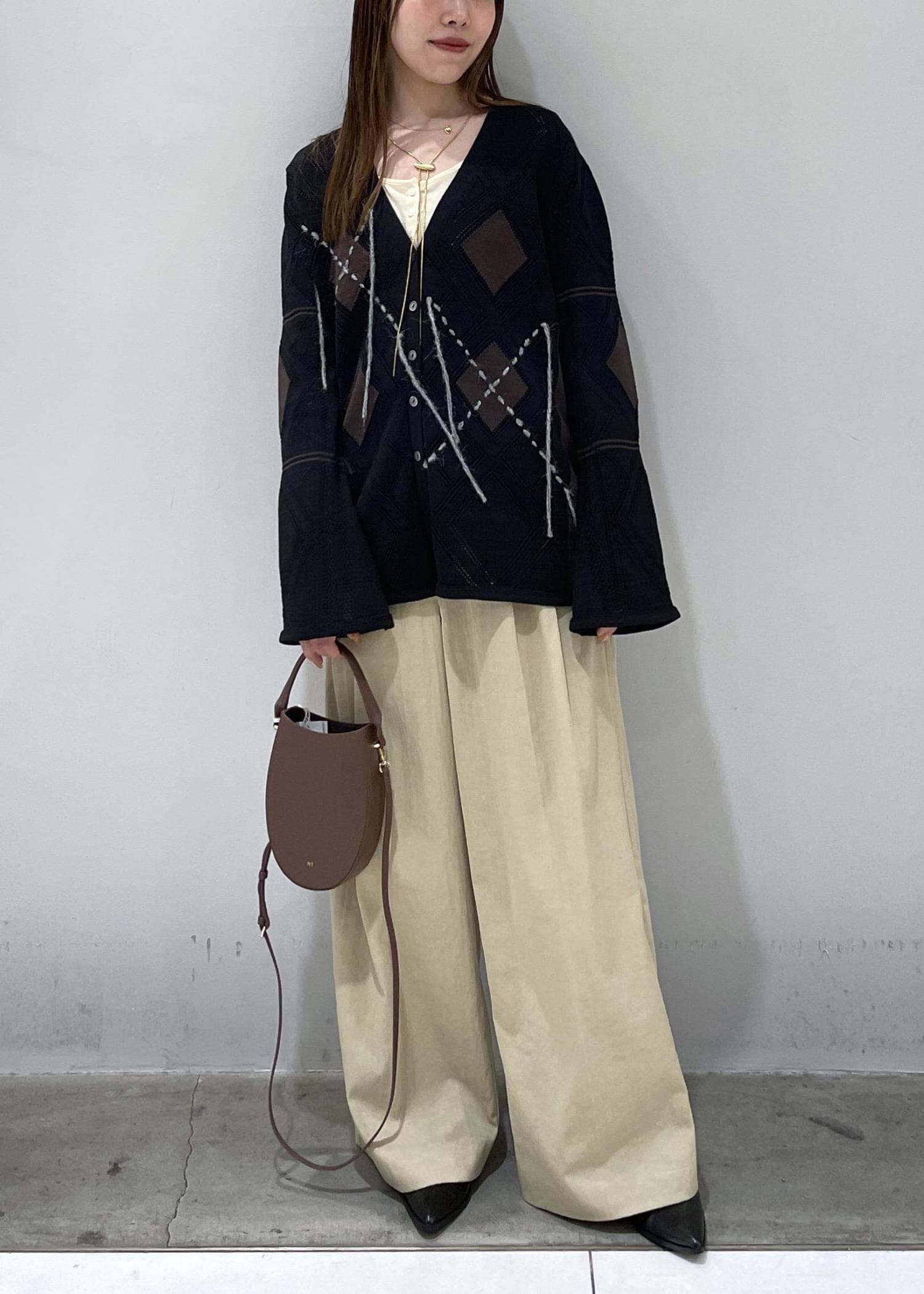 あえてヒールがないタイプのブーツとニットカーディガンで