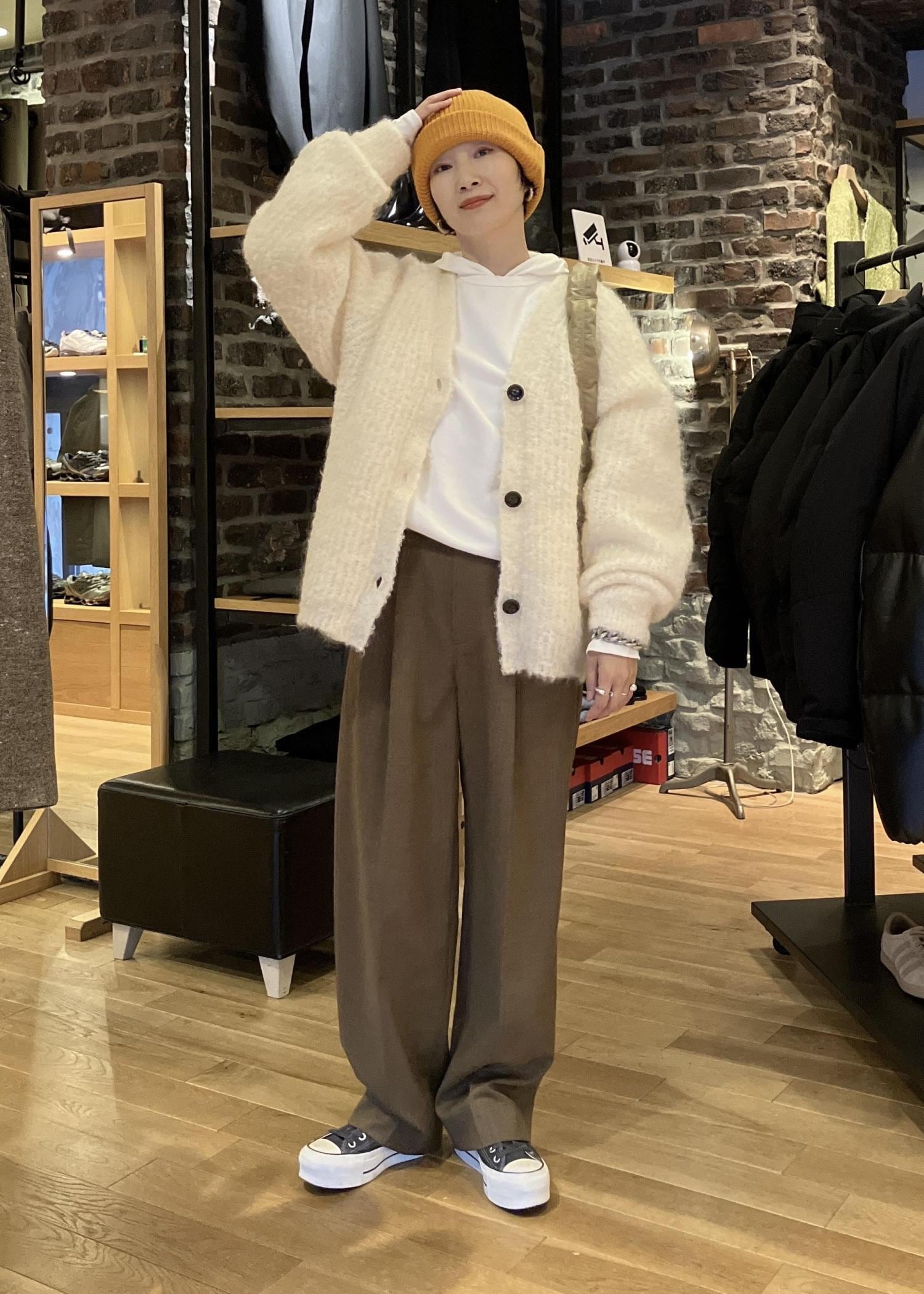 またサイドのスリットが綺麗で、ブーツを見せたら冬は色物のタイツを合わせても素敵です。