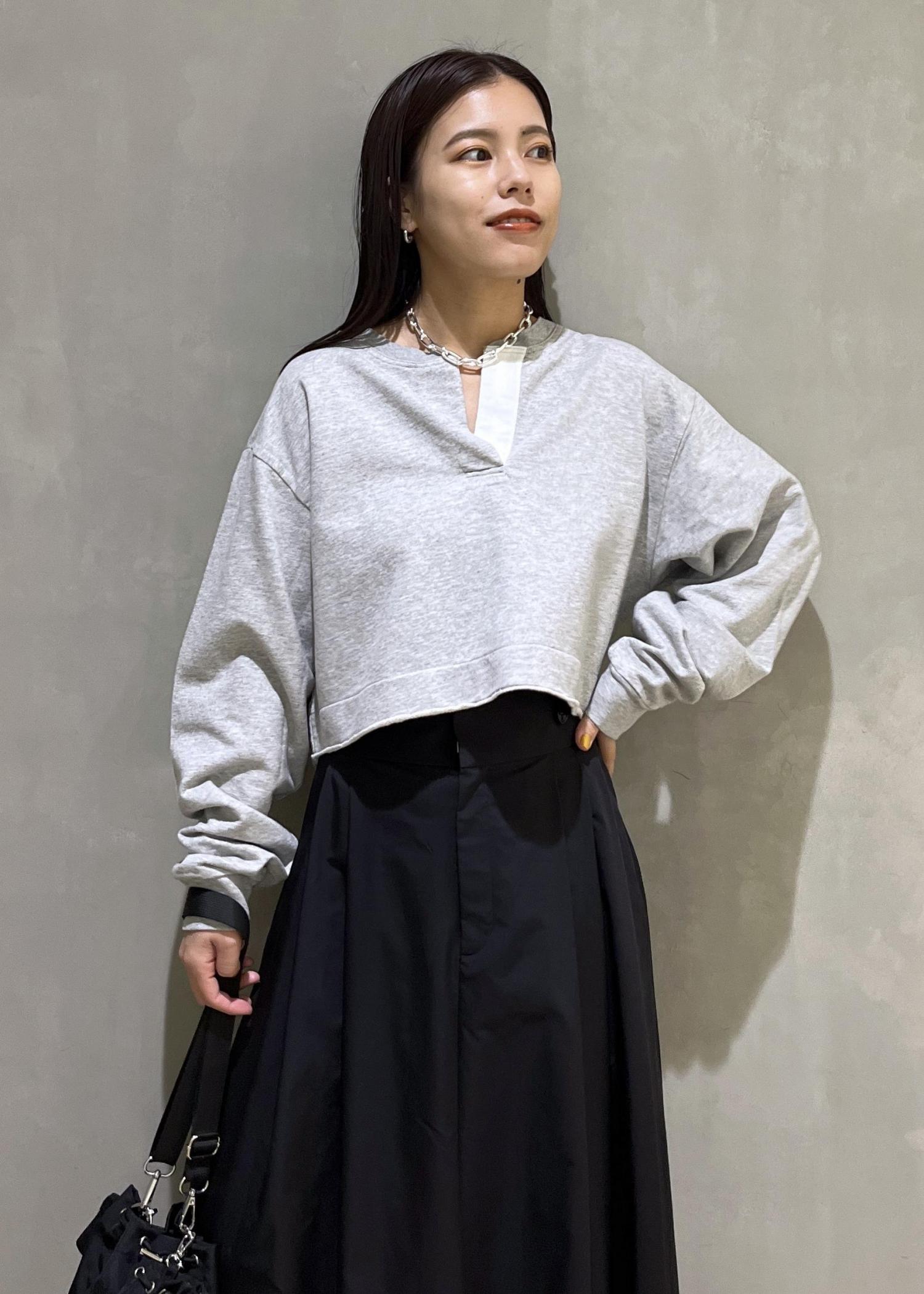 キーネッククロップドロンTEEを使ったカジュアルコーデのご紹介です!