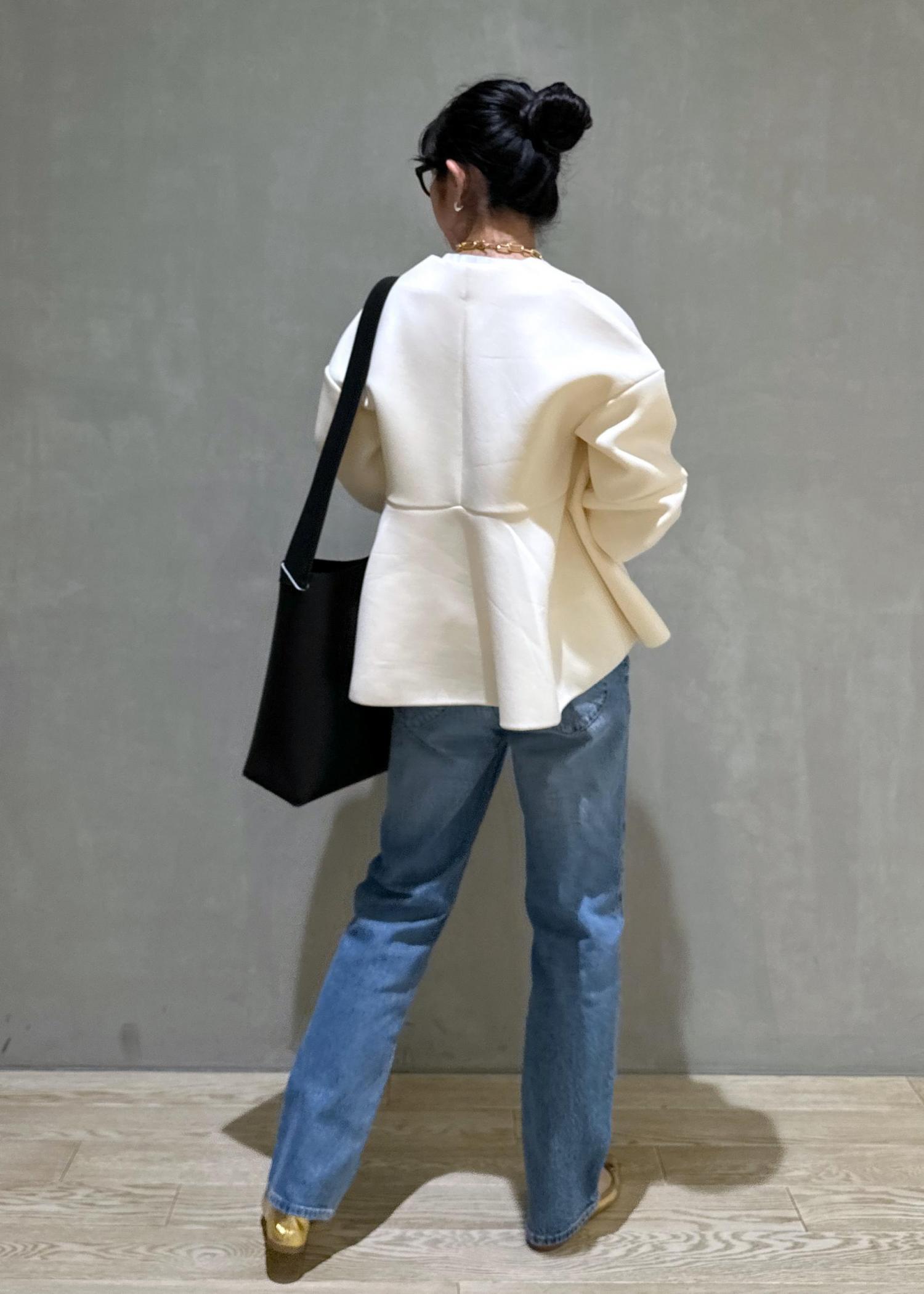 スエットライクなハリ感のある素材。フォルムが綺麗にでてくれてペプラムのデザインがとっても可愛いですよ!