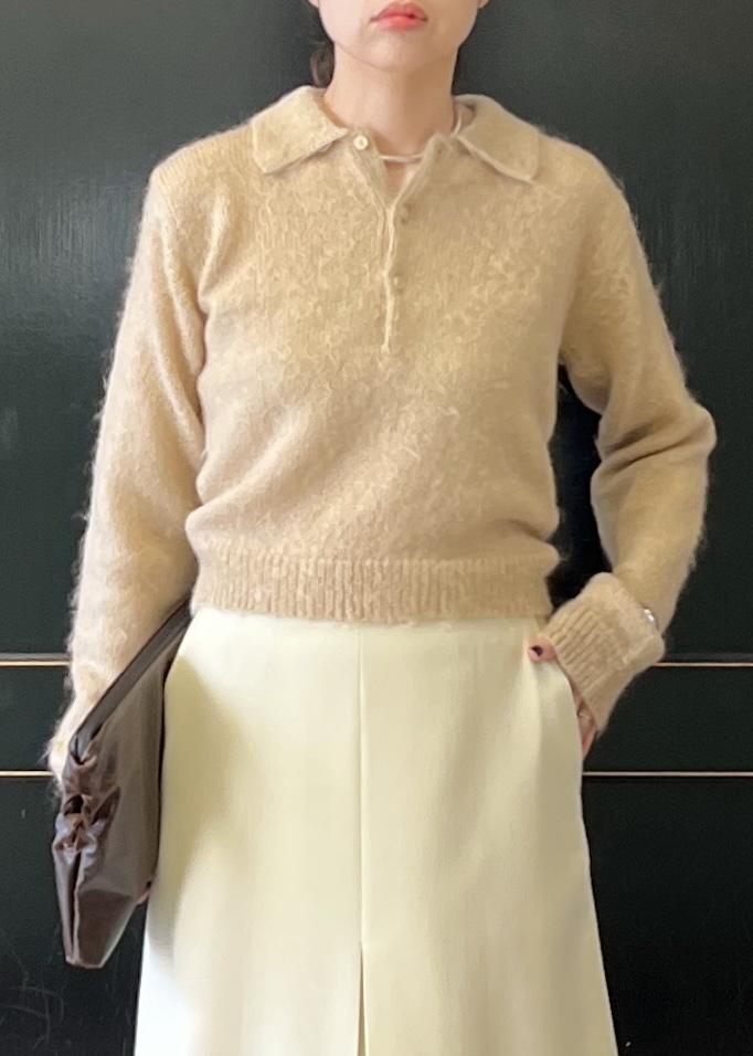 トップスは例年人気のモヘアポロをワントーンで合わせて。