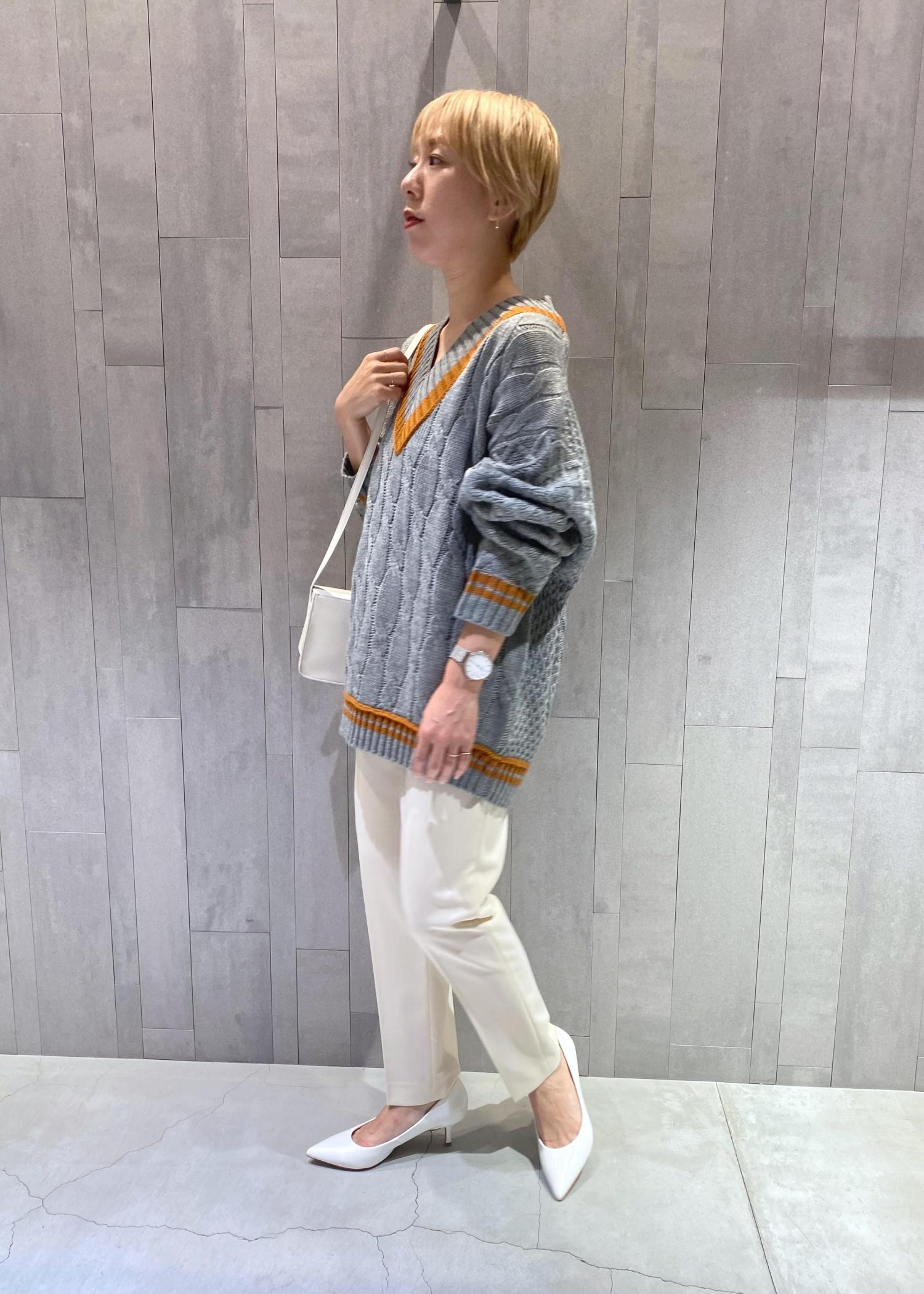 今日はオーバーサイズのニットにスッキリボトムを合わせた