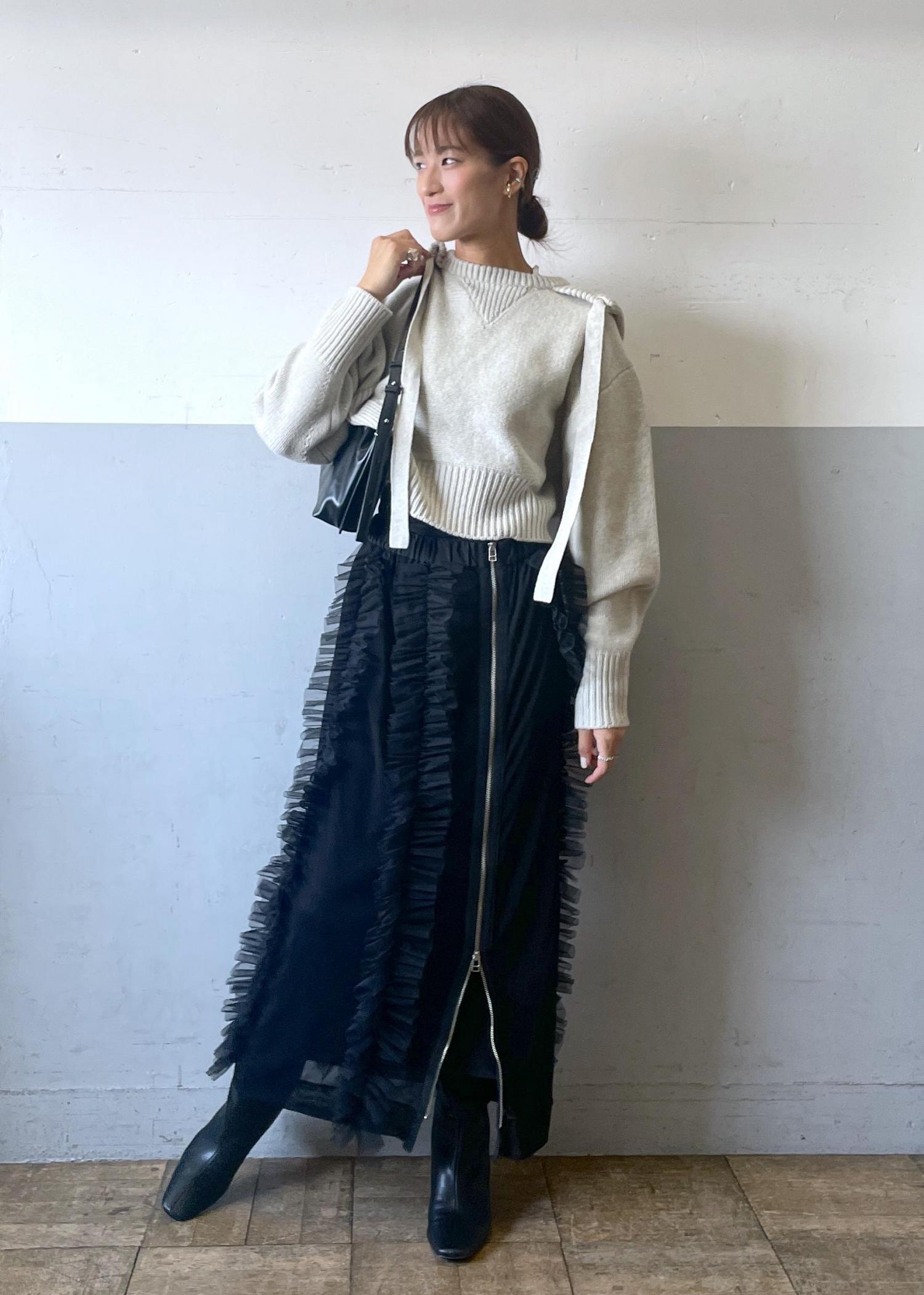 程よくゆるっとしたシルエットになっているので、私はリアルバイしたチュールスカートと合わせてみました。