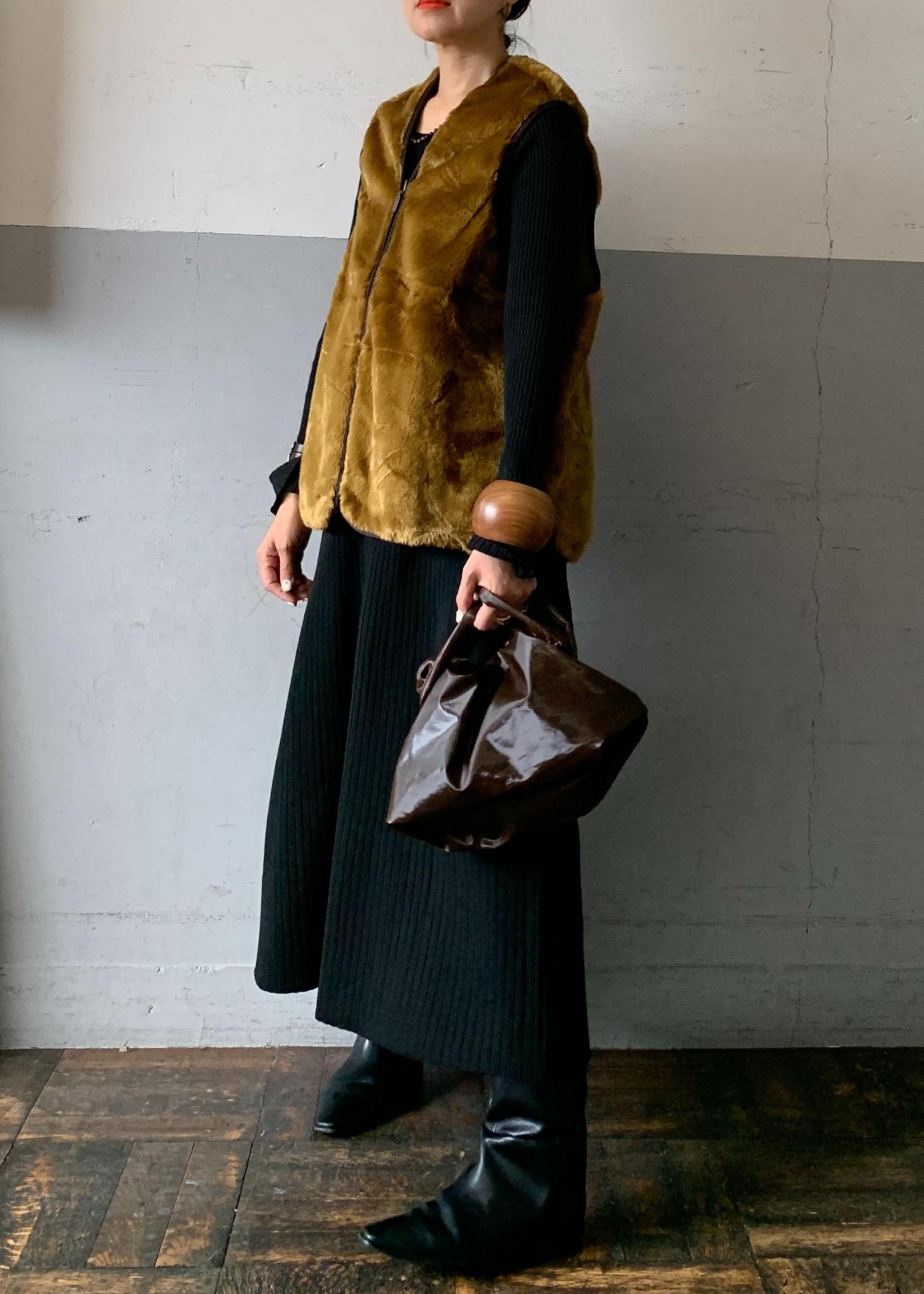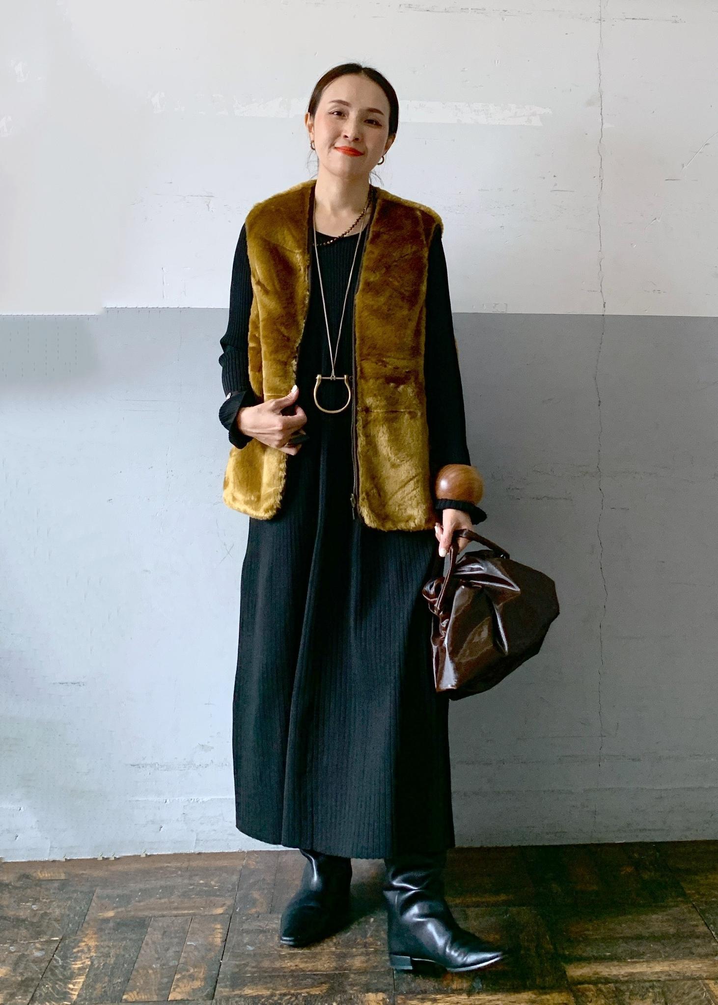 シンプルなワンピースもこう言う変化球アイテムと合わせると
