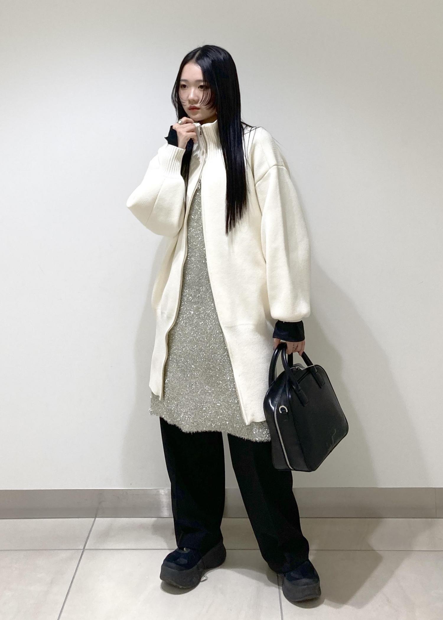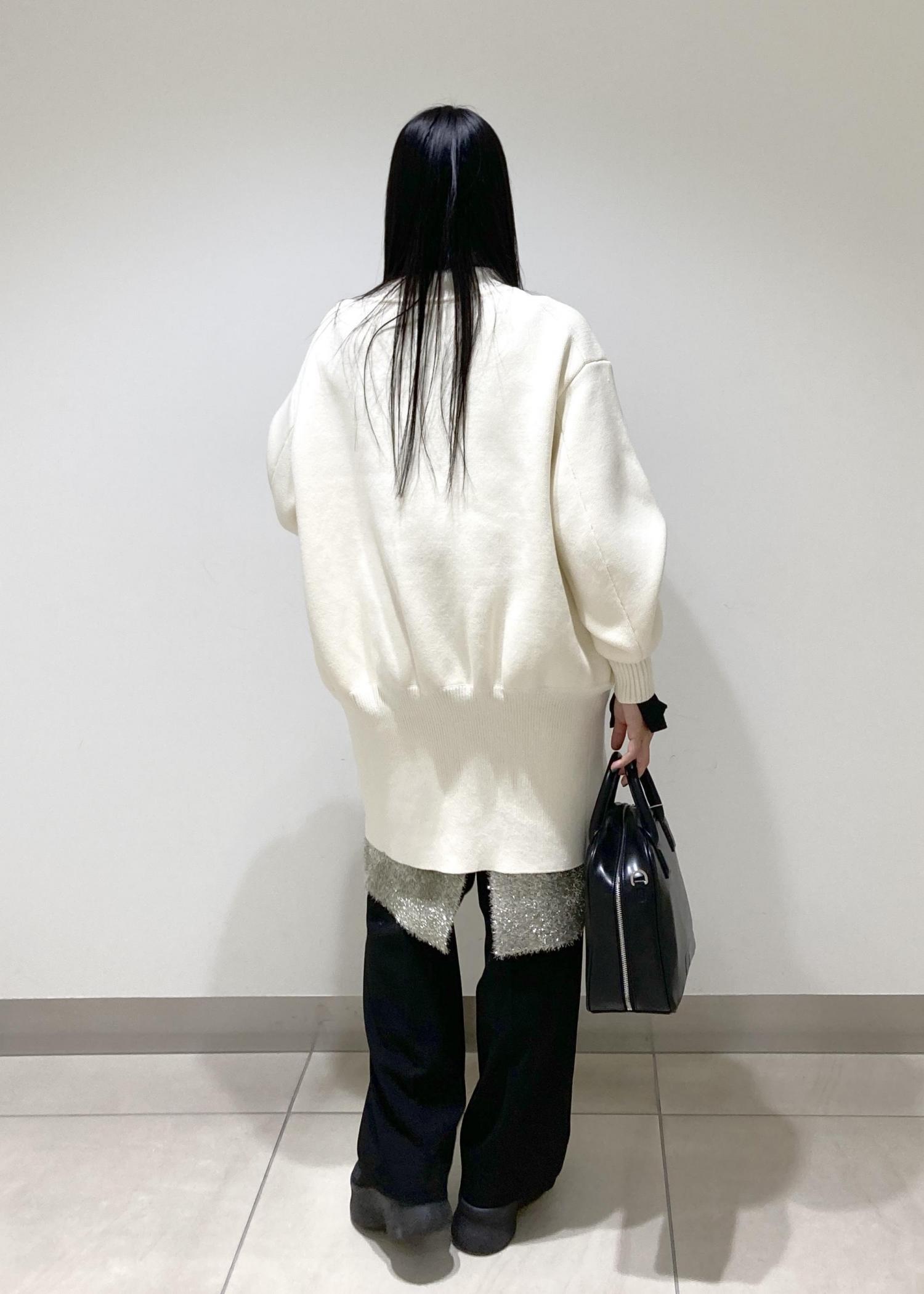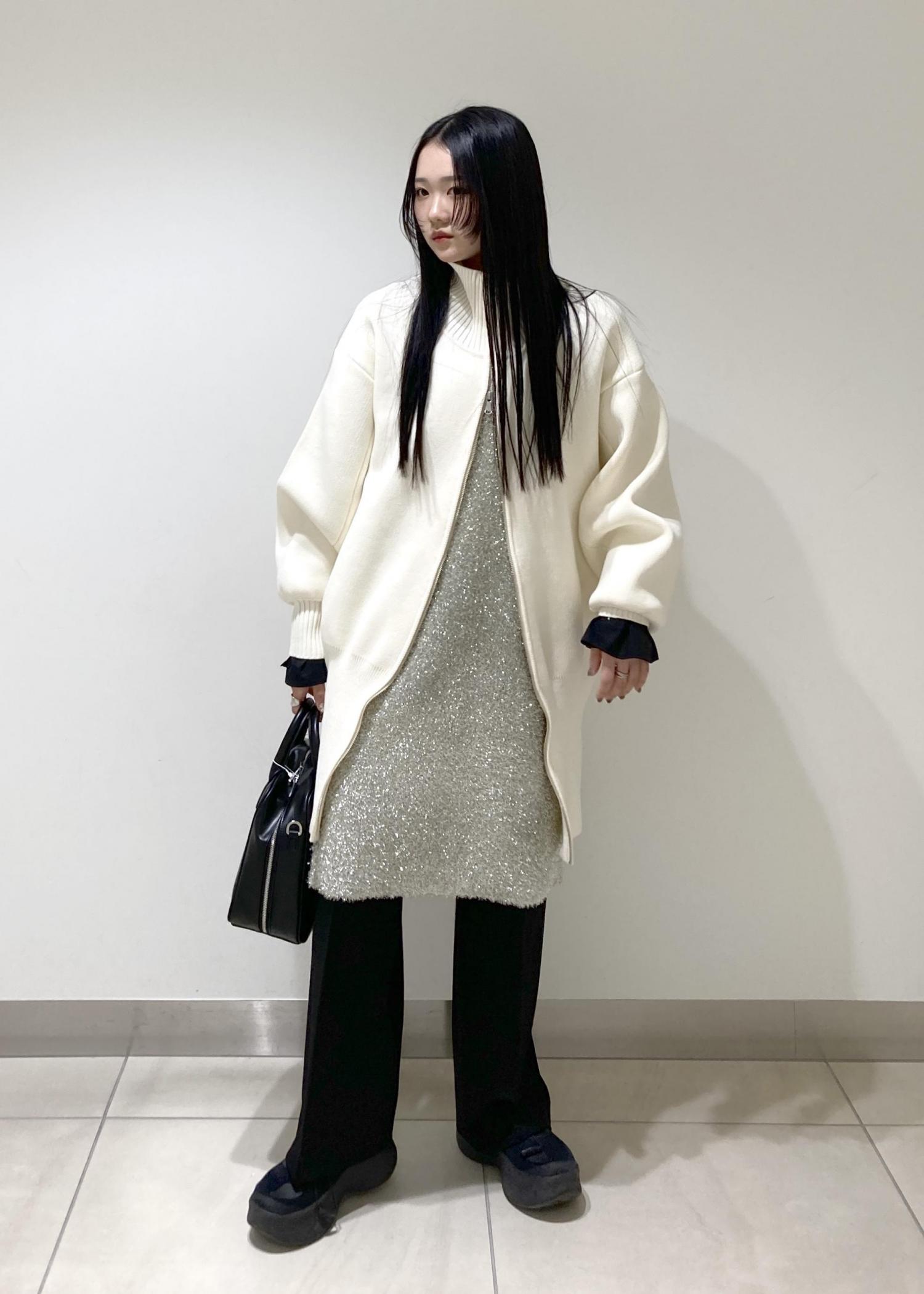 上にドライバーズニットのワンピースを重ねてレイヤード◎