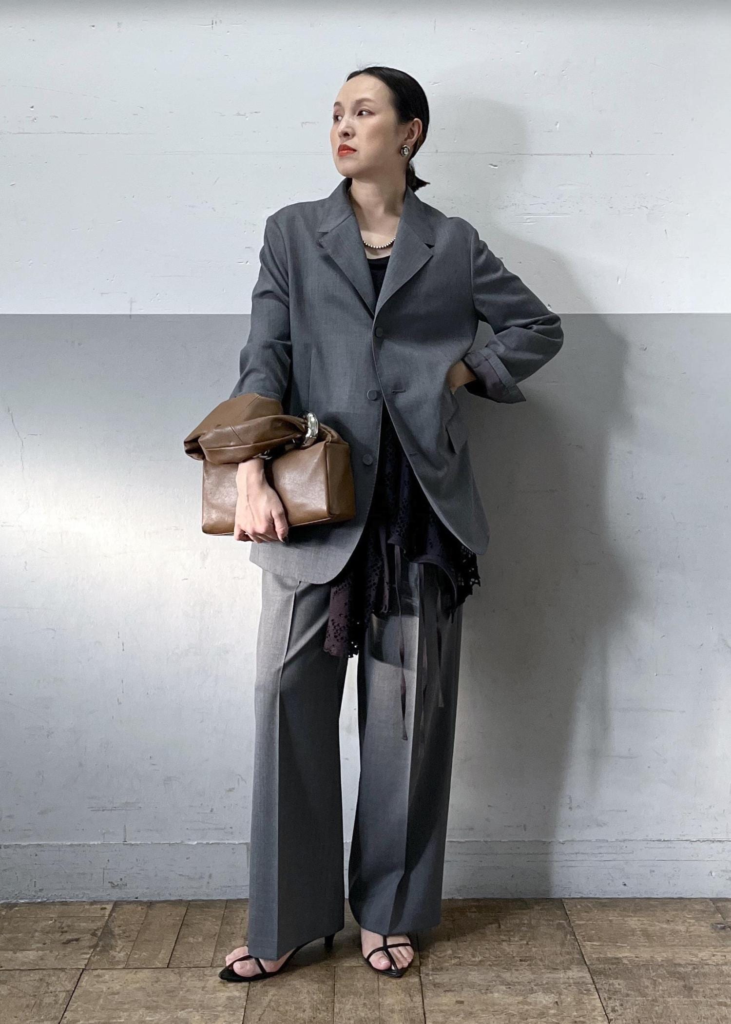 上半身は細身シルエットなので骨格ストレートの方やお胸がある方はワンサイズUPされた方が楽に着て頂けるかもしれません。
