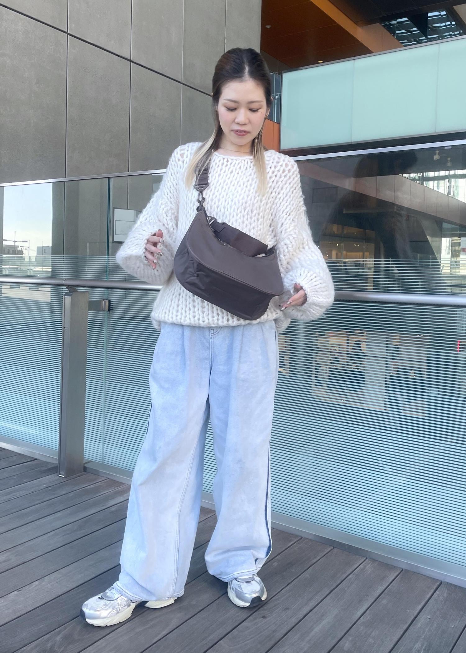 ジムやヨガで着られるアイテムもこうして、私服のアクセントとして着られるのでおすすめです!